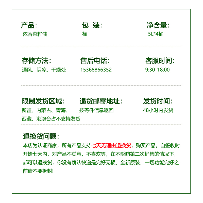 【贵州毕节特产】欣圣佳浓香米油粮油菜籽油一件5LX4桶