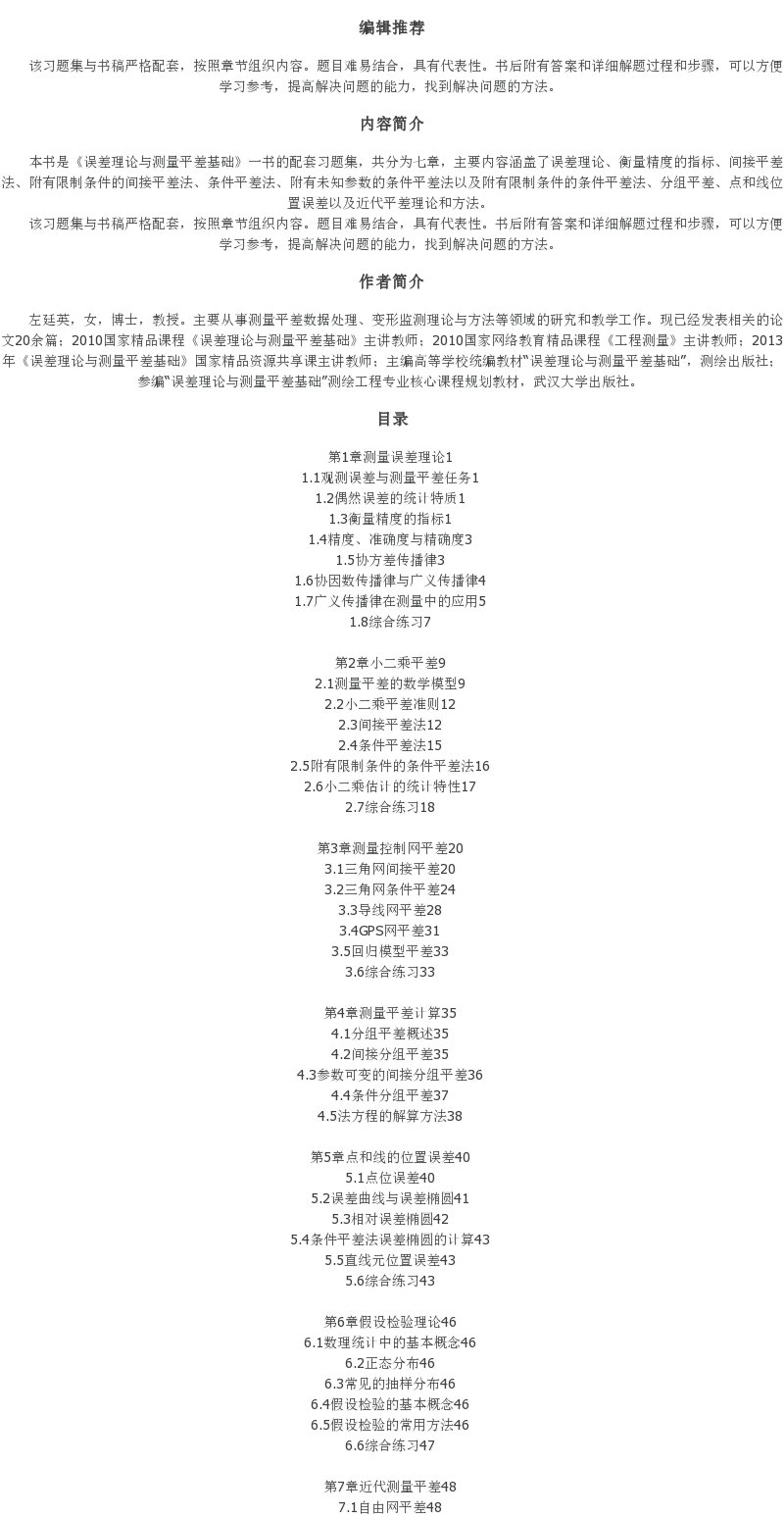 《误差理论与测量平差基础习题集》(左廷英,朱建军,鲍建宽)