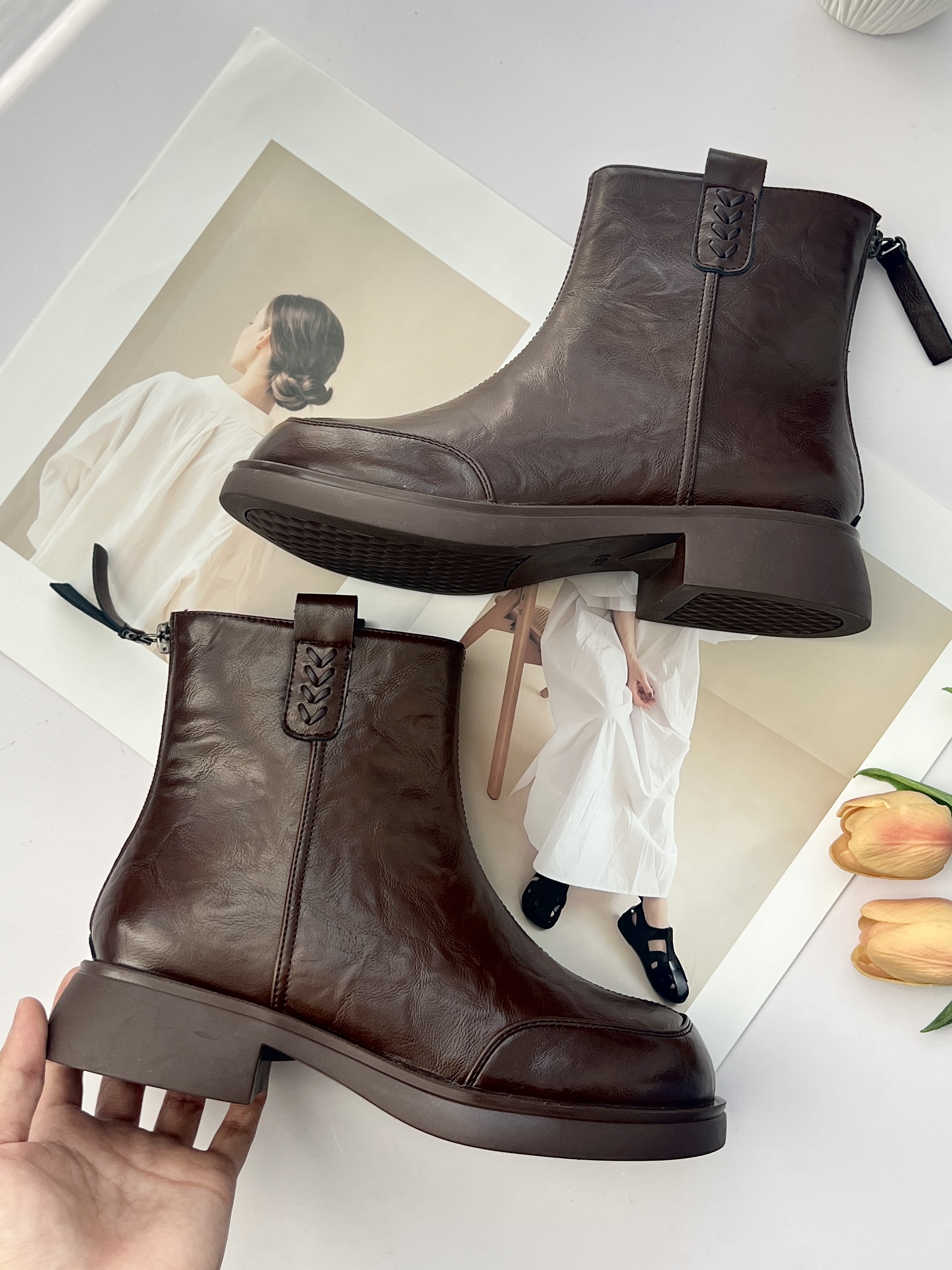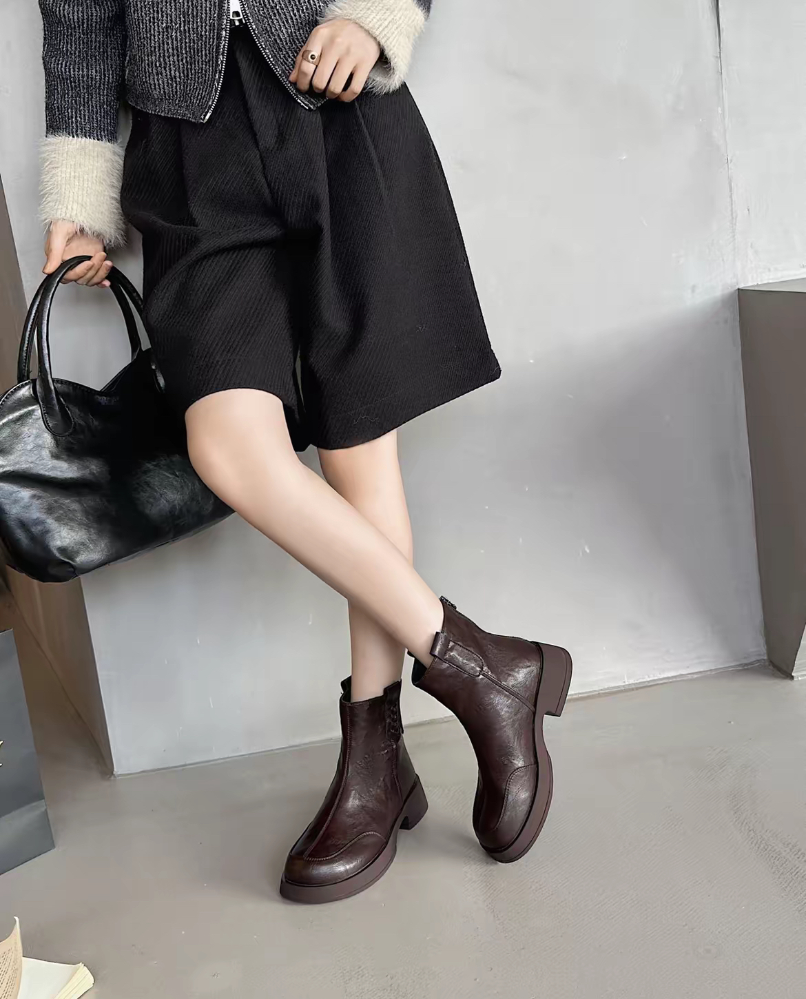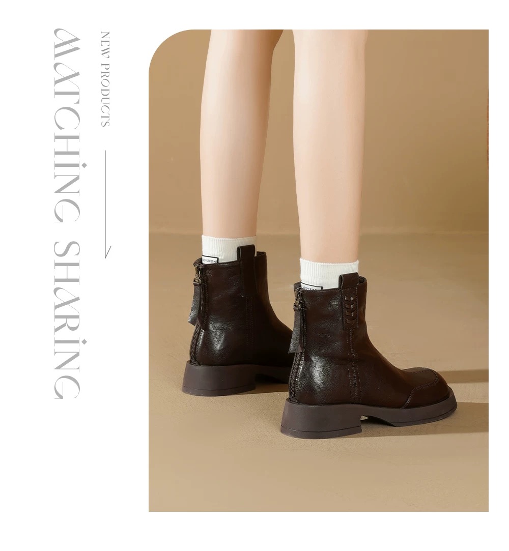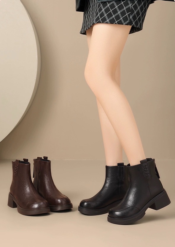 【胖D来同款英伦风加绒短靴SS520】高品质真皮❗️又暖又软🔥 柔软超有质感❗️不闷脚❗️-PWJCY