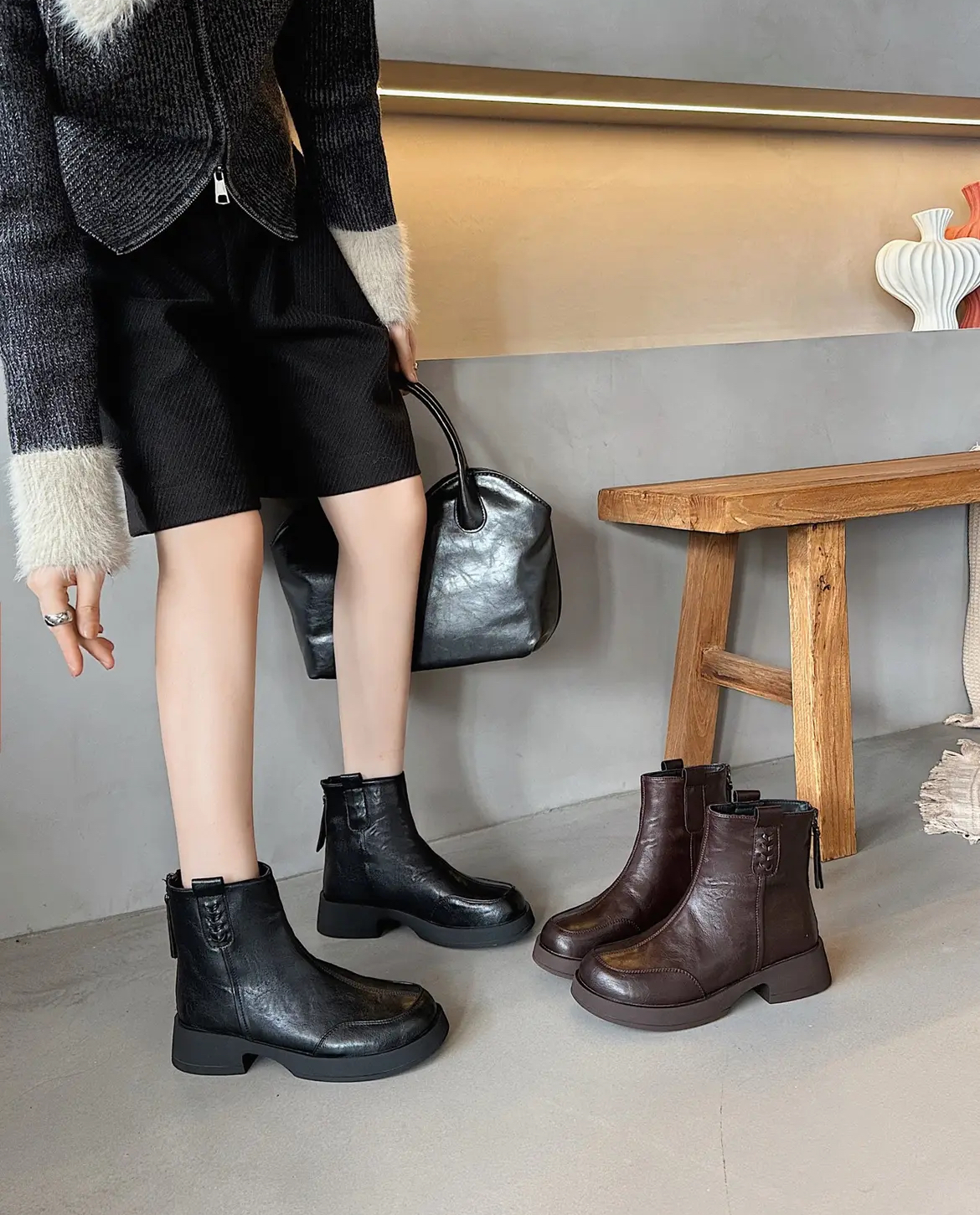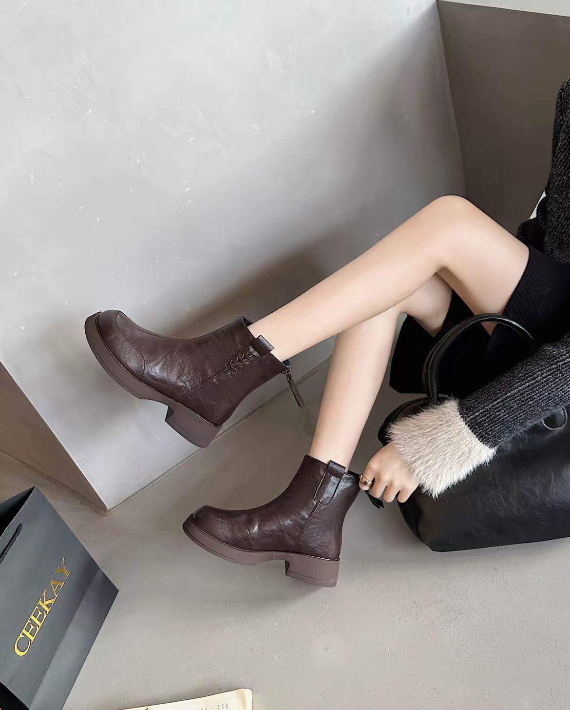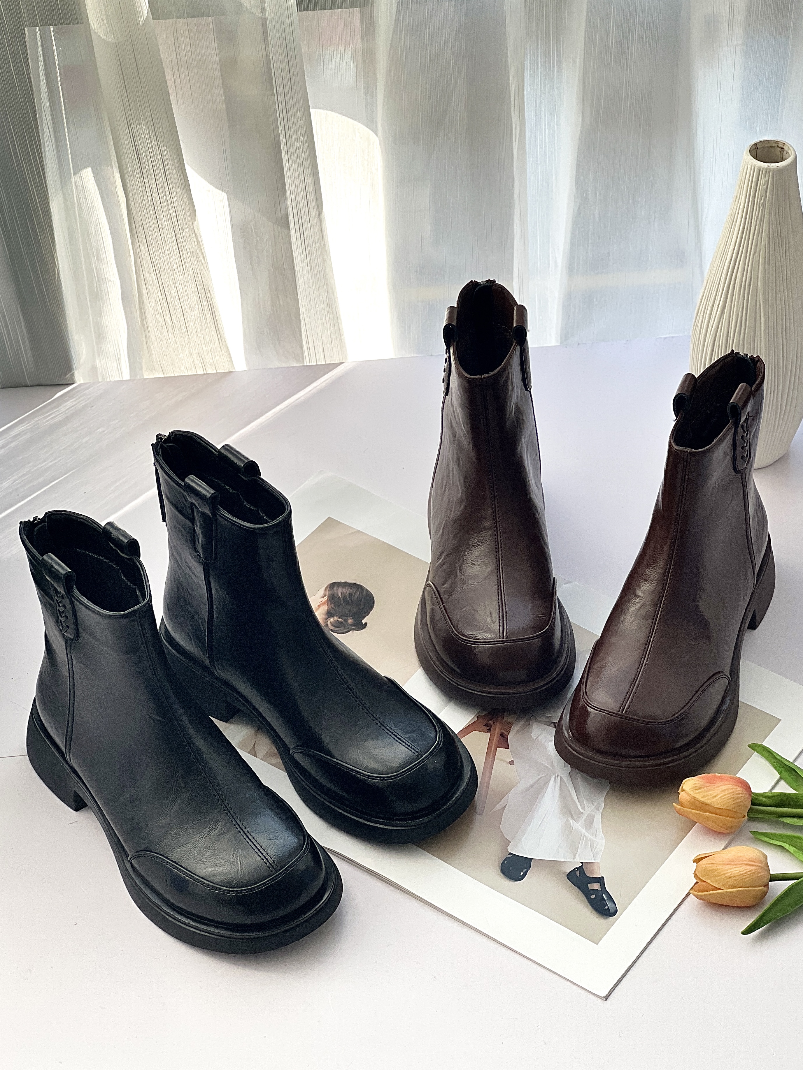 【胖D来同款英伦风加绒短靴SS520】高品质真皮❗️又暖又软🔥 柔软超有质感❗️不闷脚❗️-PWJCY