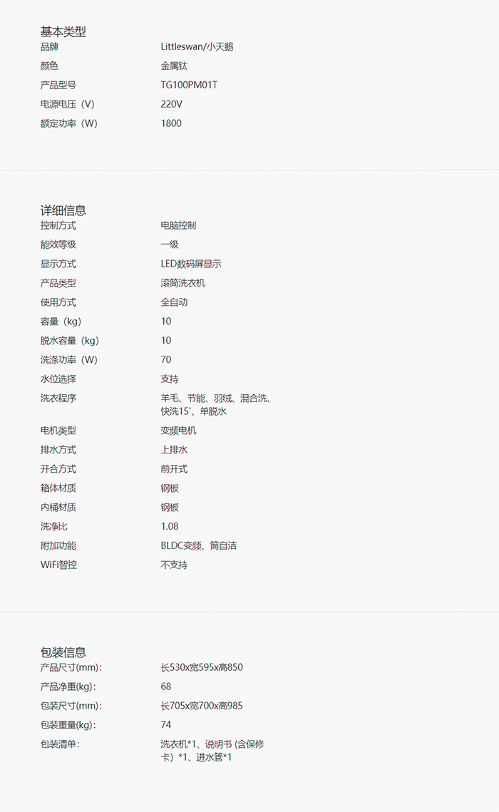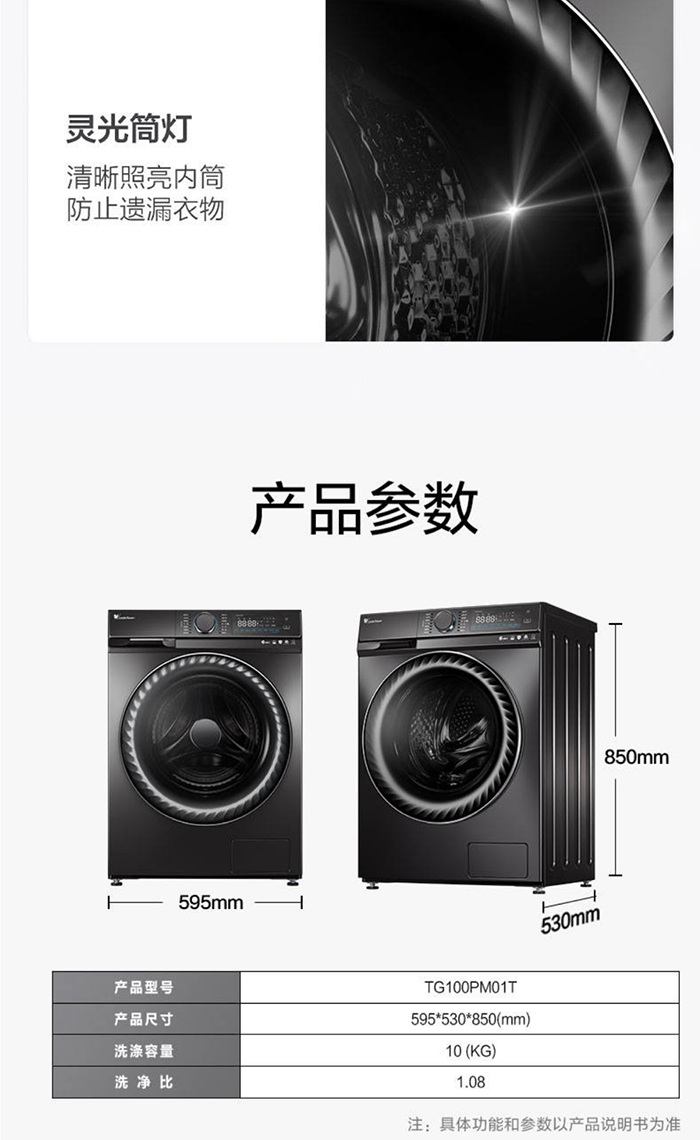 小天鹅(LittleSwan)3D立方内筒10公斤滚筒洗衣机TG100PM01T