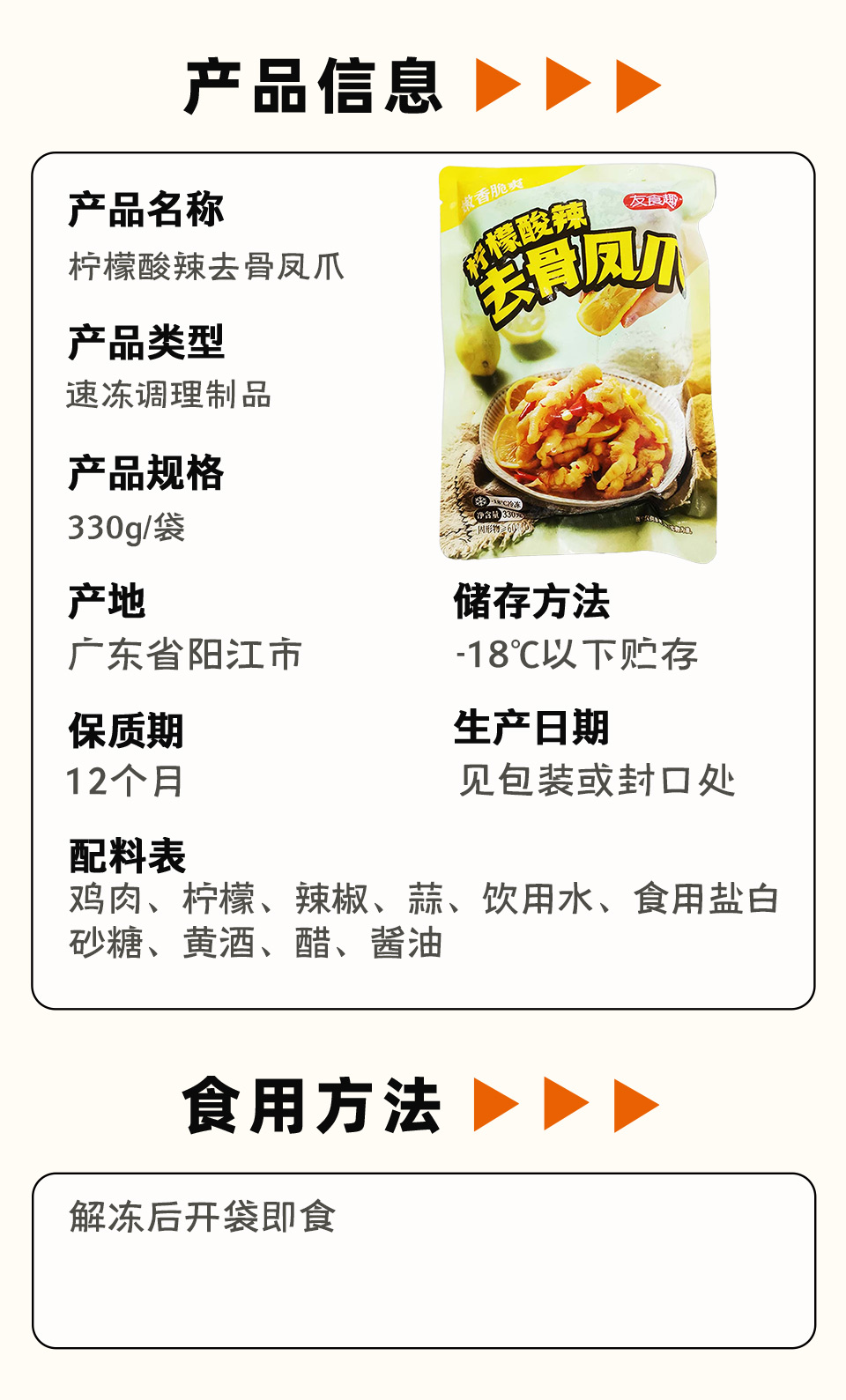 友食趣柠檬酸辣去骨凤爪 330g/袋 28袋/件