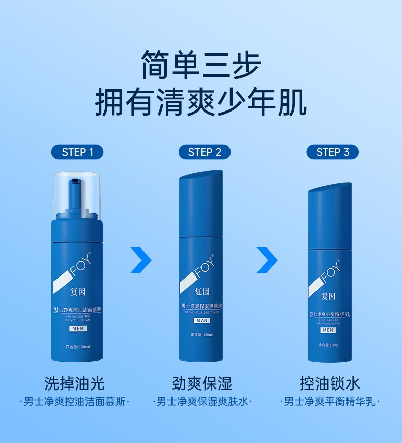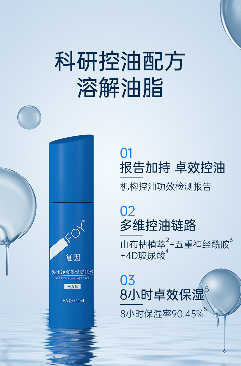 【2件9折,3件8折】复因FOY男士净爽保湿爽肤水120ml 清爽控油卓效保湿 **