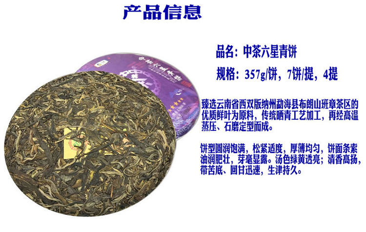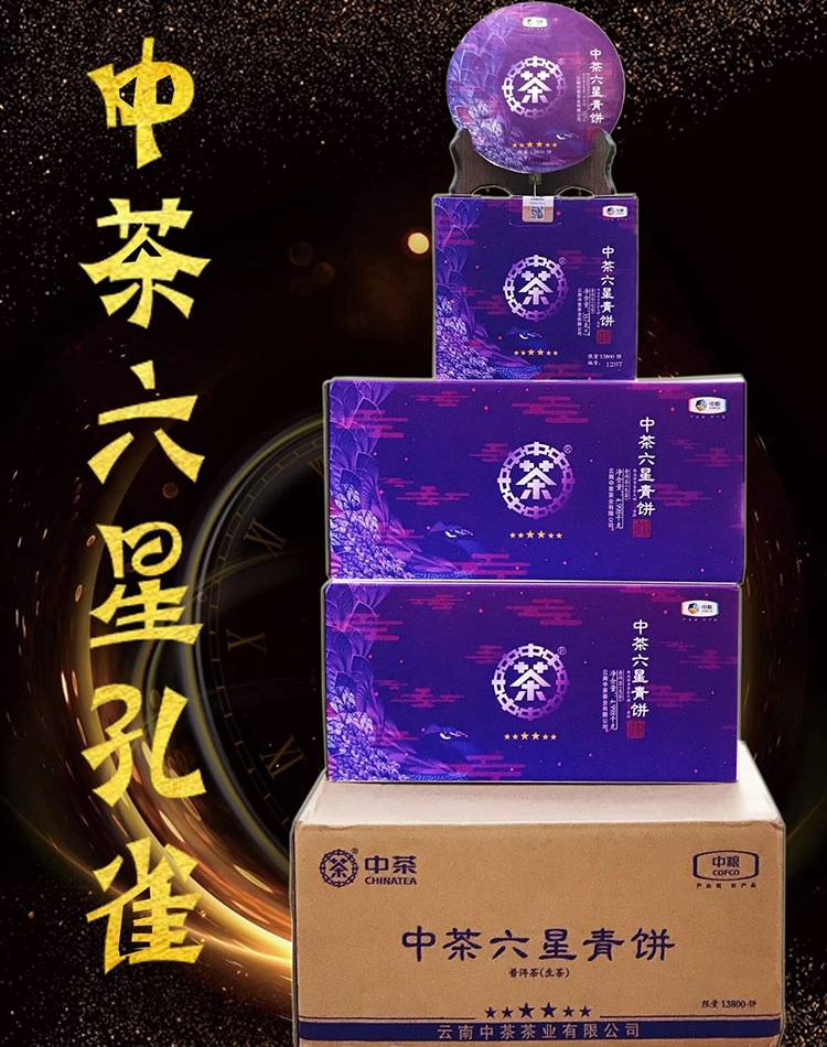 中粮-中茶2018年中茶孔雀六星青饼班章大树春茶生茶饼 357g/饼/云南干仓直发