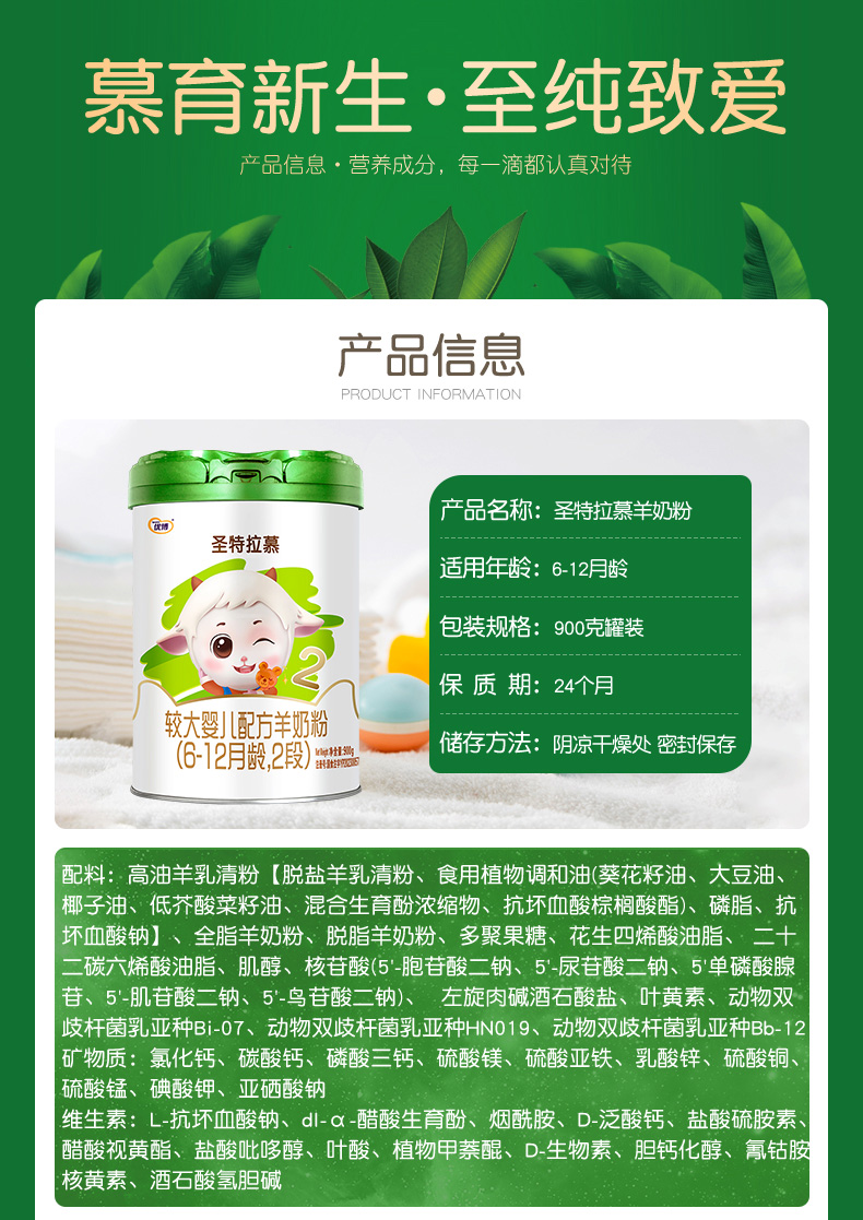 圣特拉慕羊奶粉2段900g*6罐【顺丰包邮】