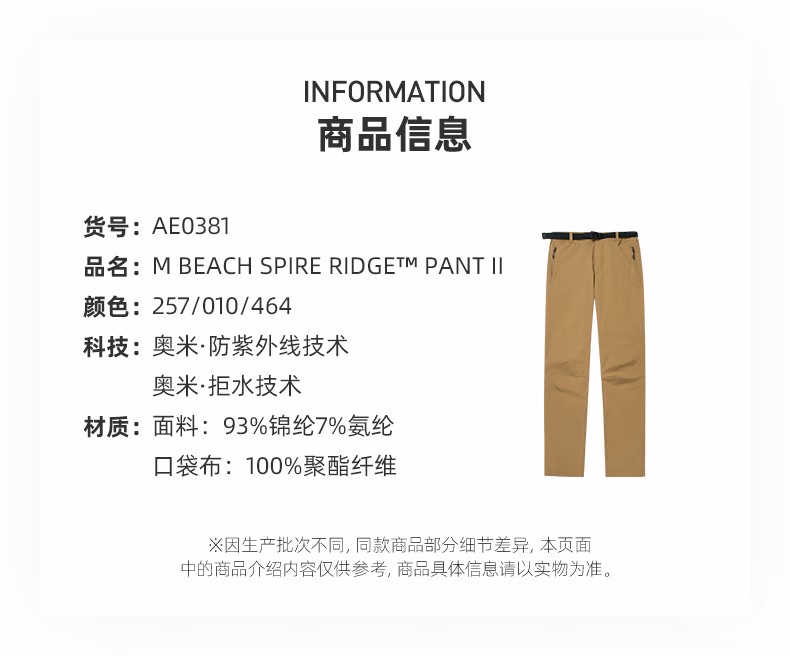 哥伦比亚拒水防晒弹力长裤AE0381