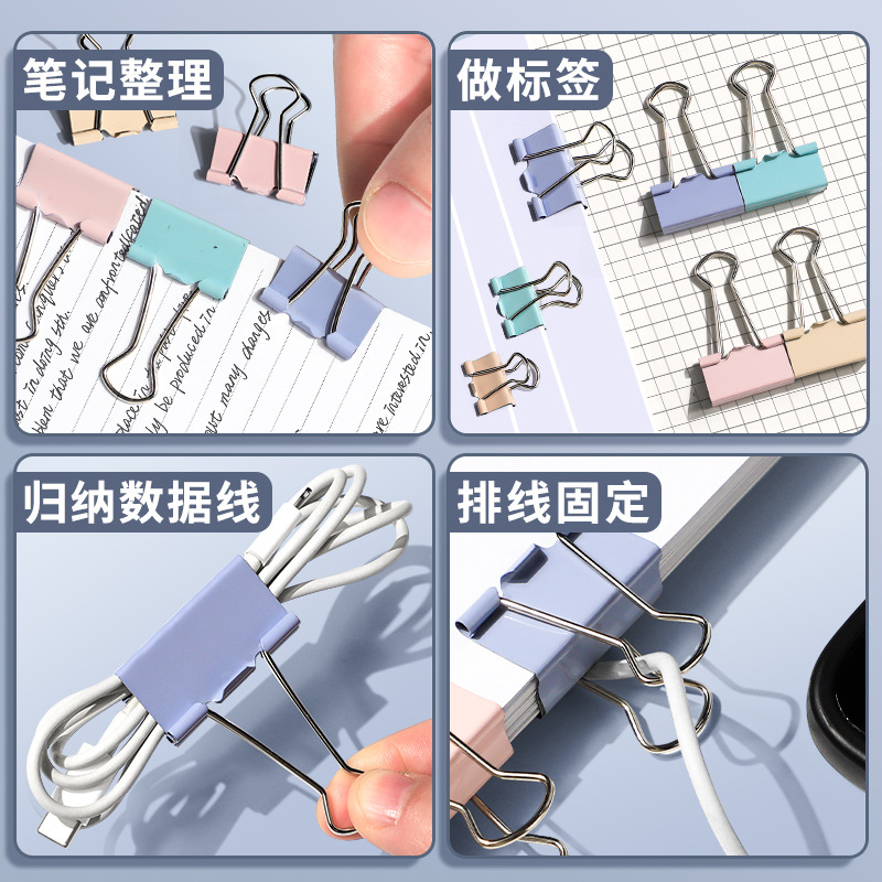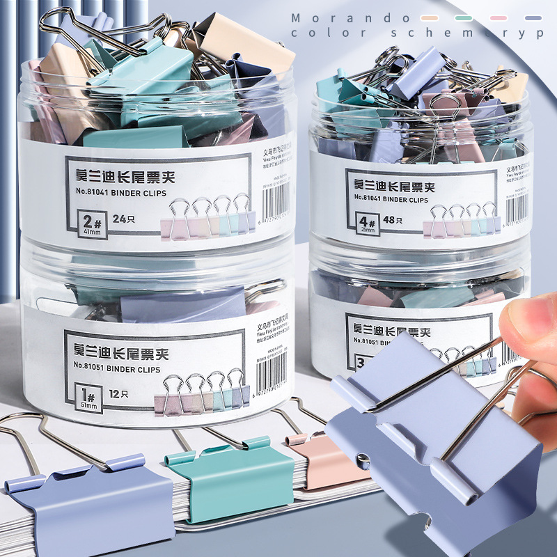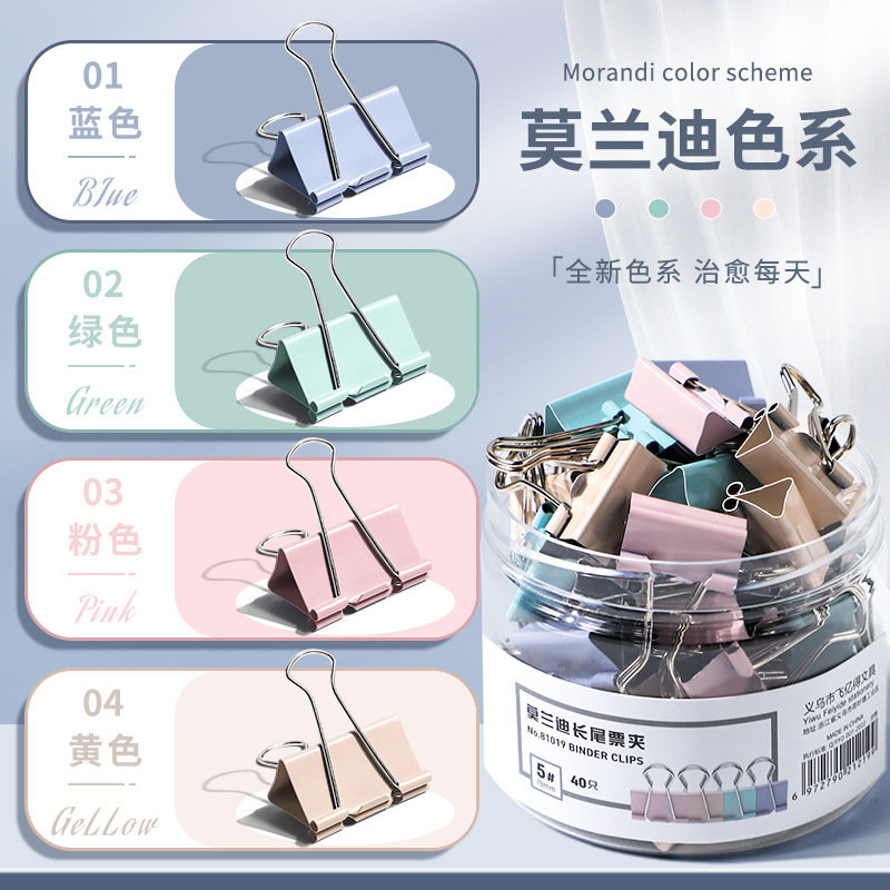 「9.9到手40个!数套可选」真彩莫兰迪燕尾夹高颜值长尾夹手账文件居家日用小夹子订书金属铁票夹凤尾