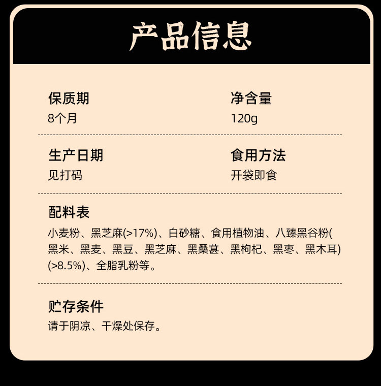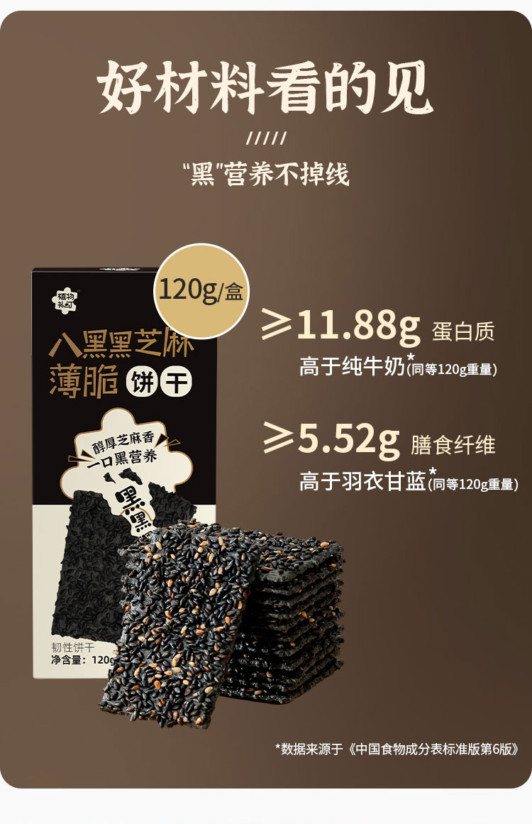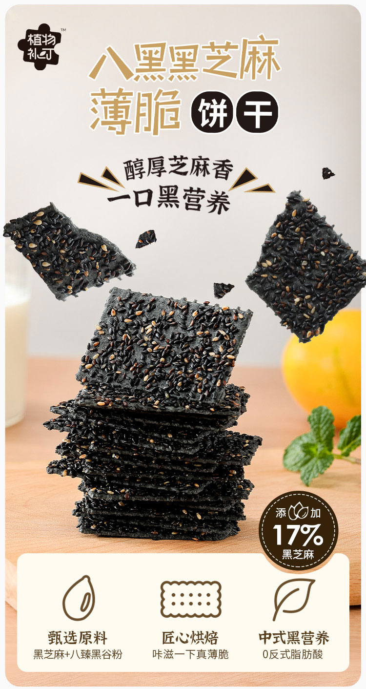 植物补叮八黑黑芝麻薄脆 120g*3包