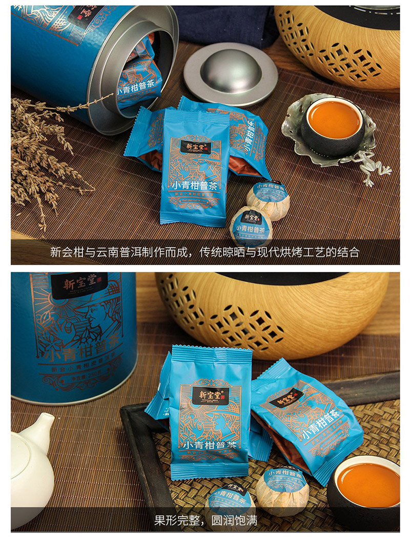新宝堂新会小青柑普茶熟茶送礼礼盒蓝罐250g