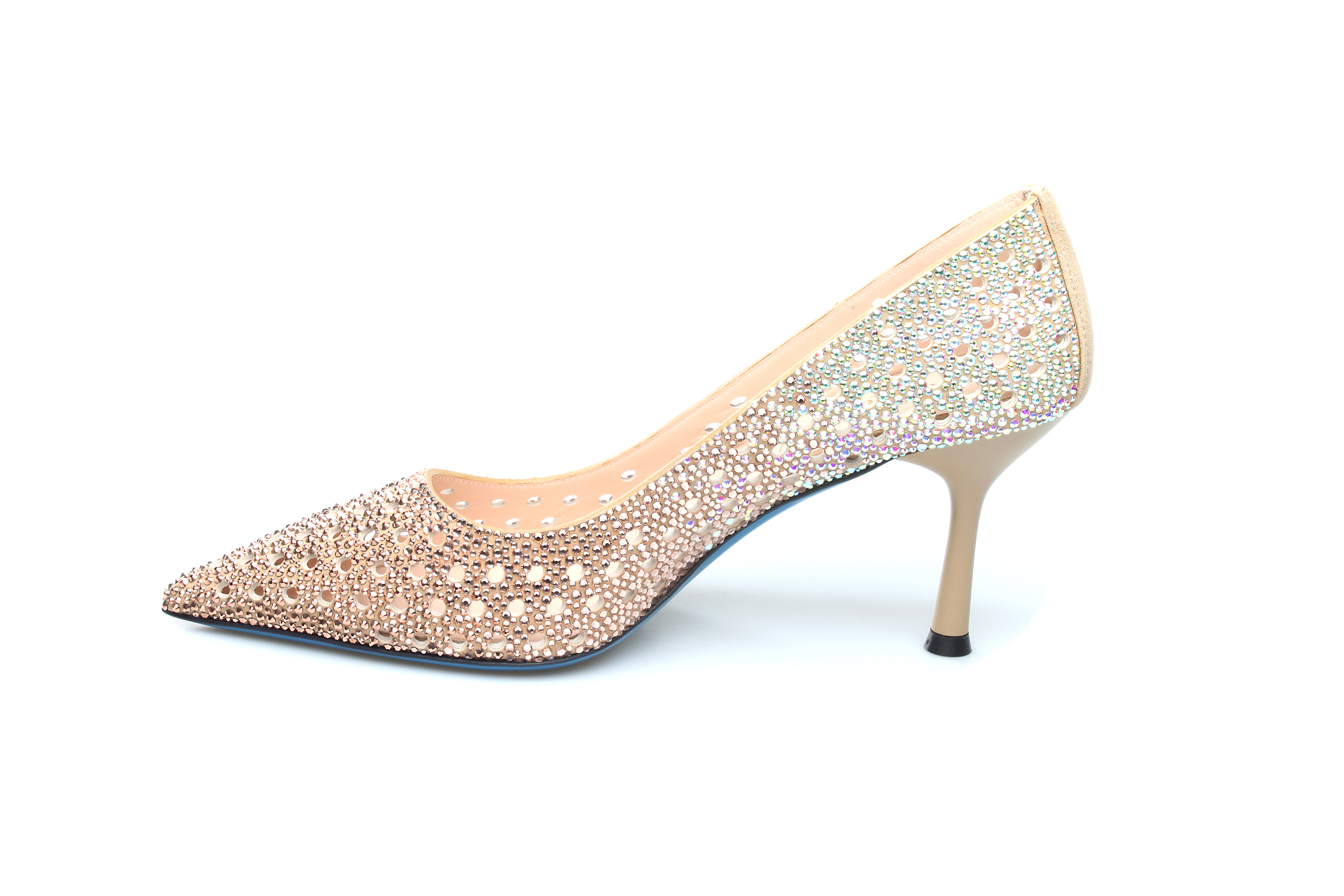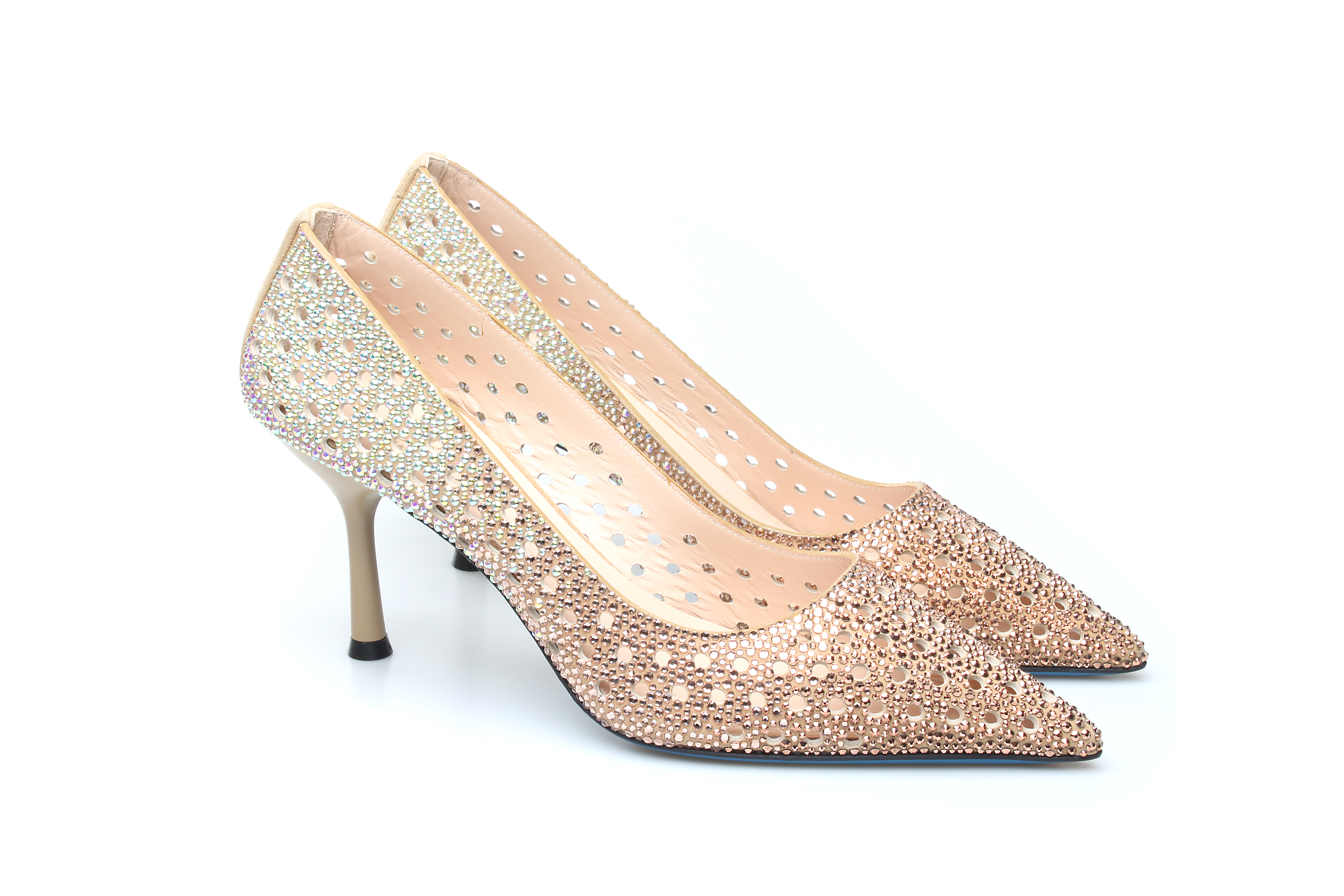 豪麟名鞋奥莱LORIBLU女鞋皮鞋羊反绒面革+施华洛世奇LR005378P杏色 原价6600元