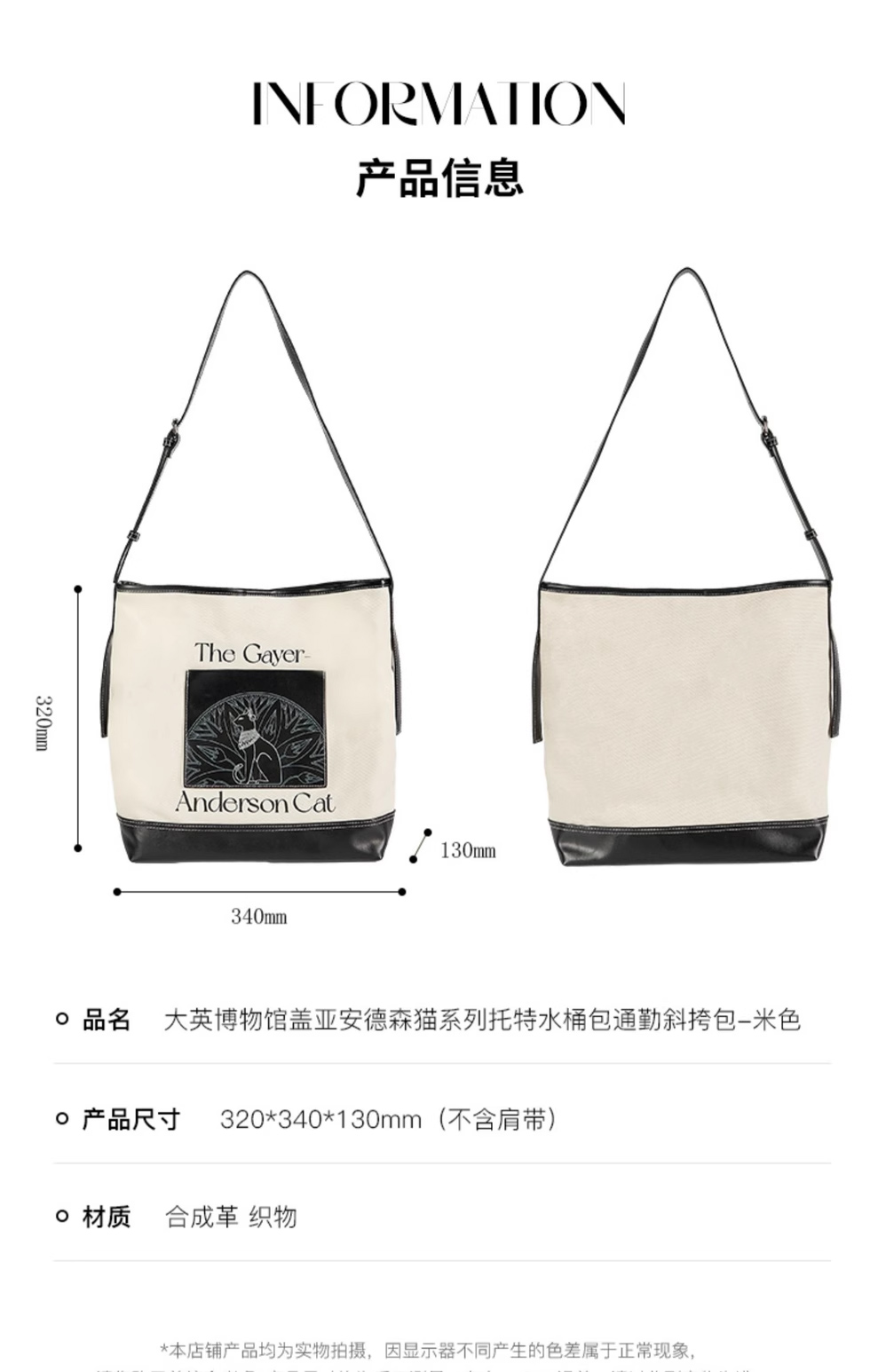 大英博物馆盖亚·安德森猫系列 男女通用 街头潮牌 托特水桶单肩包水桶包