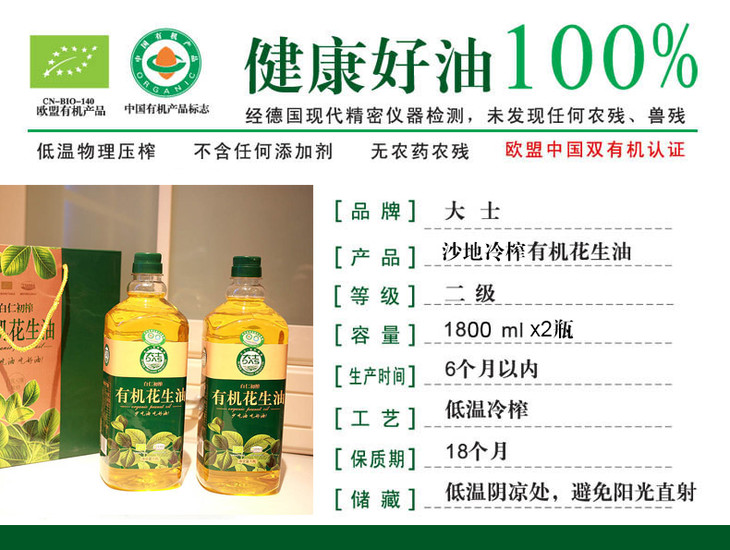 有机花生油礼盒1.8L*2瓶 商品图4