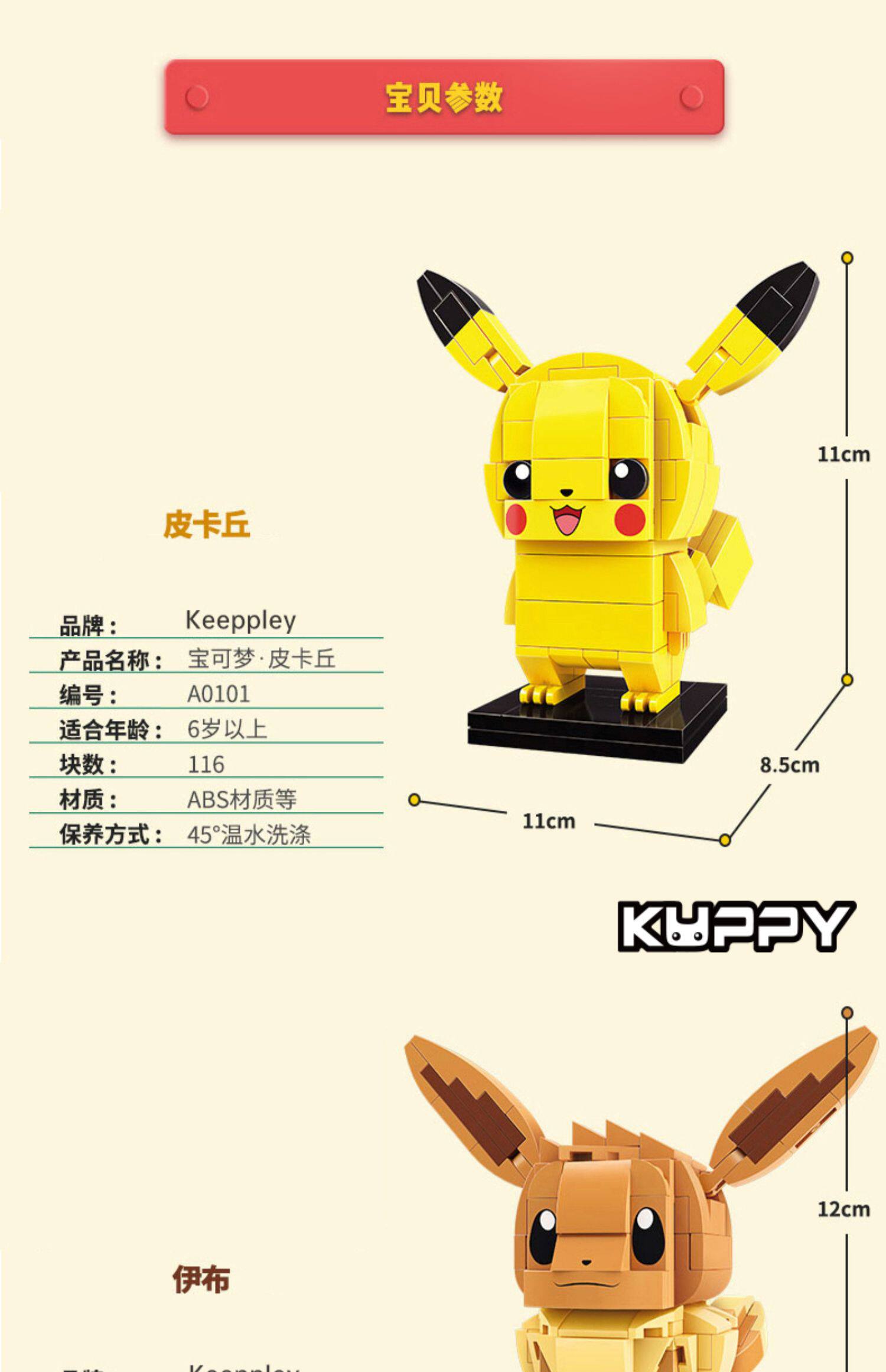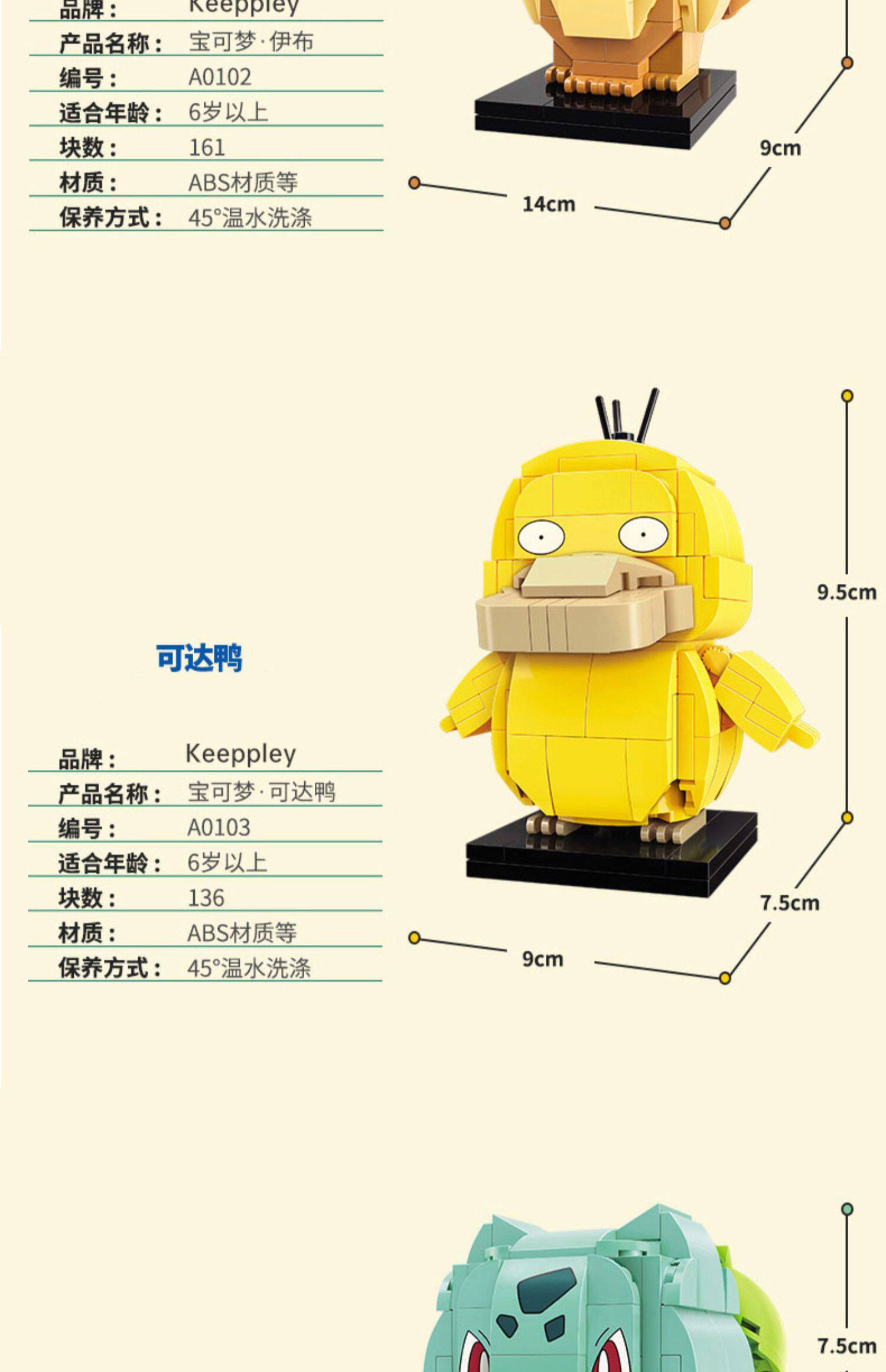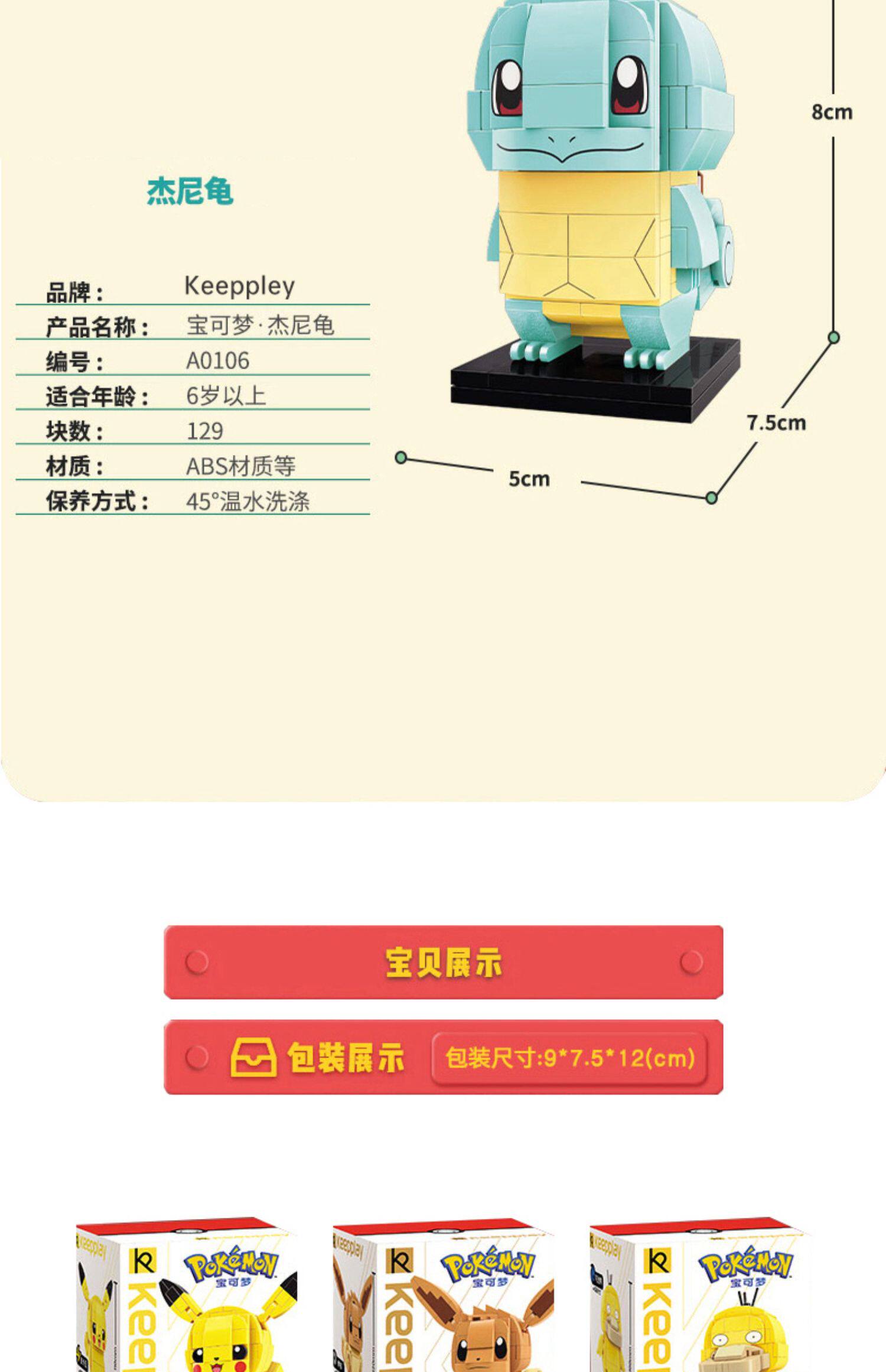 Keeppley-宝可梦系列 拼装积木 皮卡丘/杰尼龟/可达鸭/妙蛙种子/小火龙/伊布