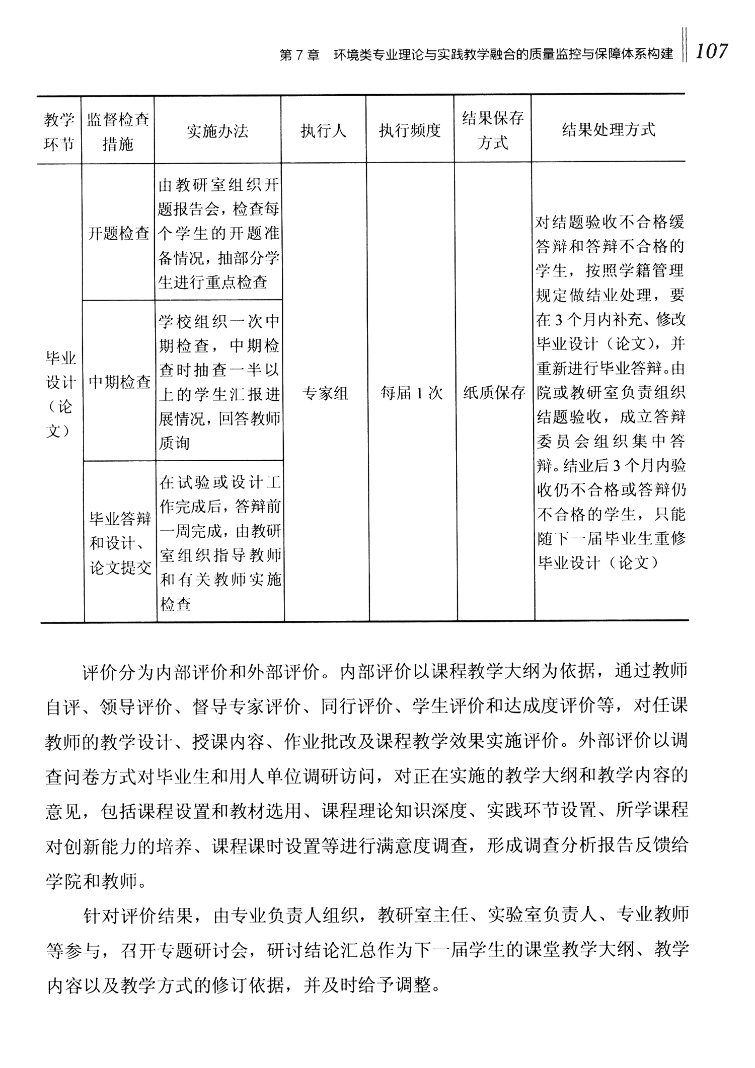第7章 环境类专业理论与实践教学融合的质量监控与保障体系构建