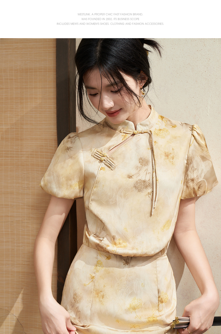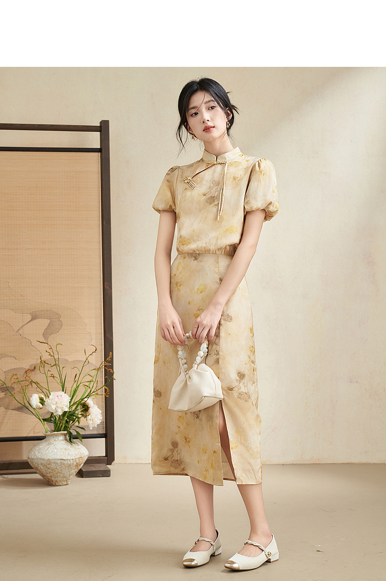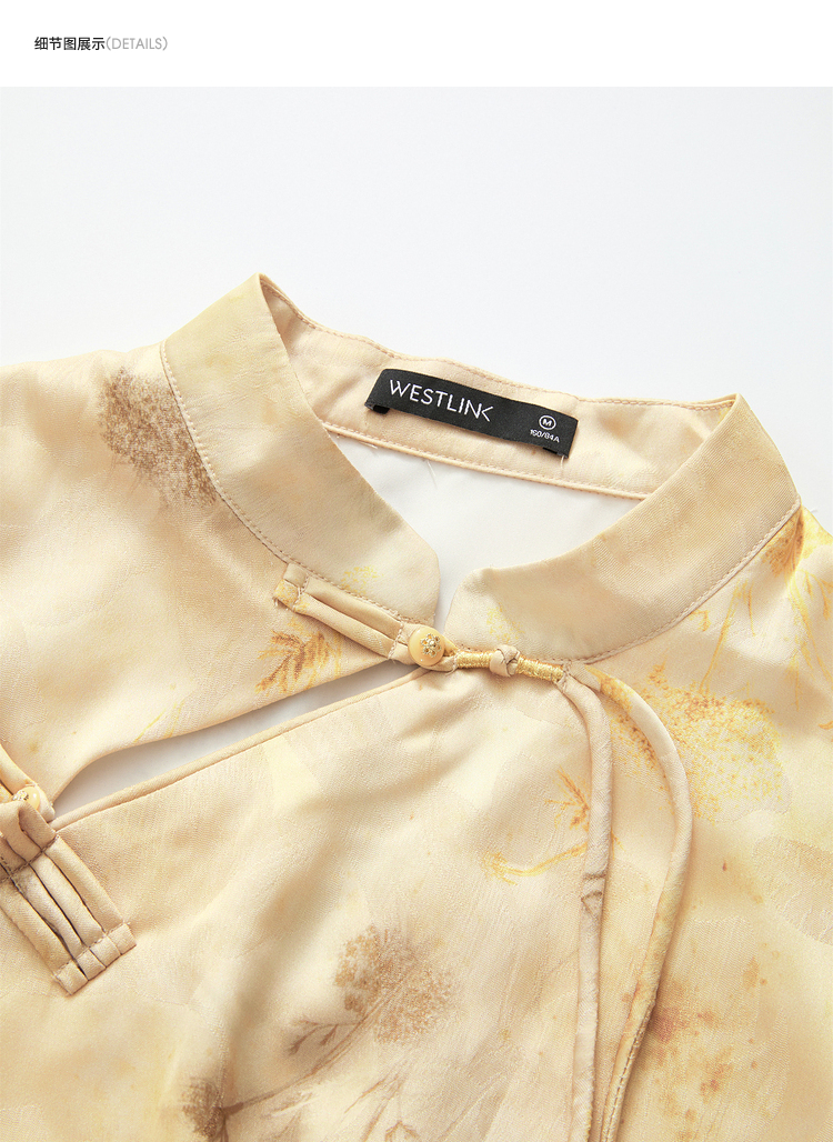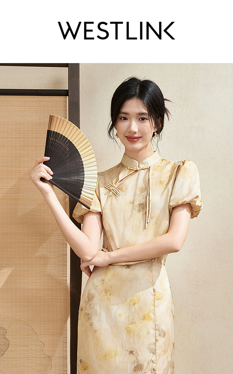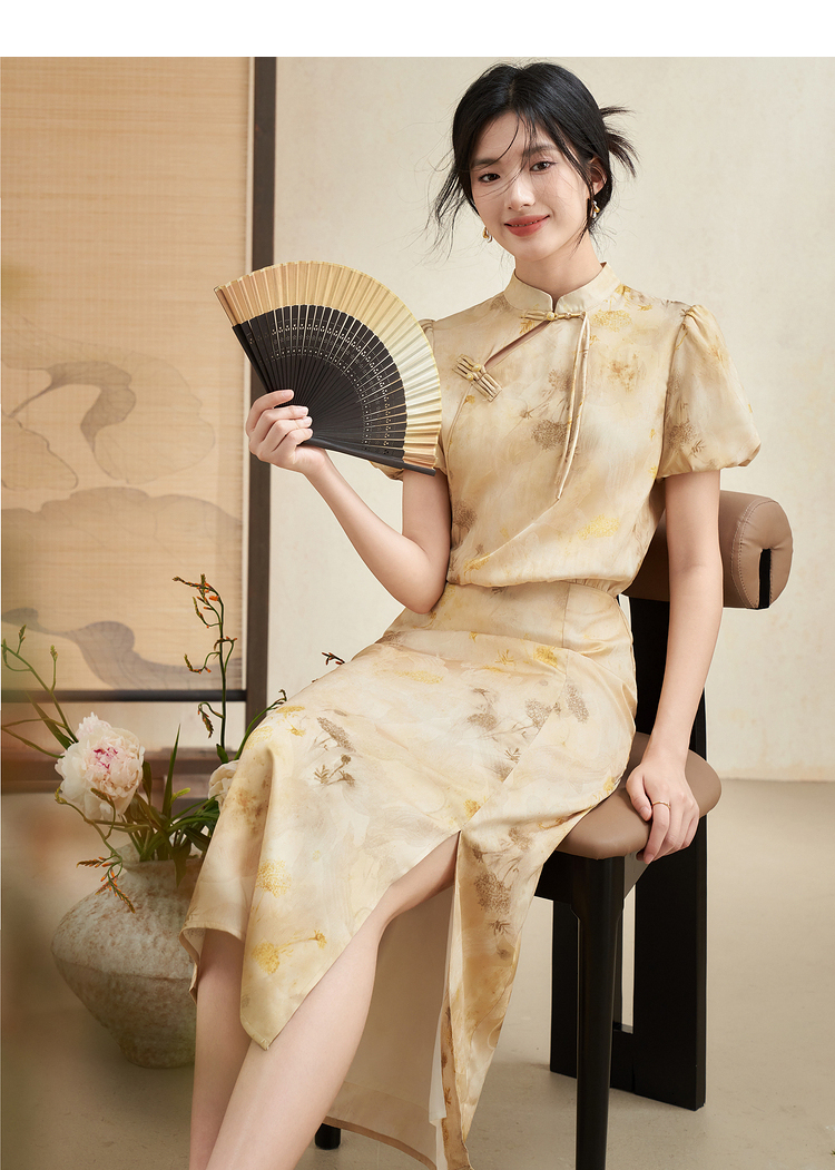 西遇新中式印花短袖连衣裙女夏季新款时尚显瘦优雅文艺长裙子D2241888