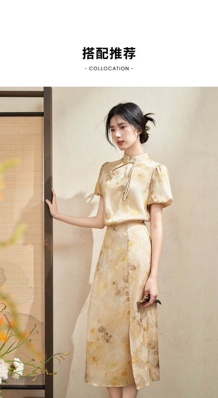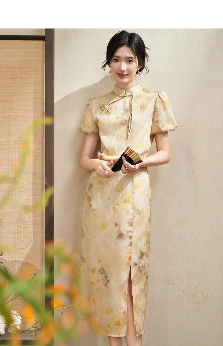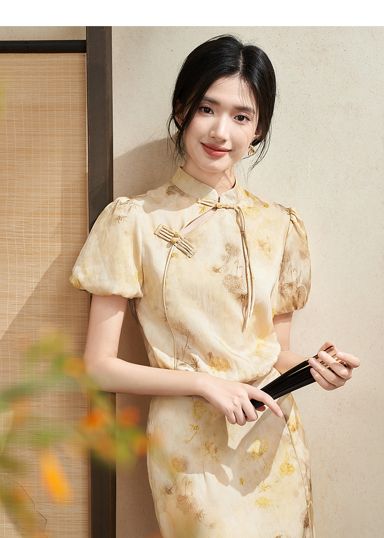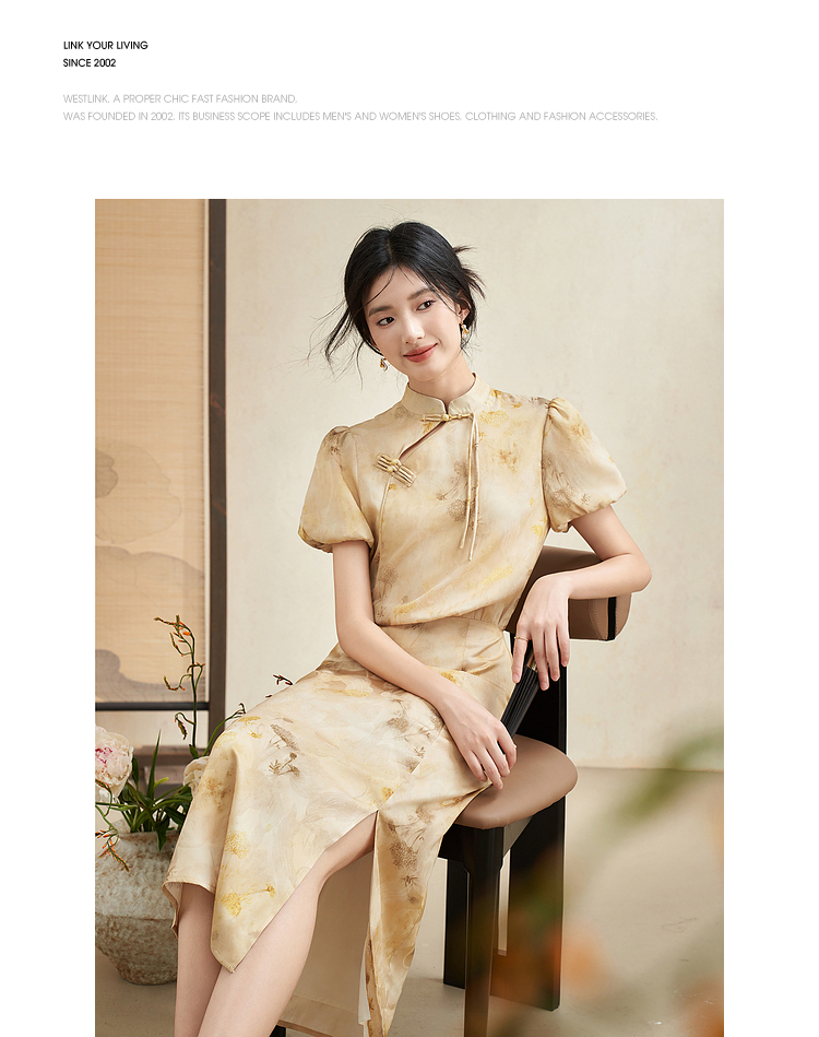 西遇新中式印花短袖连衣裙女夏季新款时尚显瘦优雅文艺长裙子D2241888