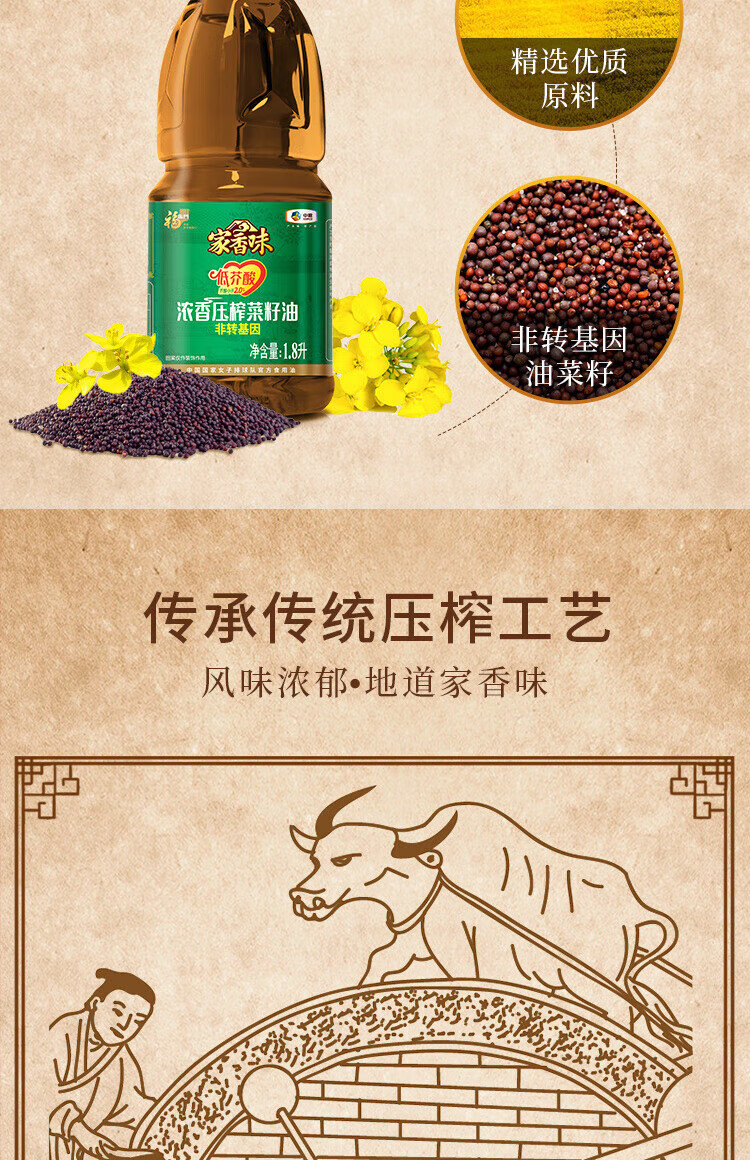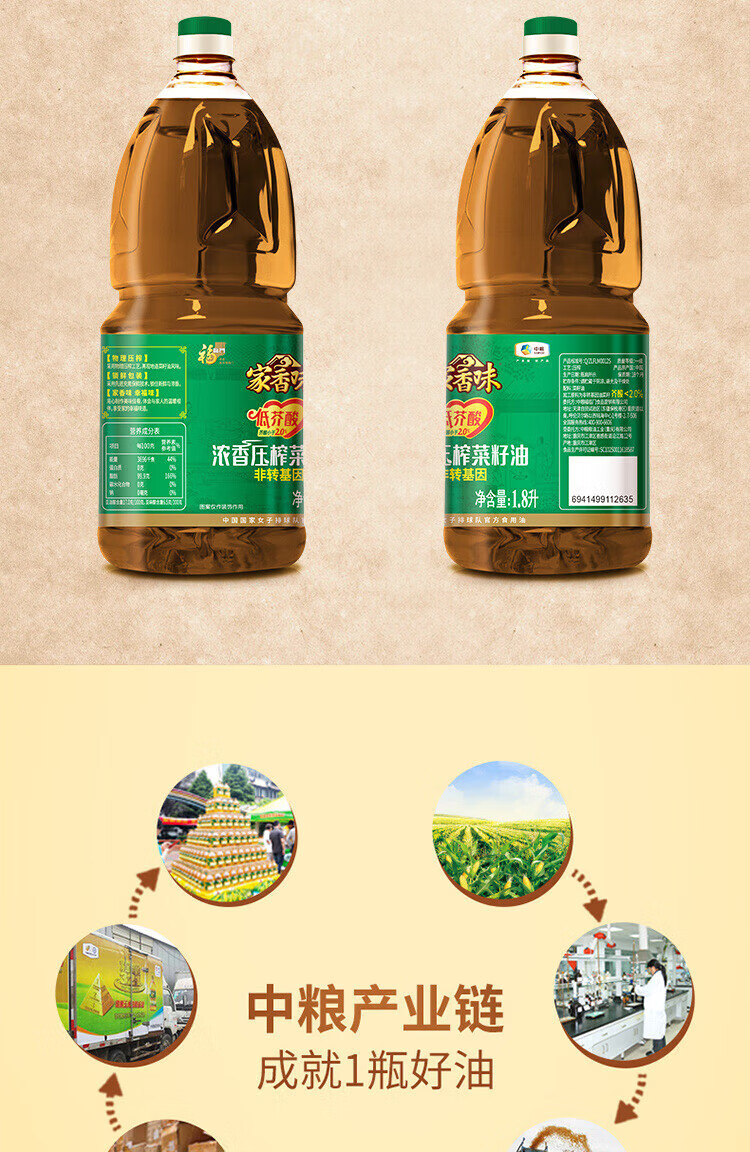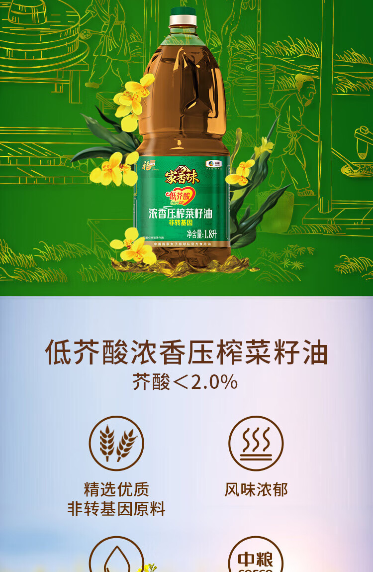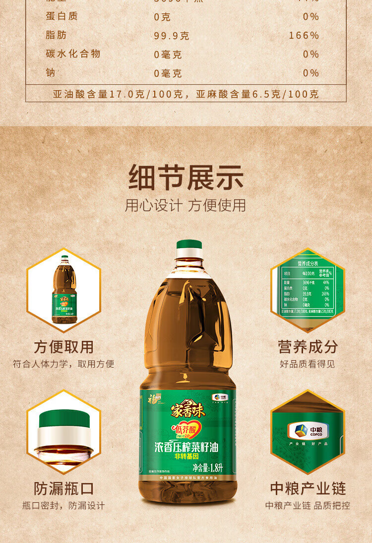 中粮家香味低芥酸浓香压榨菜籽油1.8L