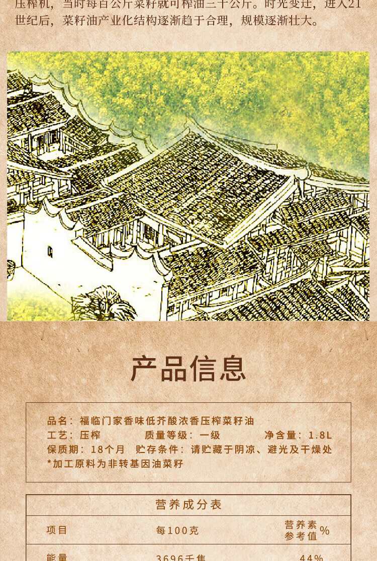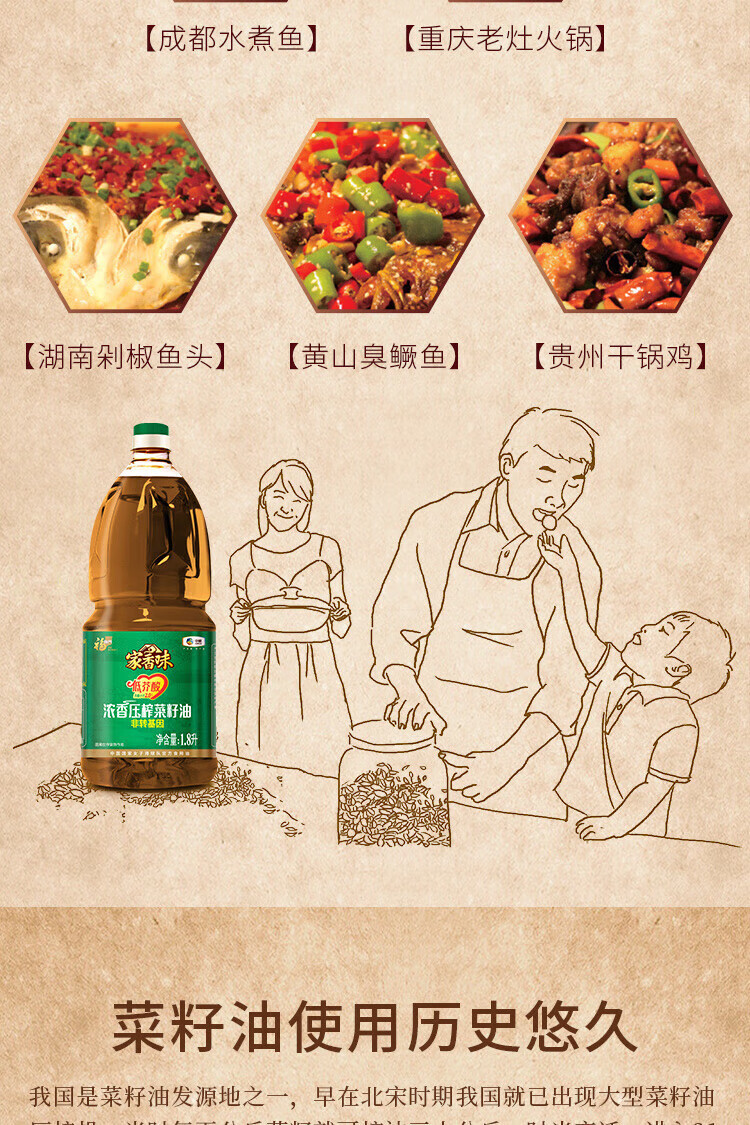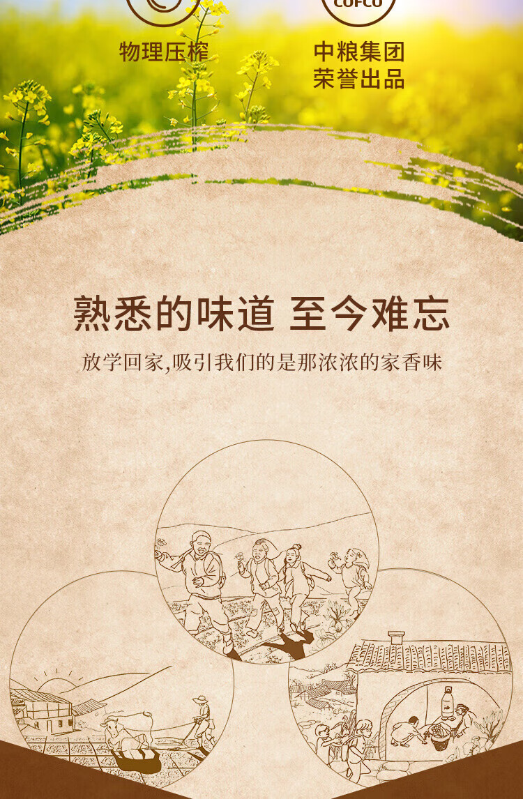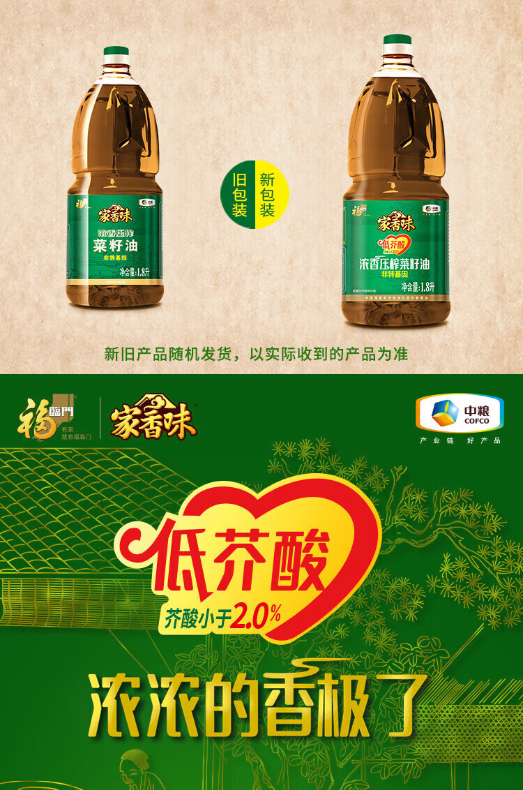 中粮家香味低芥酸浓香压榨菜籽油1.8L