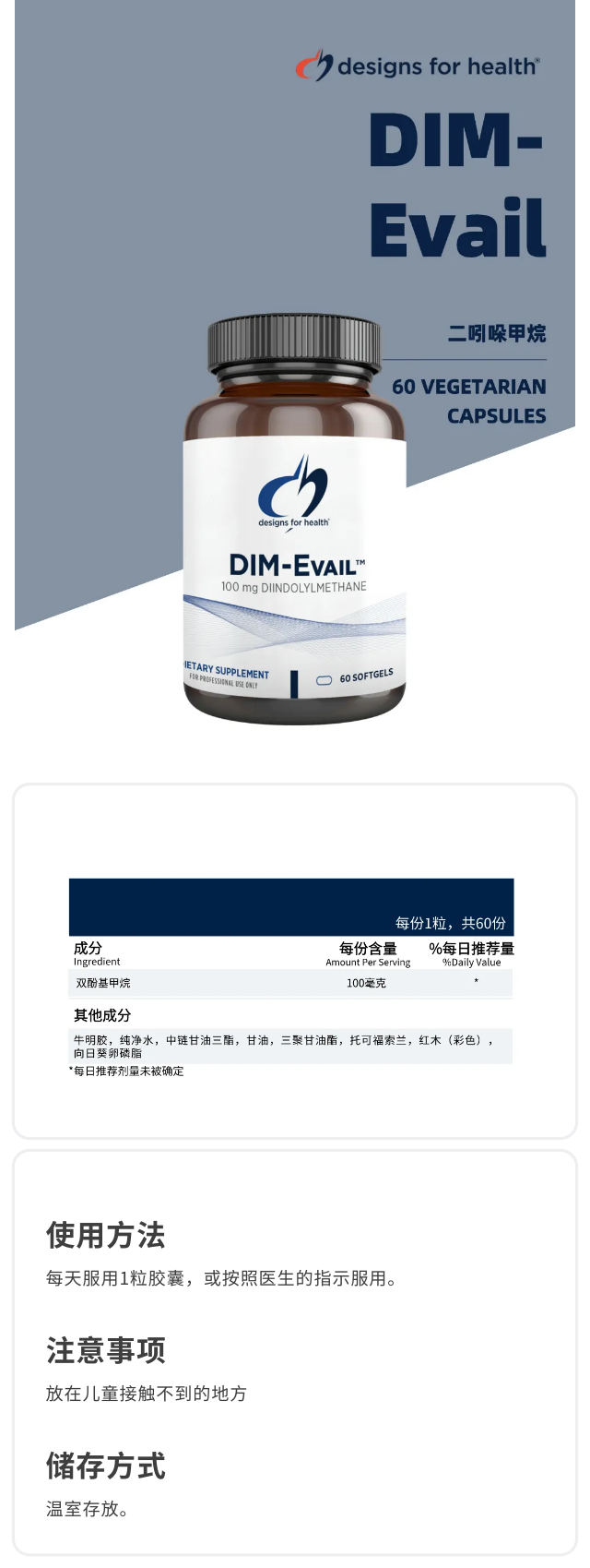【香港直邮】健康设计 DIM-EVAIL二吲哚甲烷 60粒 27/01