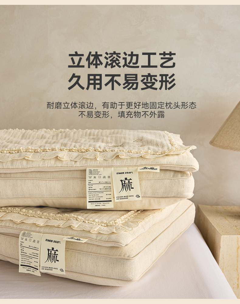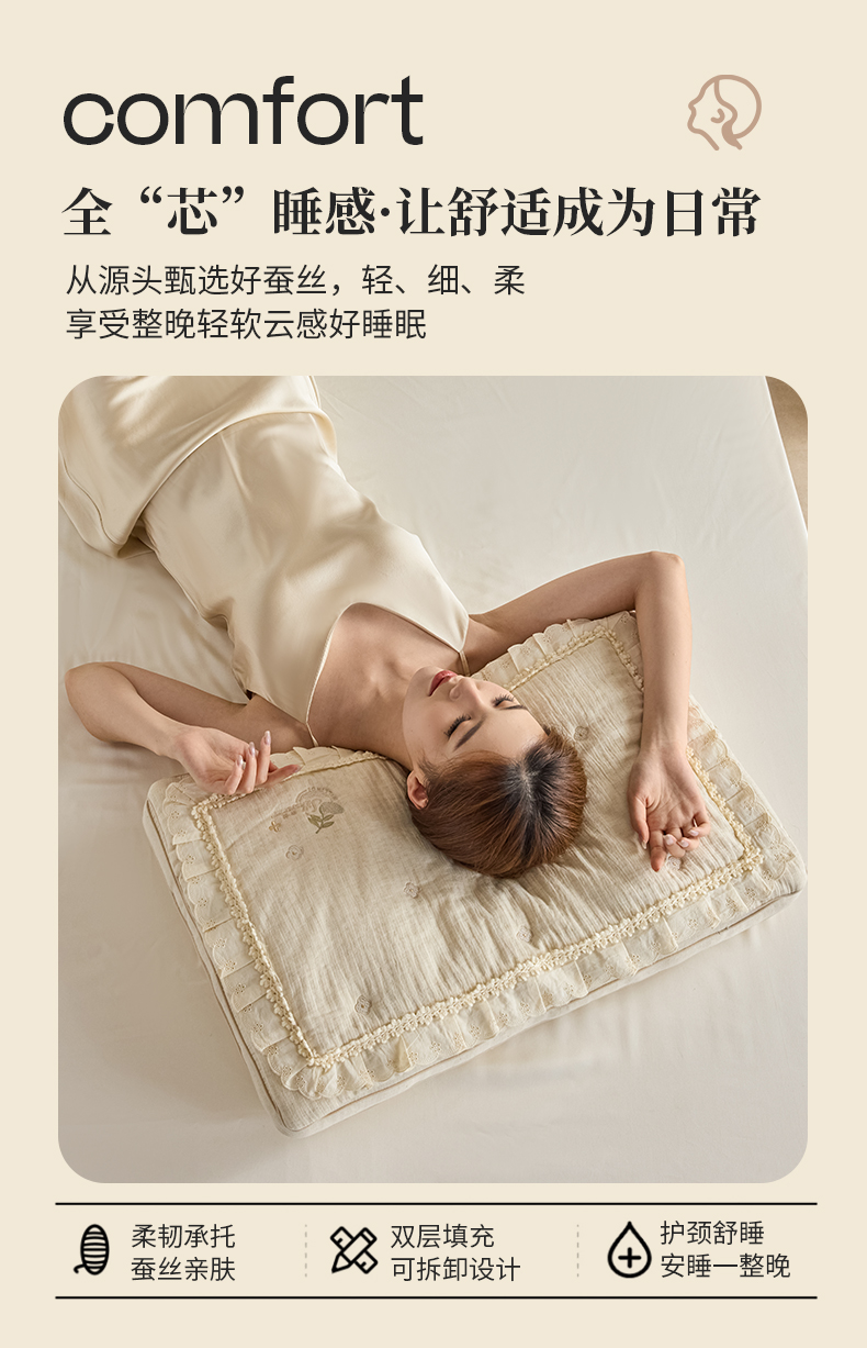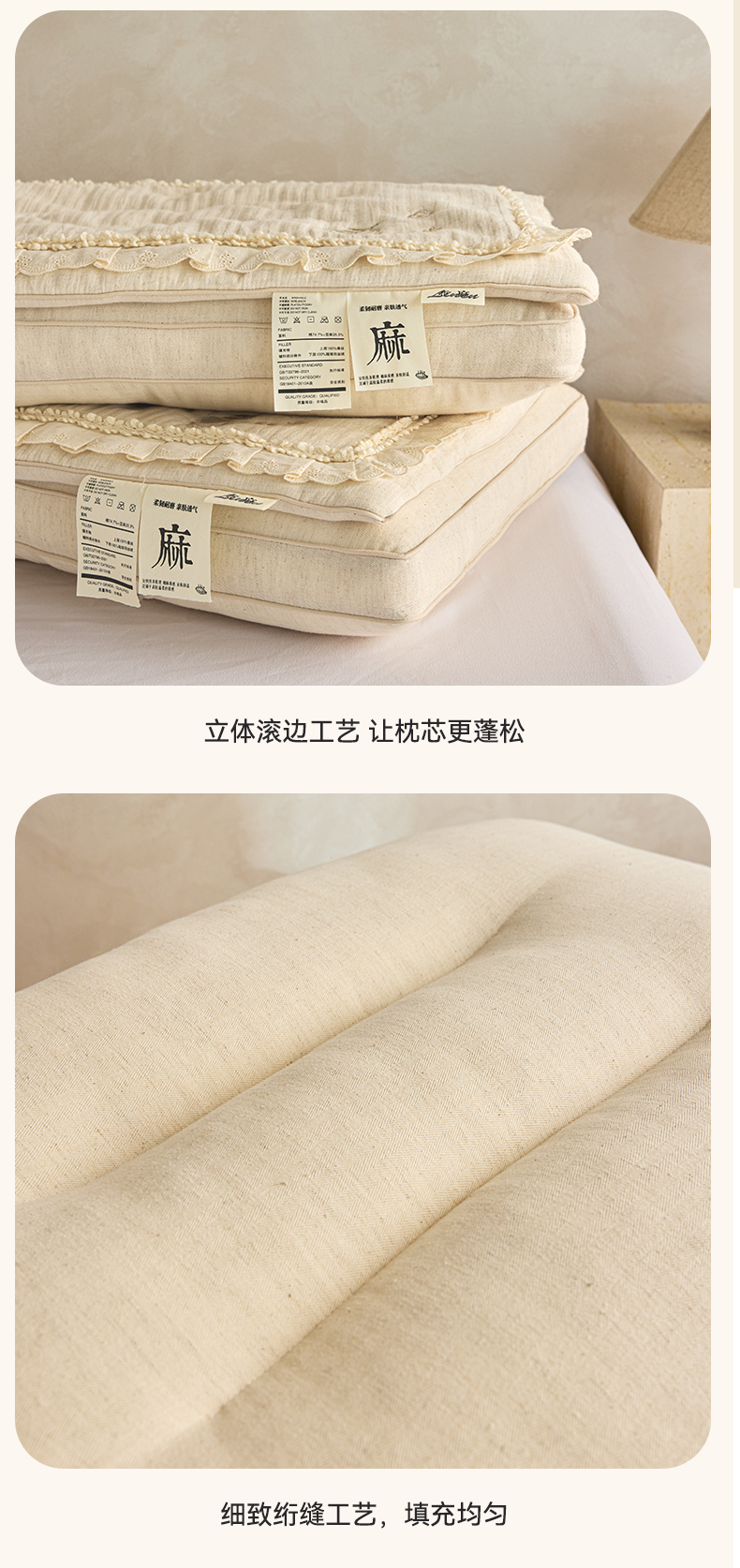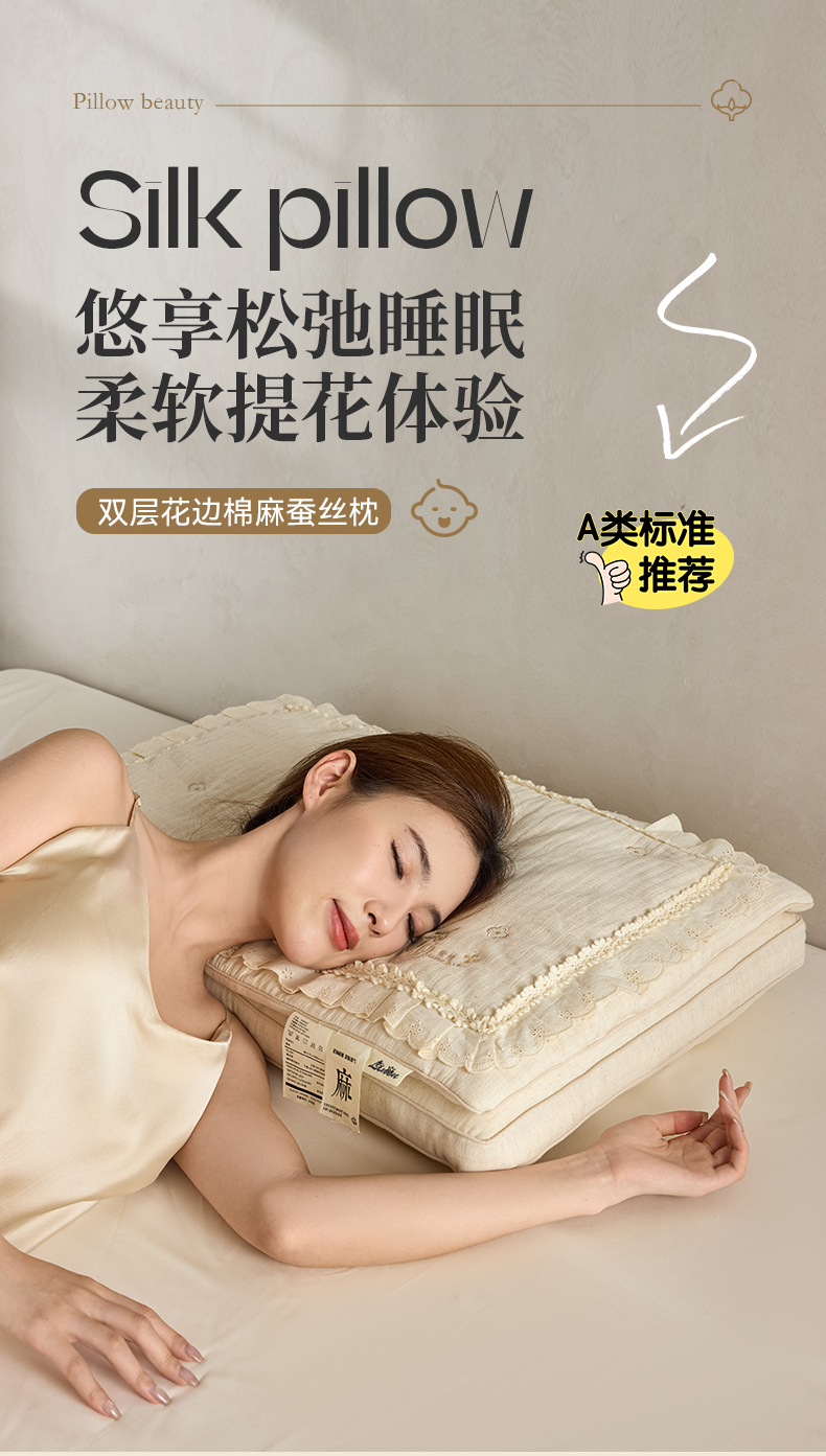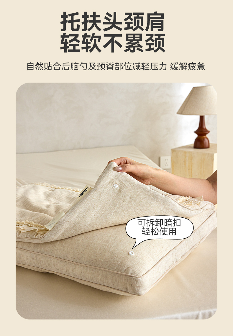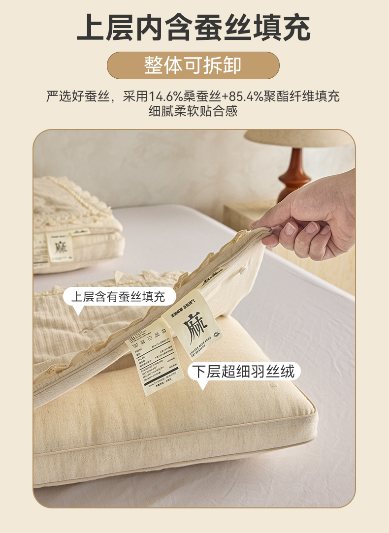 自然醒双层二合一可拆花边棉麻蚕丝枕XK