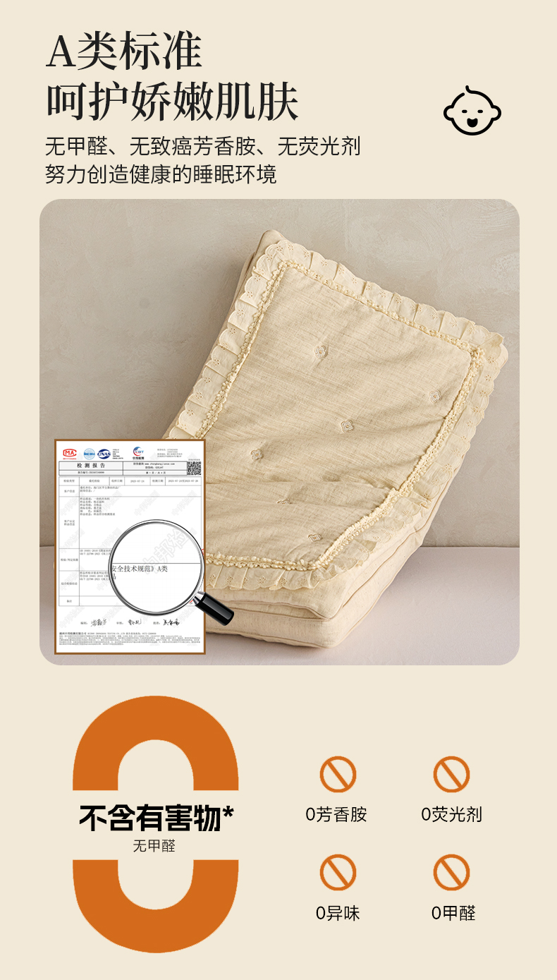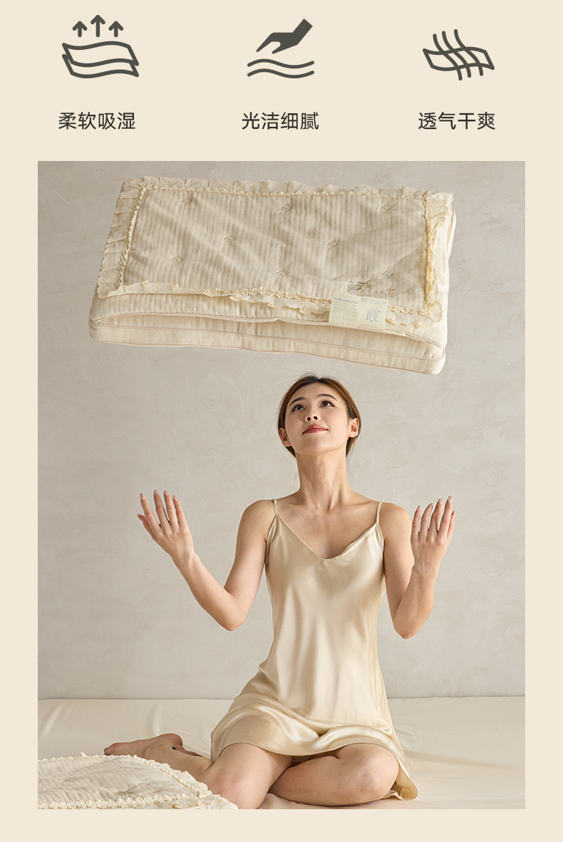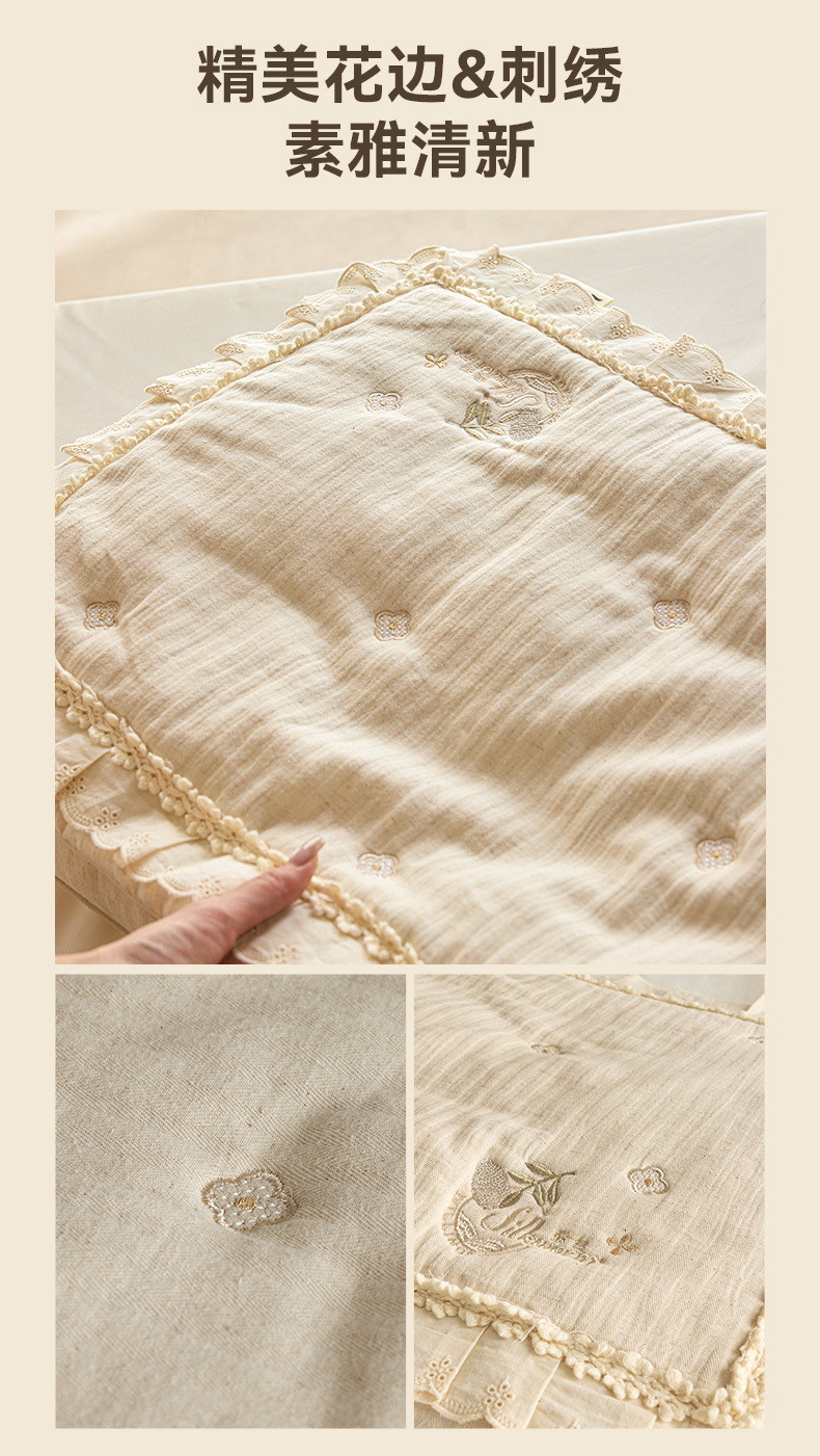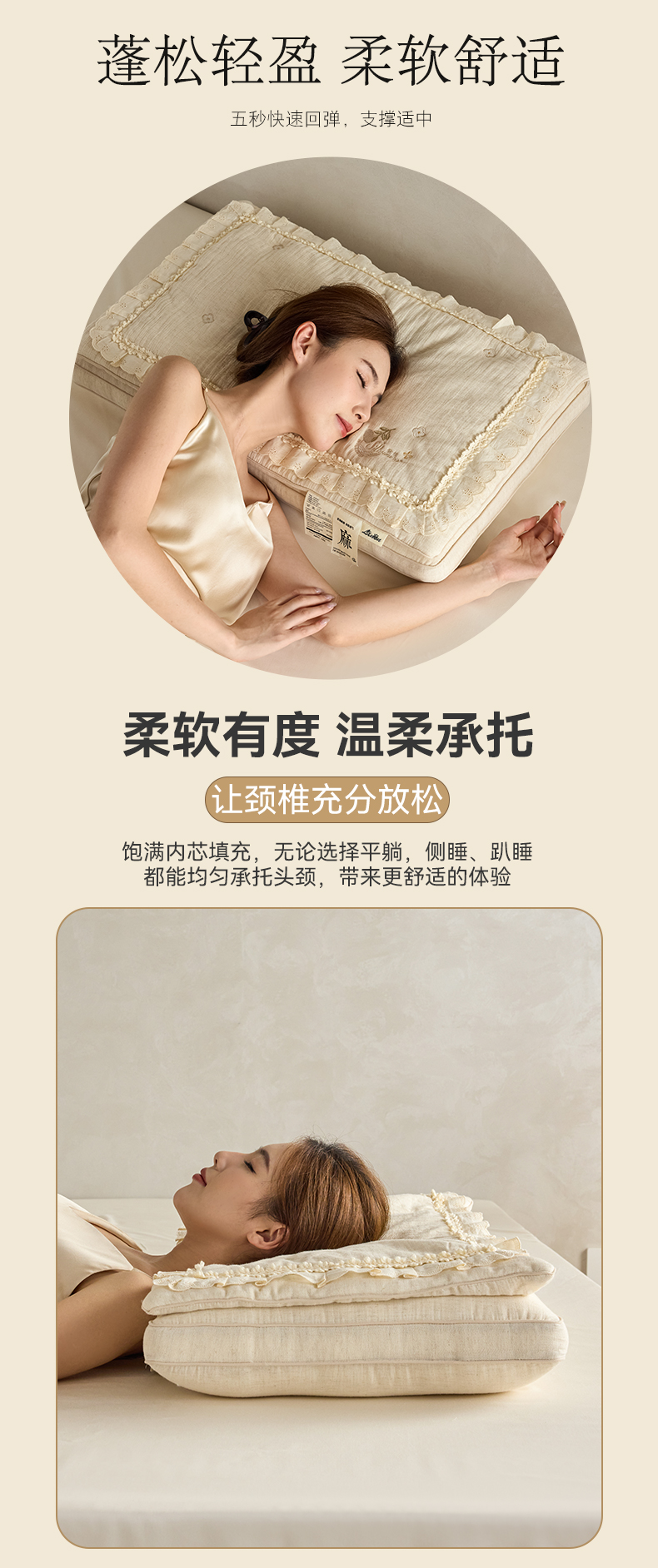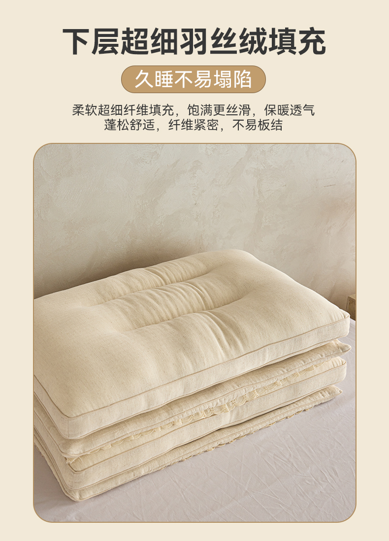 自然醒双层二合一可拆花边棉麻蚕丝枕XK