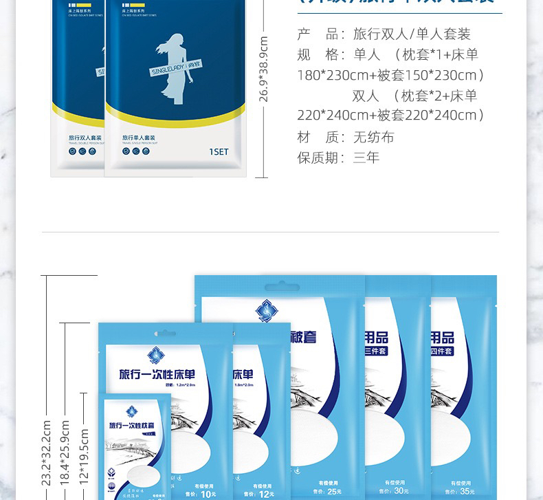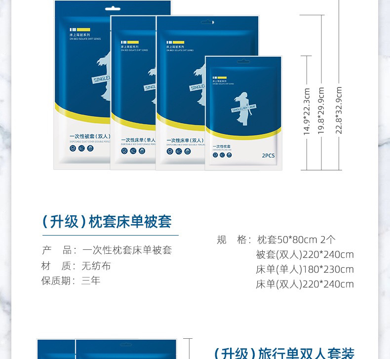 旅行一次性床单被套枕套睡袋床上用品四件套酒店三件套美容院被罩