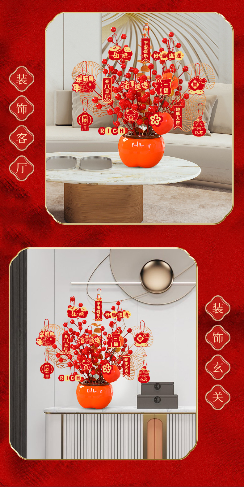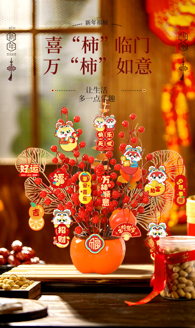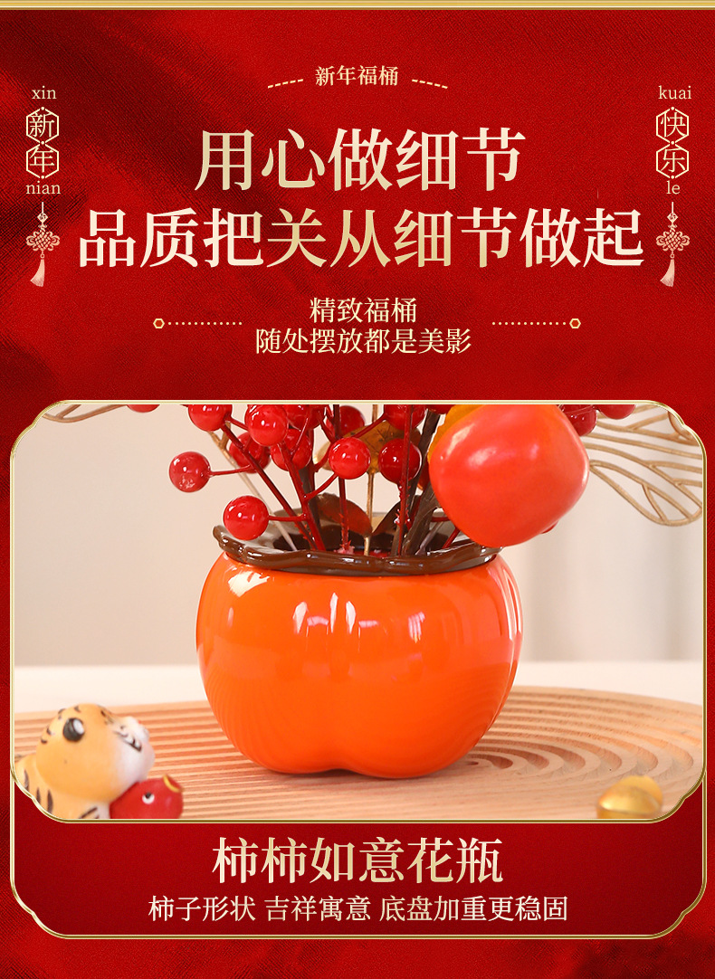 2026马年新款新年发财果装饰品客厅桌面柿柿如意柿子摆件春节用品