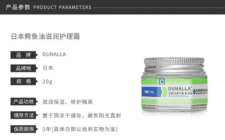 DUNALLA 鳄鱼油植物精华滋润保湿护理霜 20G 日本