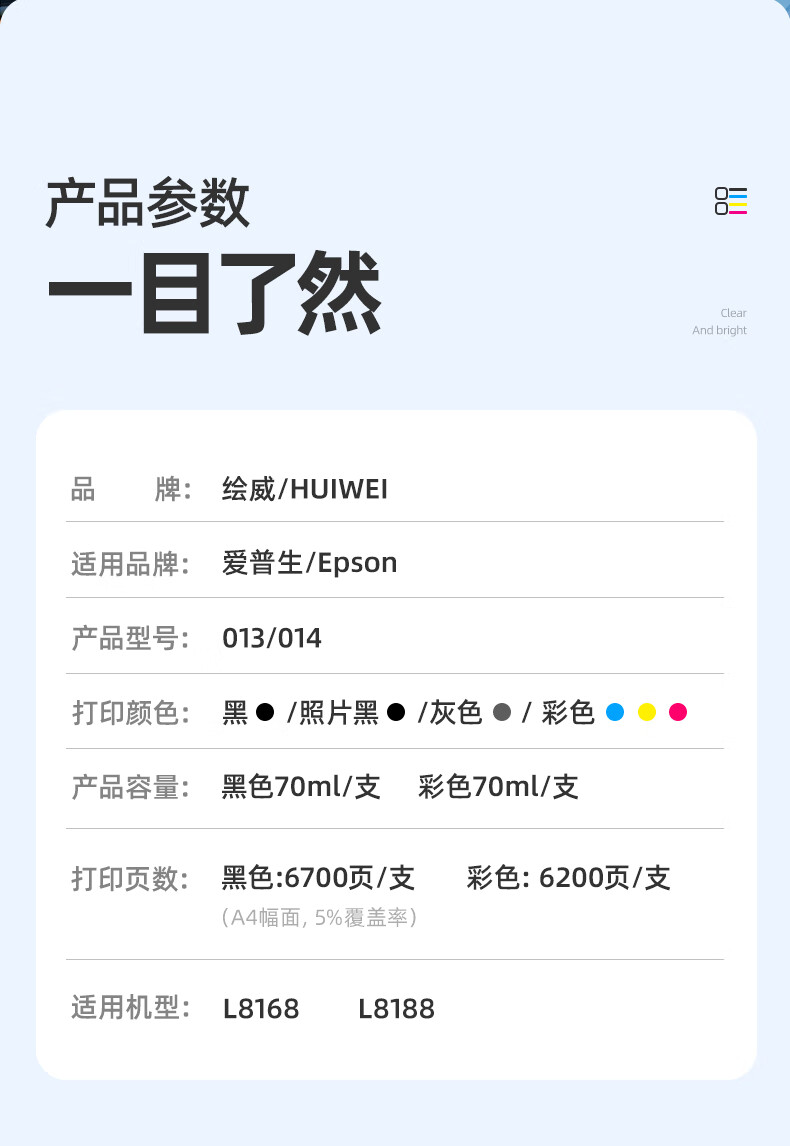 绘威适用爱普生013/014墨水、适用爱普生105/106墨水
