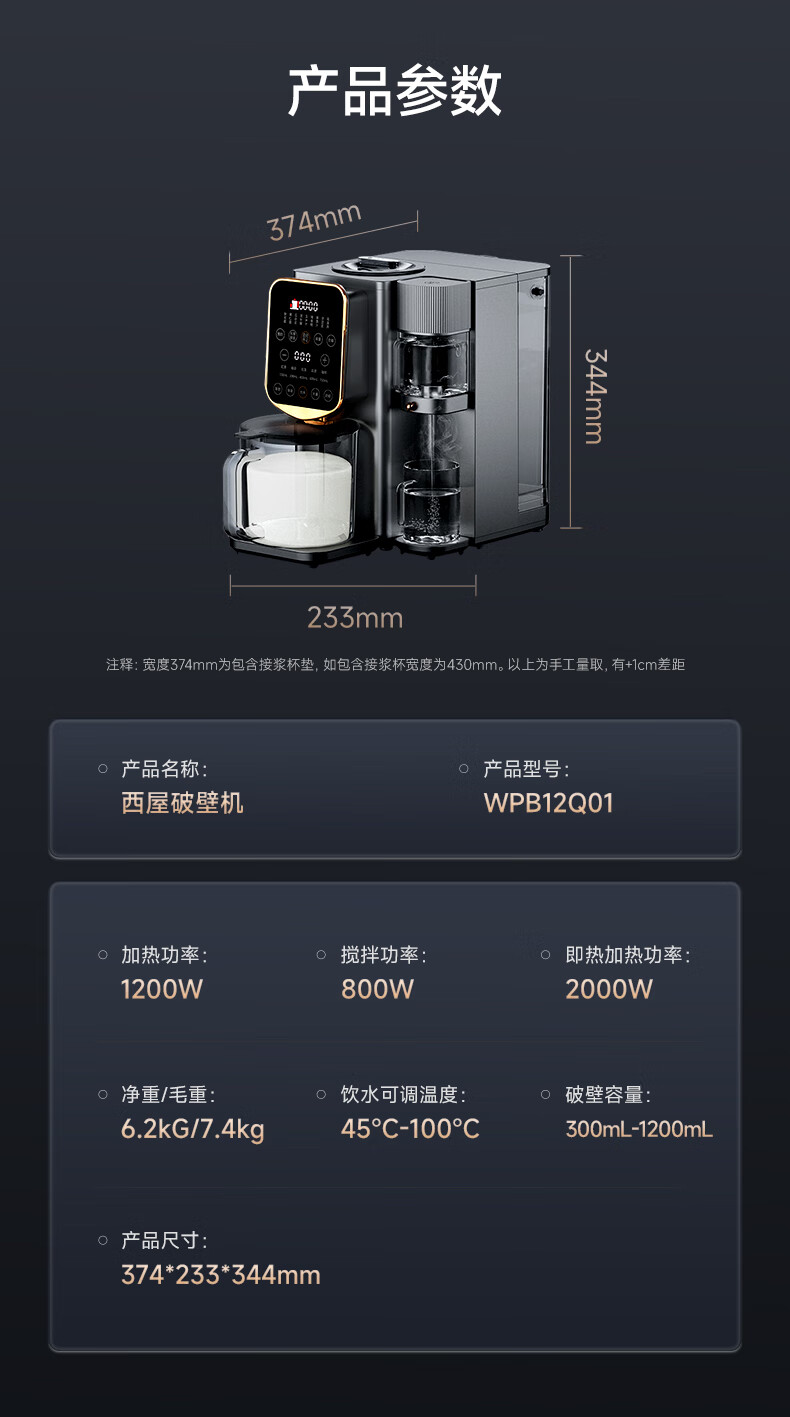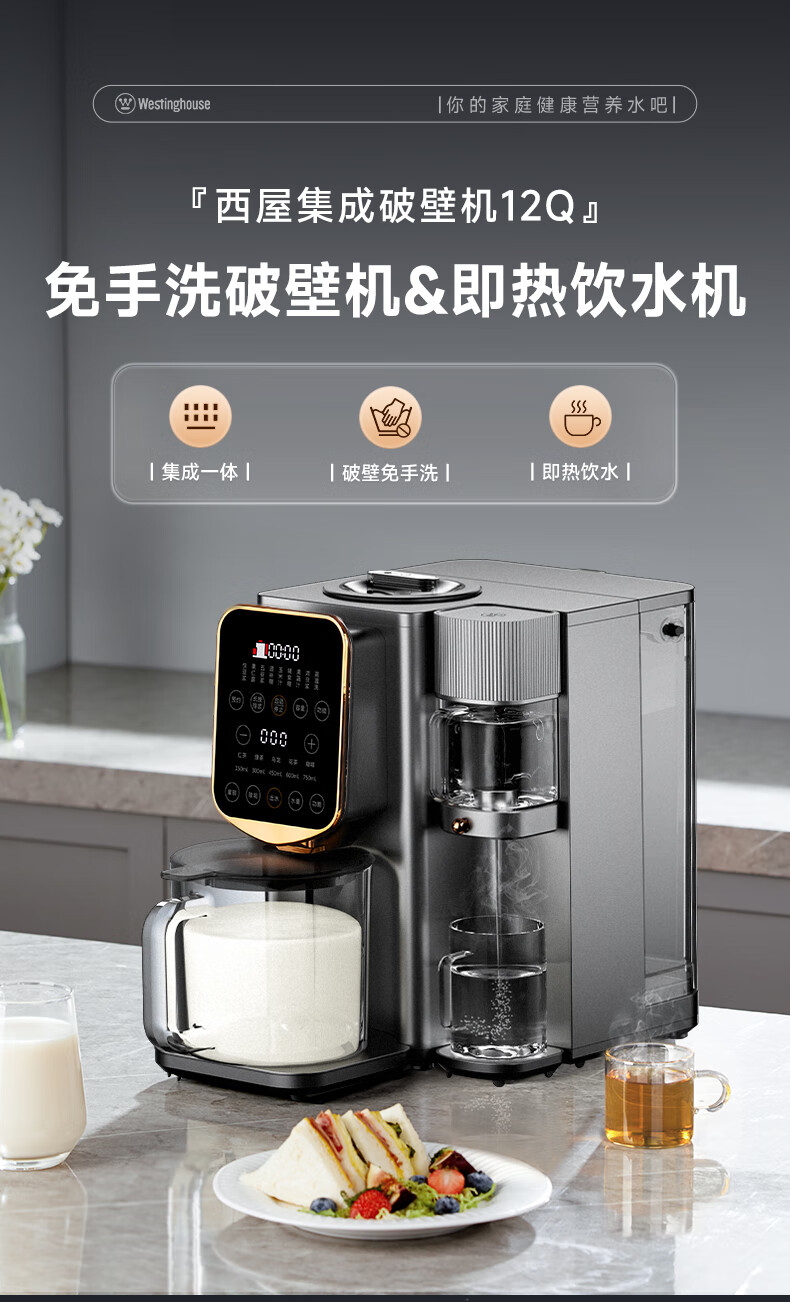 【美国西屋破壁茶饮一体机】西屋集成破壁机免手洗全自动即热茶饮机二合一高端热烘除菌破壁机 WPB12Q01