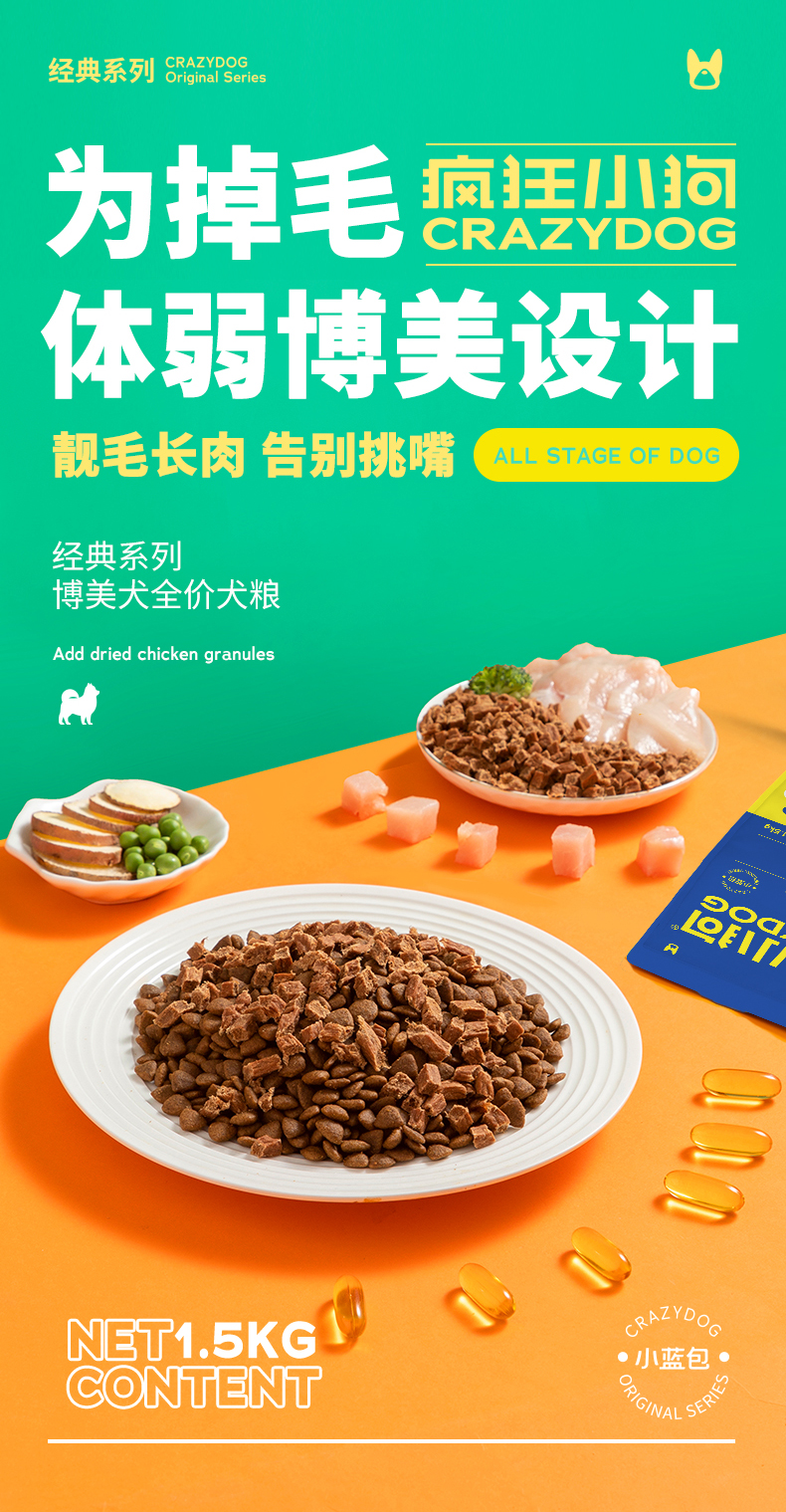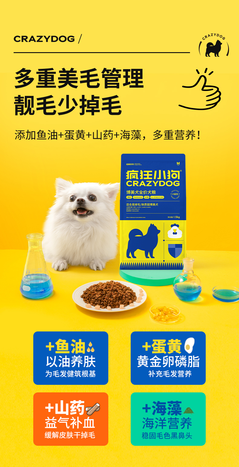 | 品牌: 疯狂小狗 | 品名: 博美全犬期膳食配方/胡萝卜犬粮 1500g |