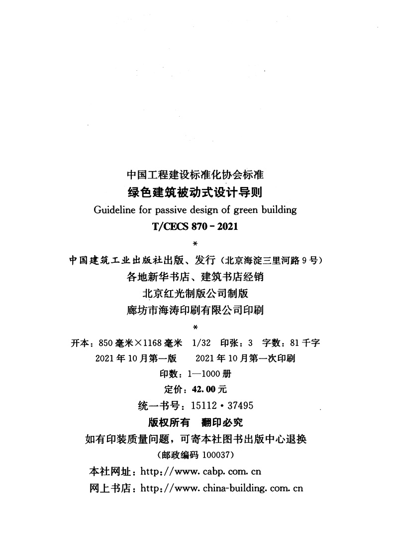 书名:T/CECS870-2021绿色建筑被动式设计导则