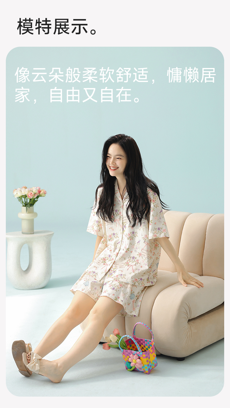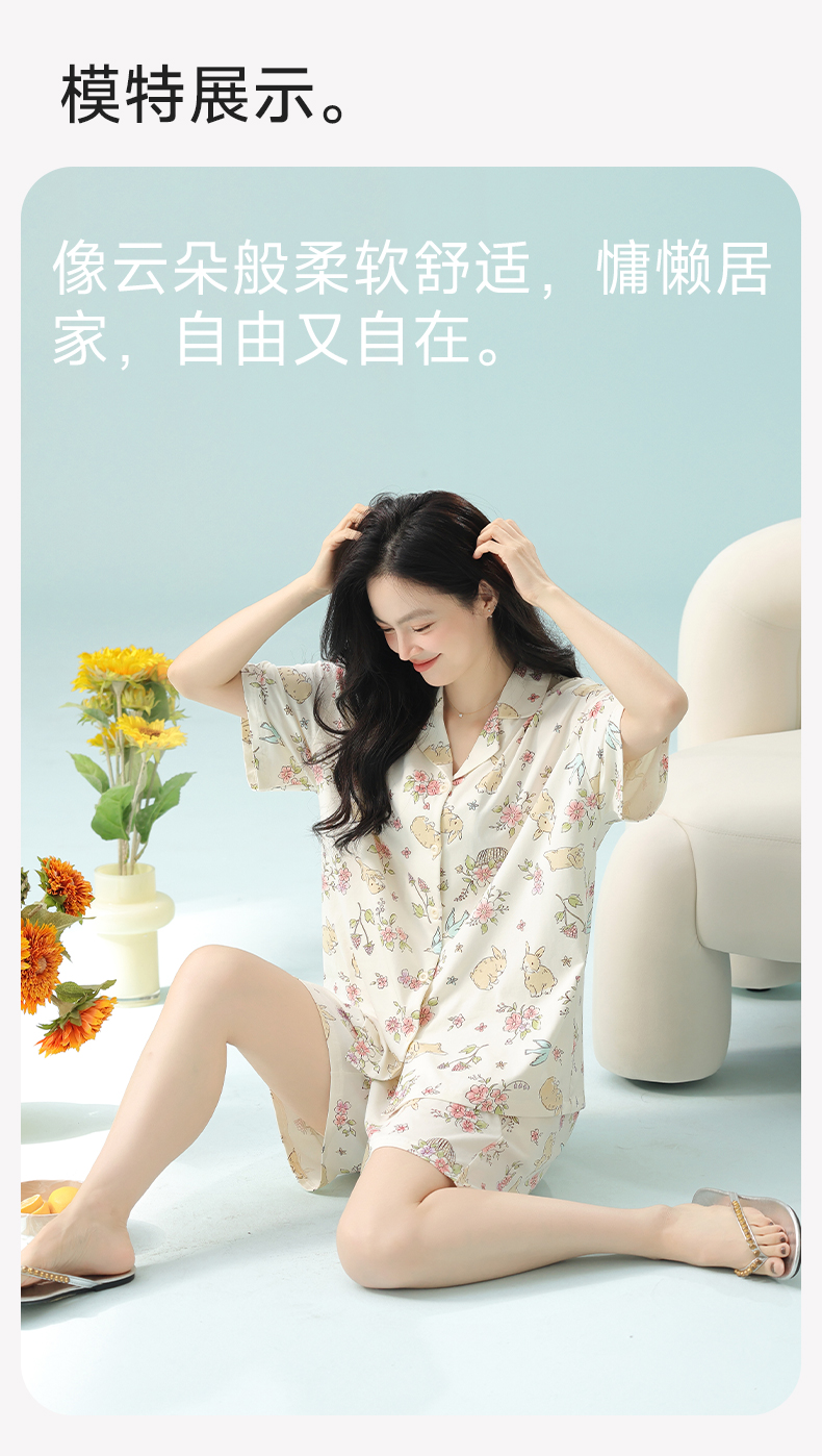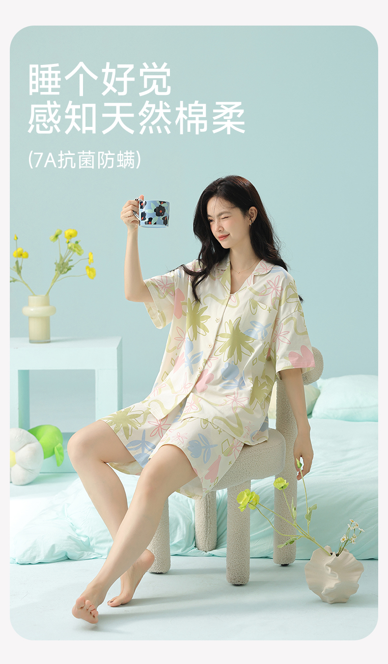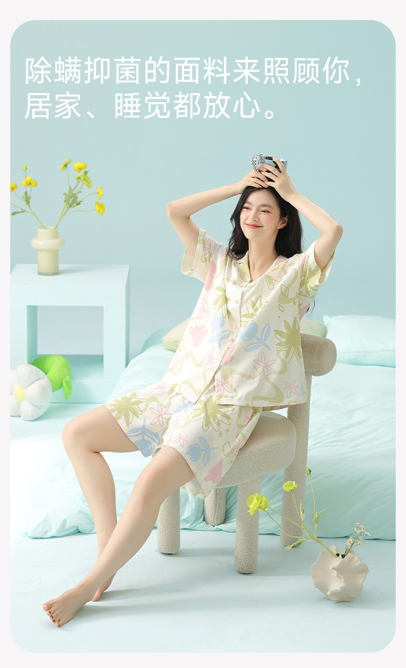 【抗菌新疆棉】自然醒「春日幻想」睡衣女士夏季a类纯棉凉感短袖抗菌家居服休闲风可外穿松弛感JLM