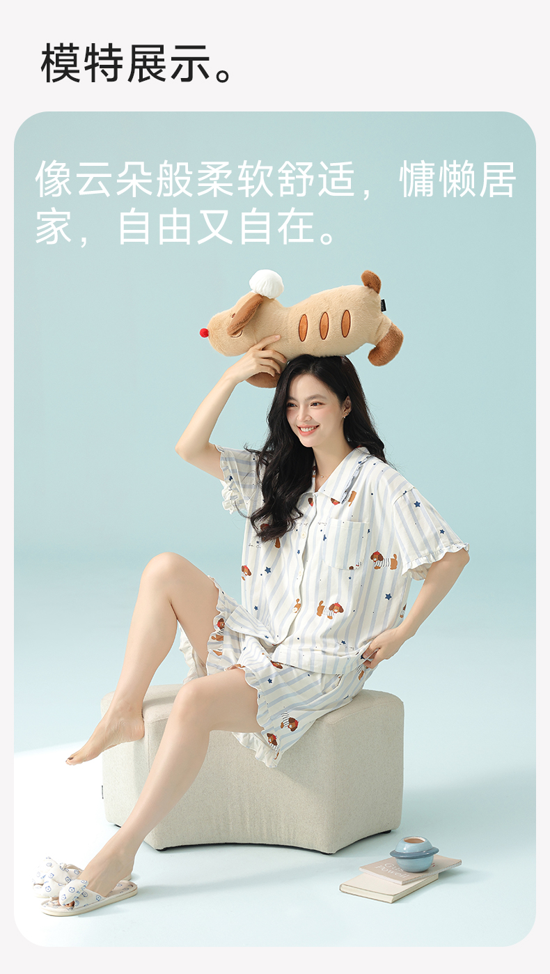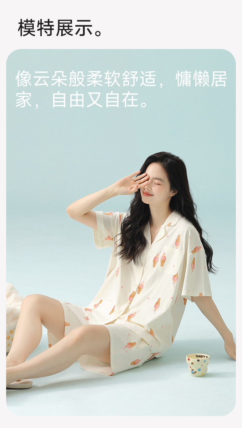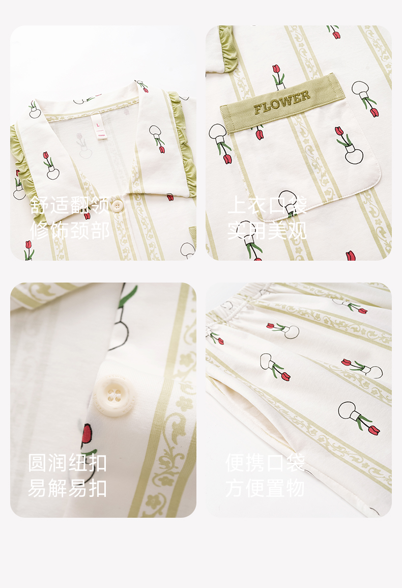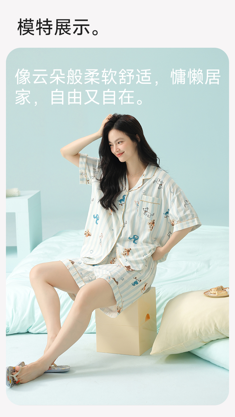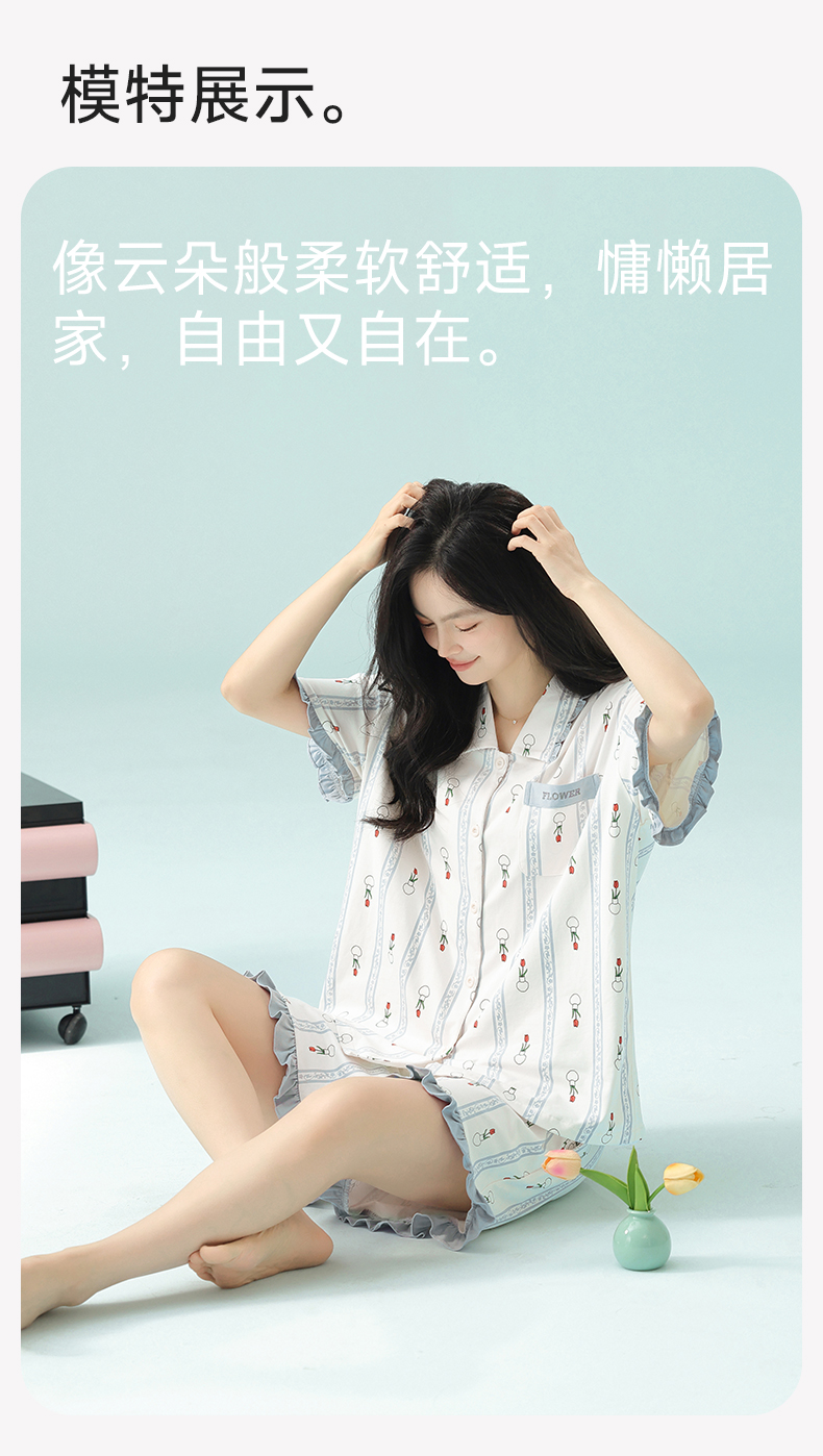 【抗菌新疆棉】自然醒「春日幻想」睡衣女士夏季a类纯棉凉感短袖抗菌家居服休闲风可外穿松弛感JLM