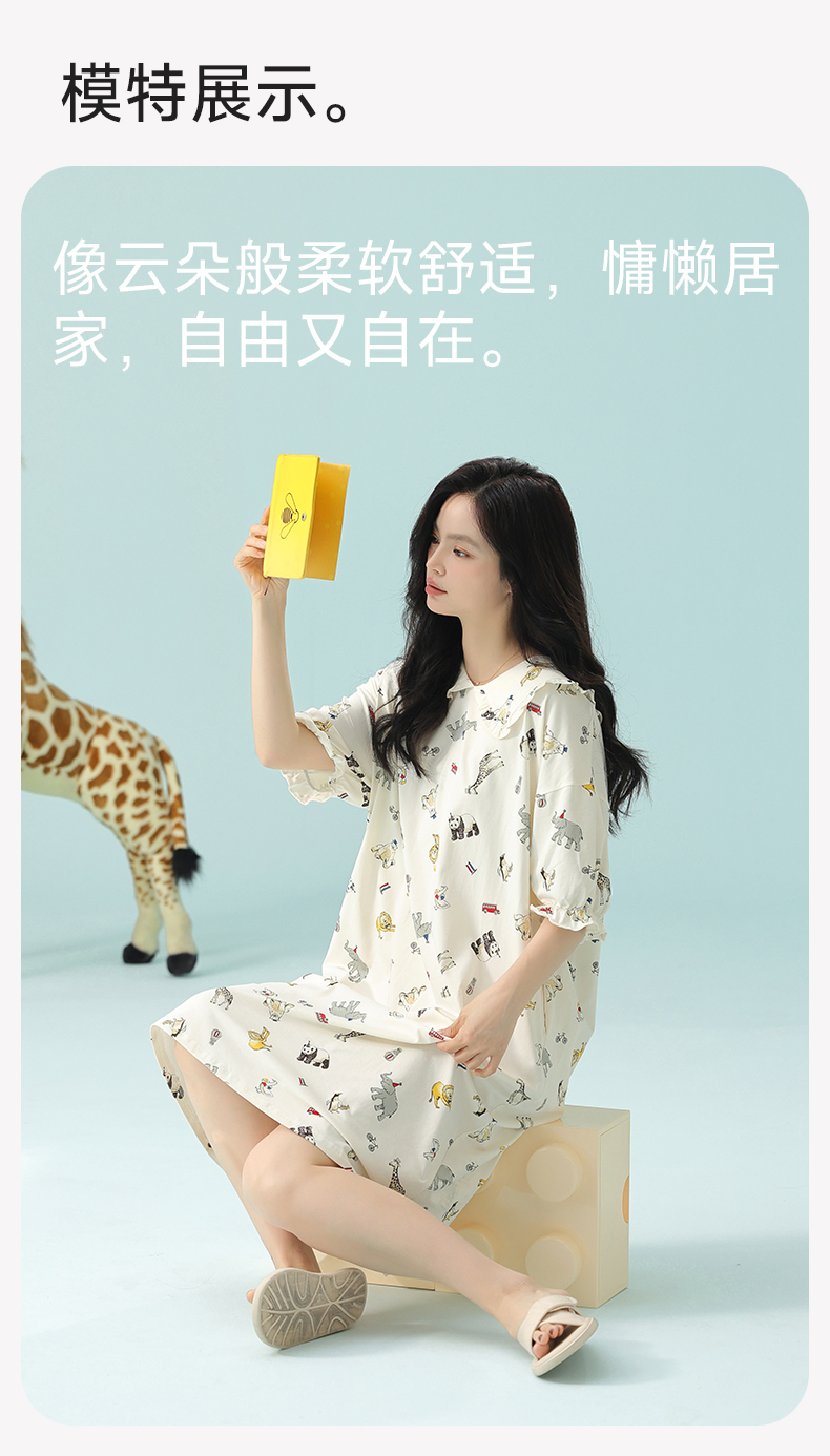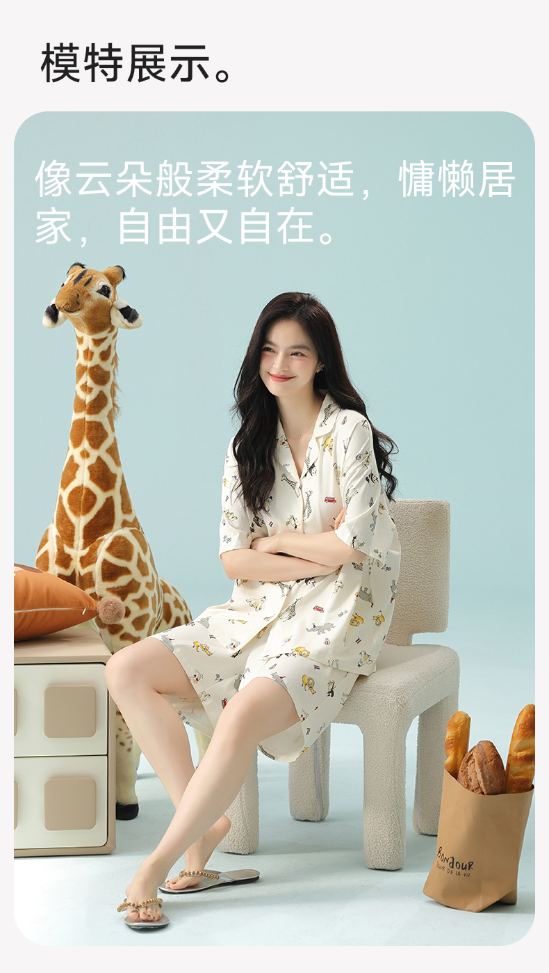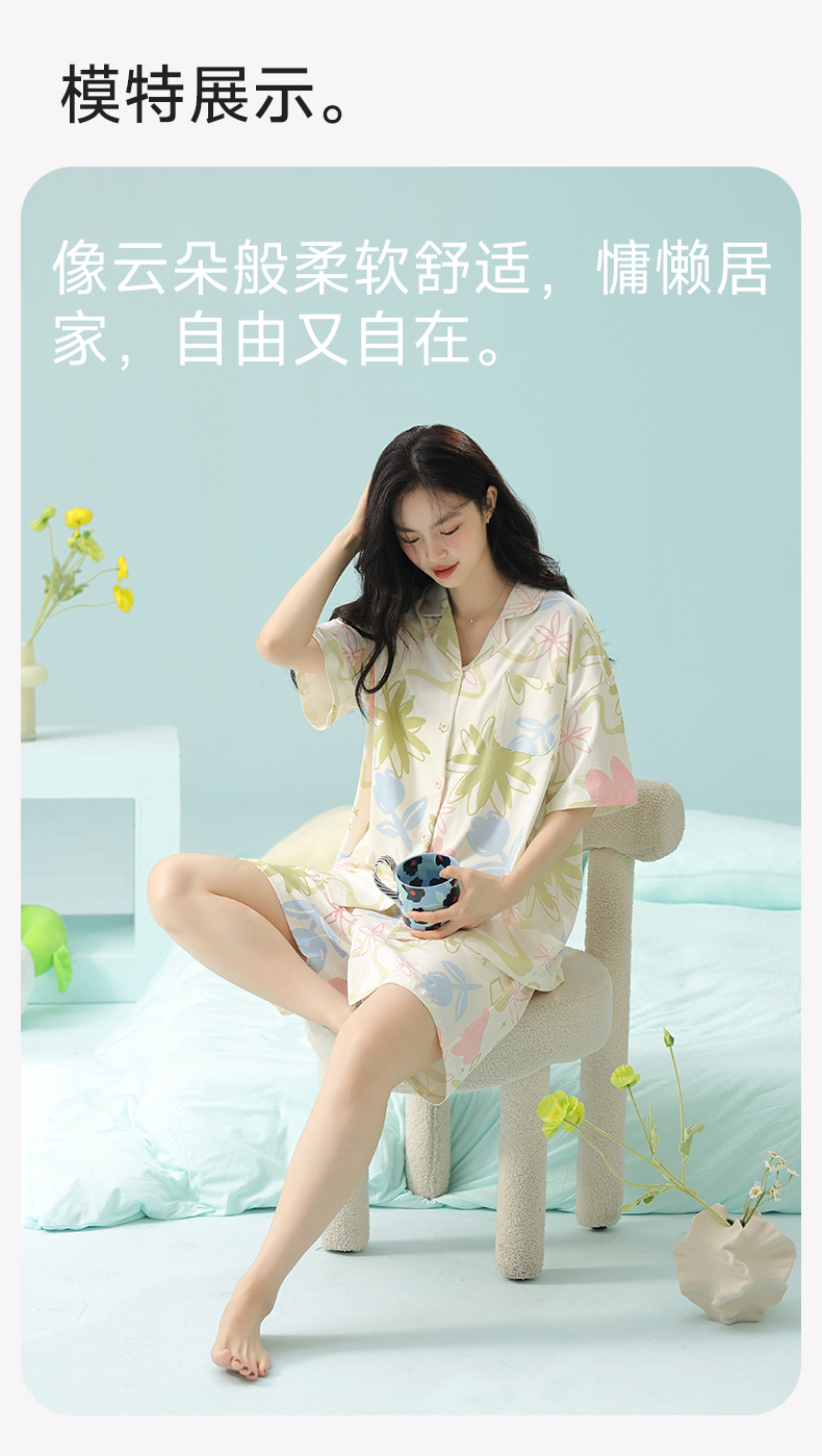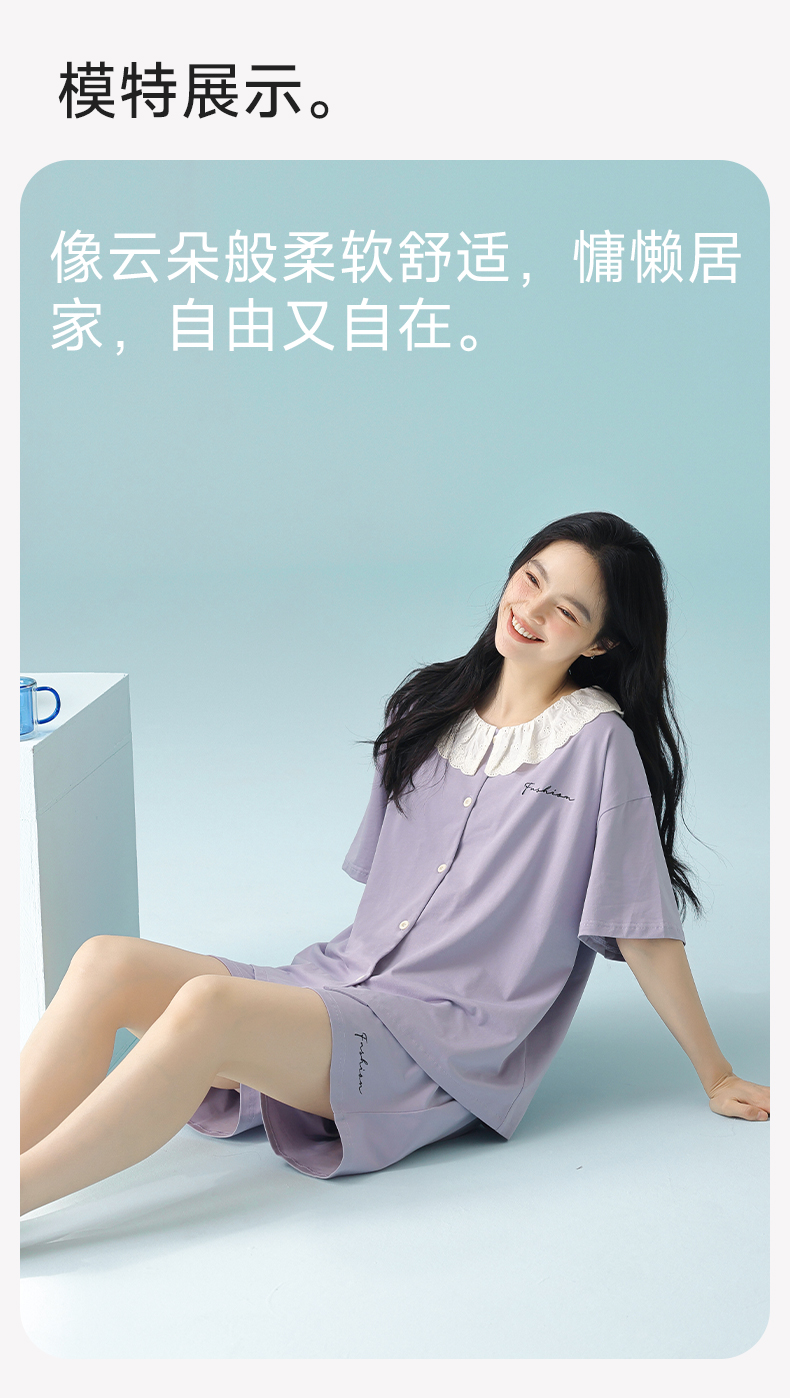 【抗菌新疆棉】自然醒「春日幻想」睡衣女士夏季a类纯棉凉感短袖抗菌家居服休闲风可外穿松弛感JLM