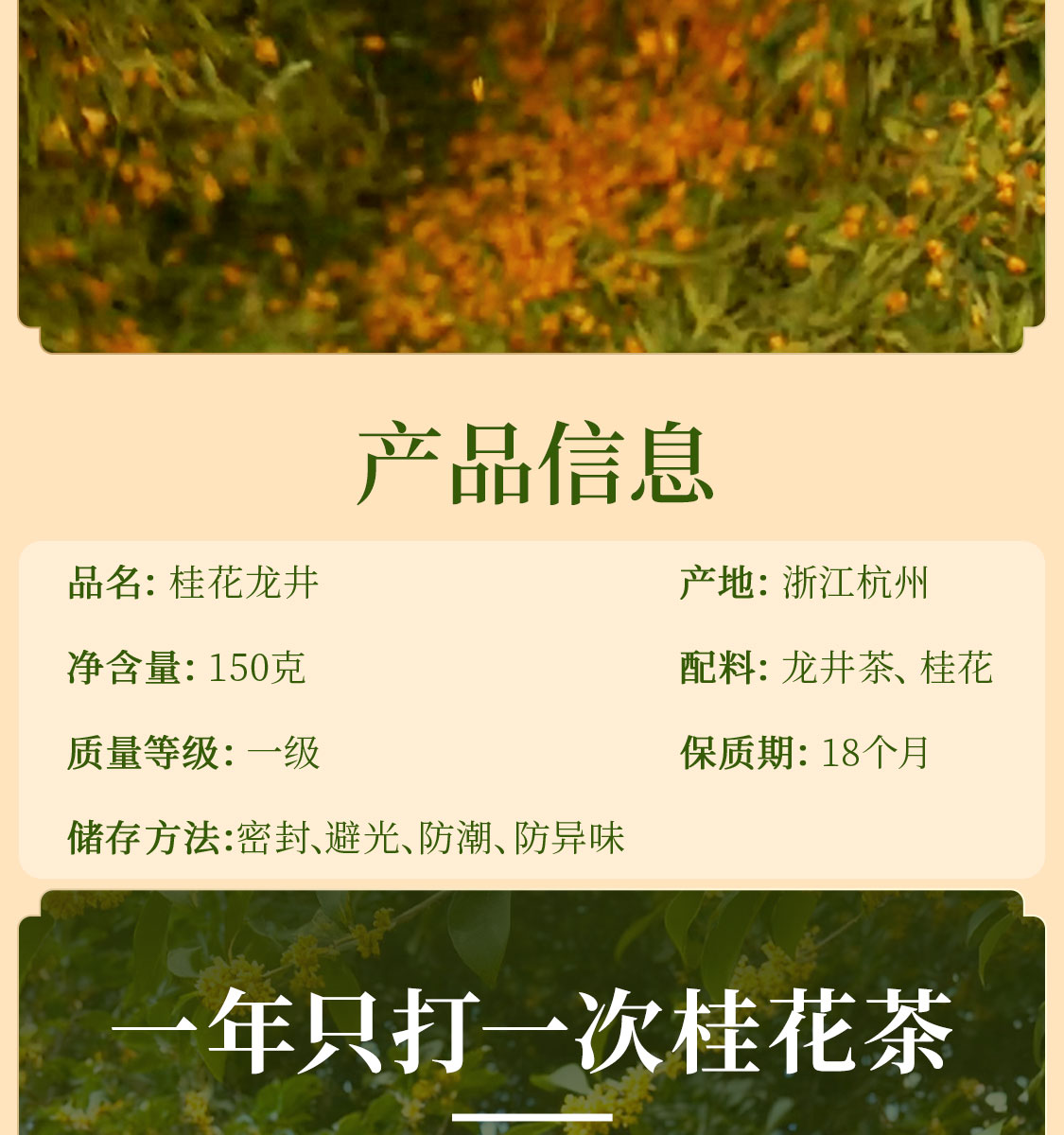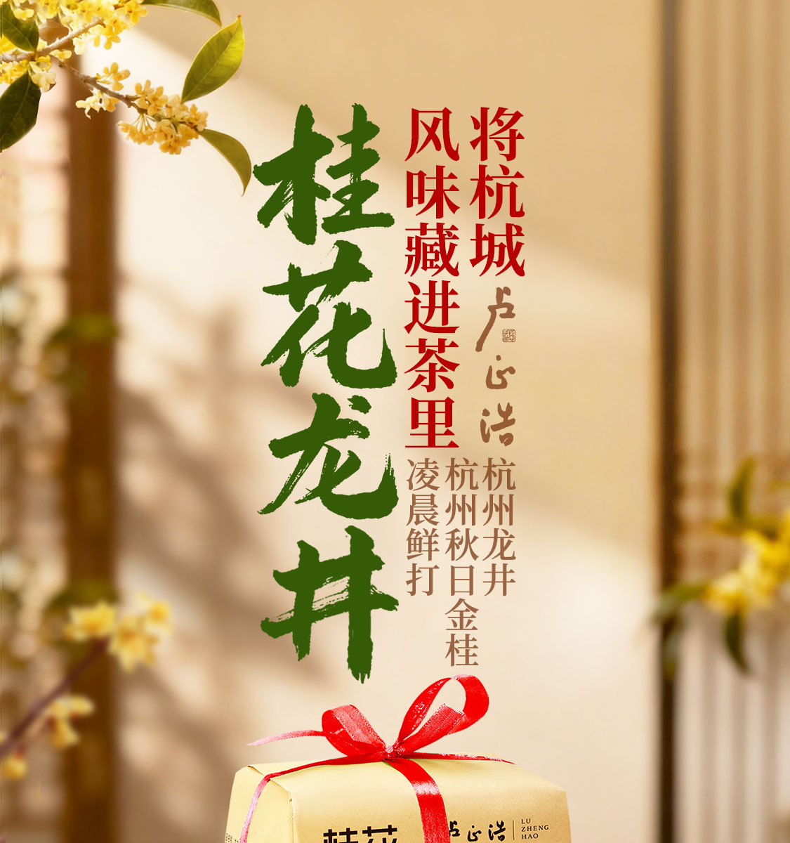 卢正浩杭州桂花龙井茶150g传统窨制纸包