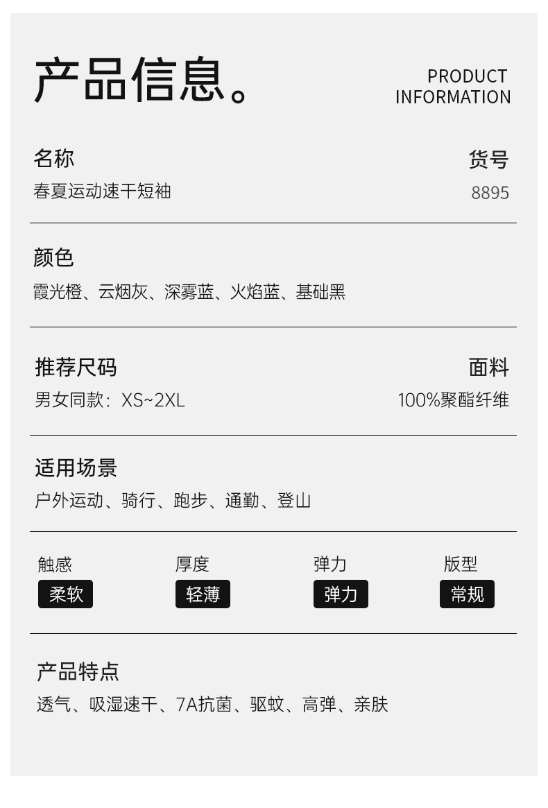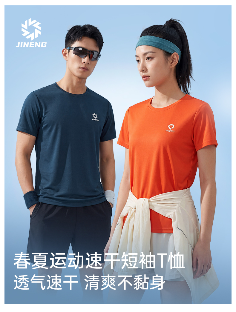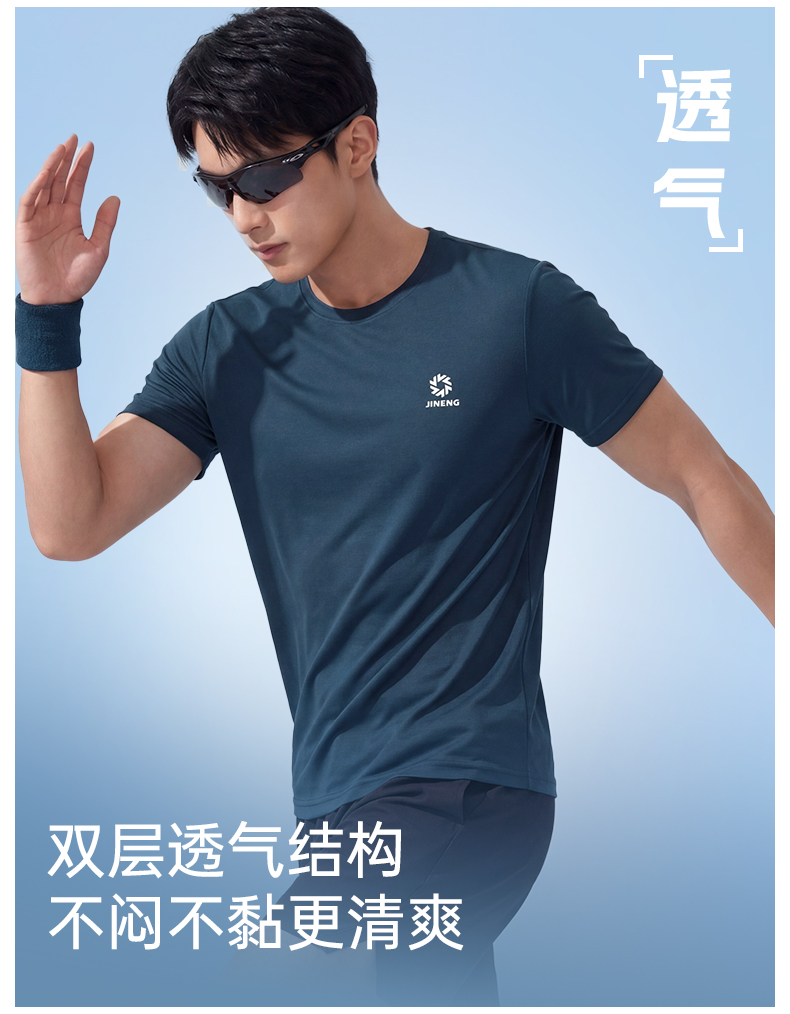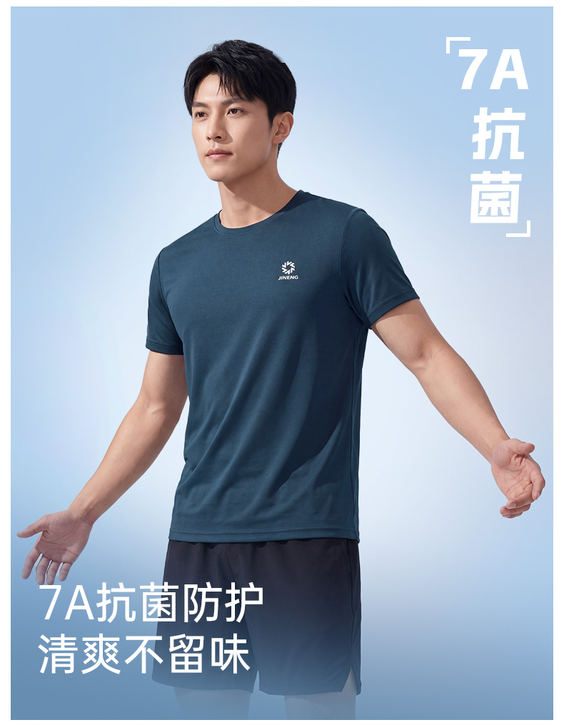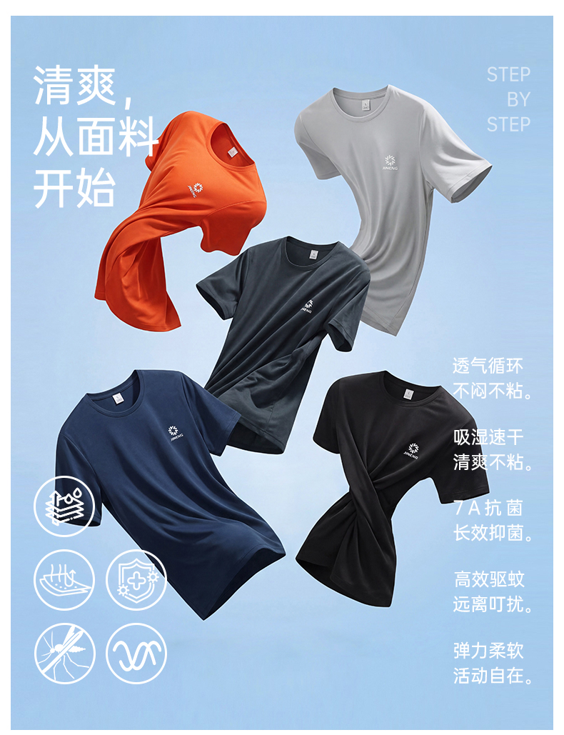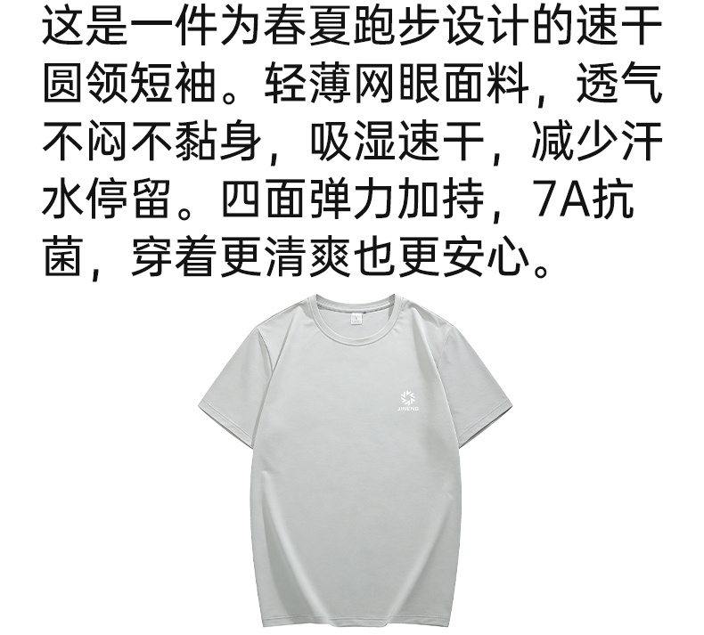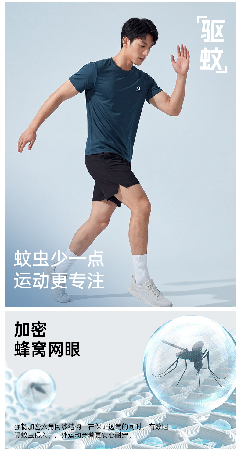 积能夏季冰感透气速干弹力7A抗菌防蚊虫男女跑步运动健身短袖