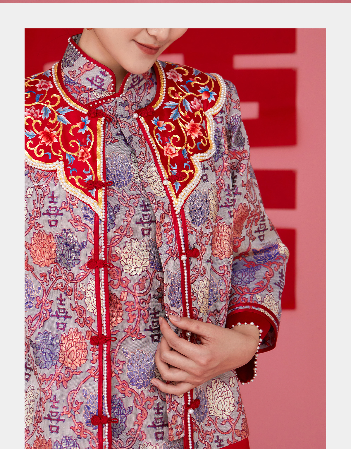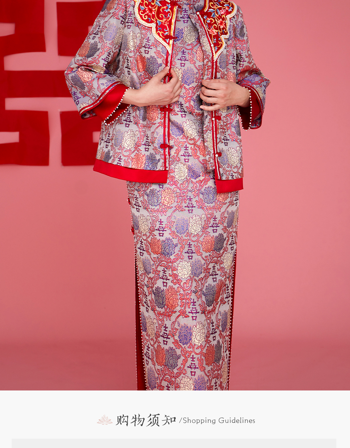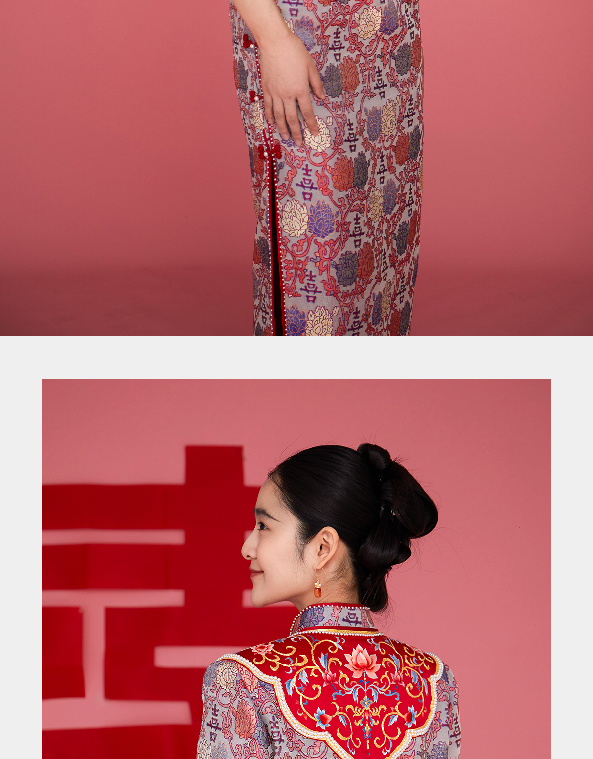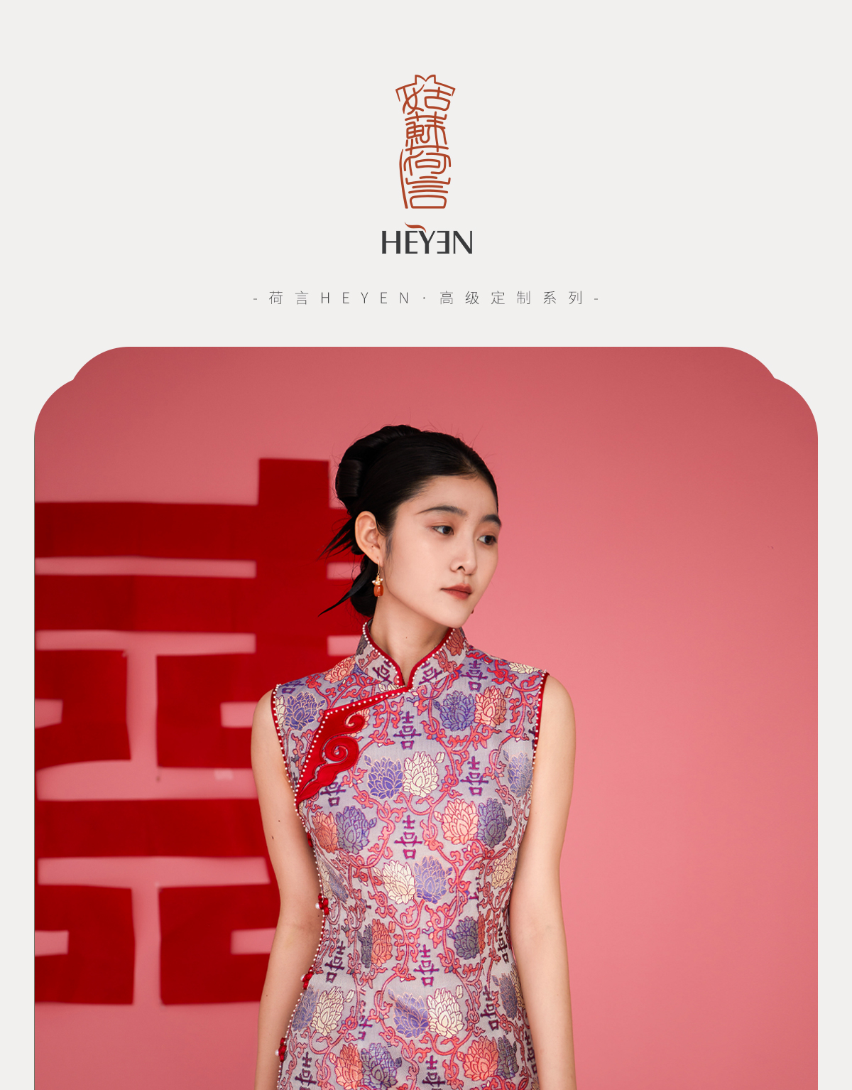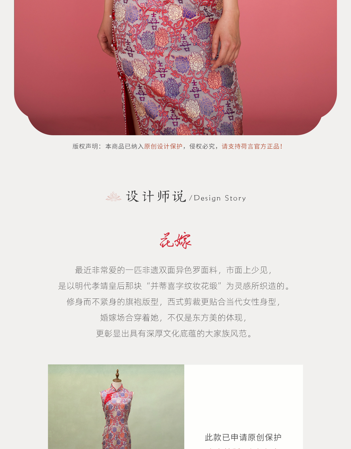 荷言HEYEN 花嫁 非遗并蒂喜字纹双面异色罗新娘旗袍手工葫芦盘扣高定系列