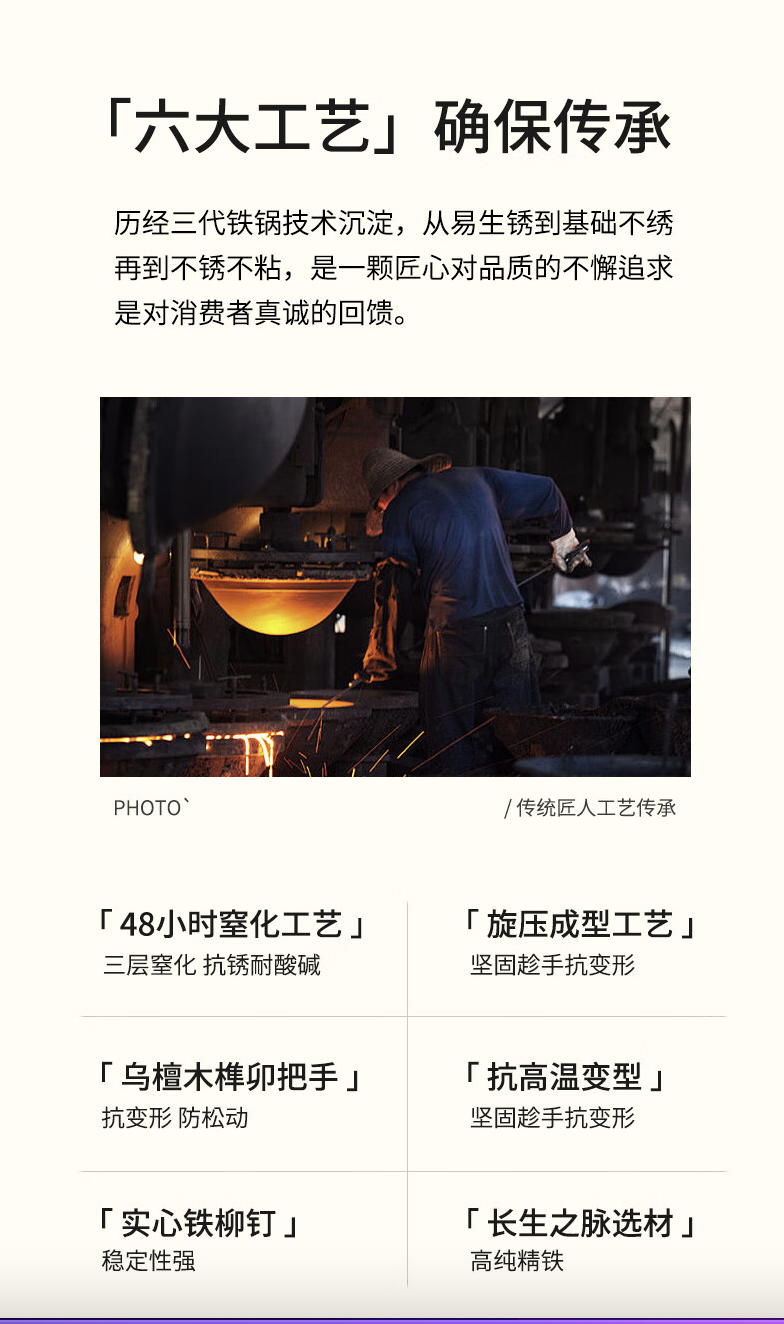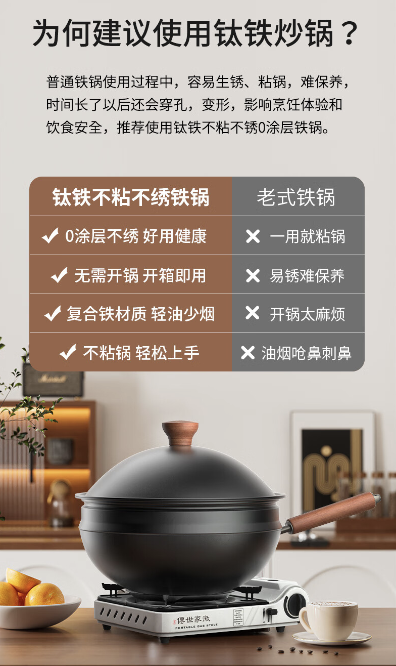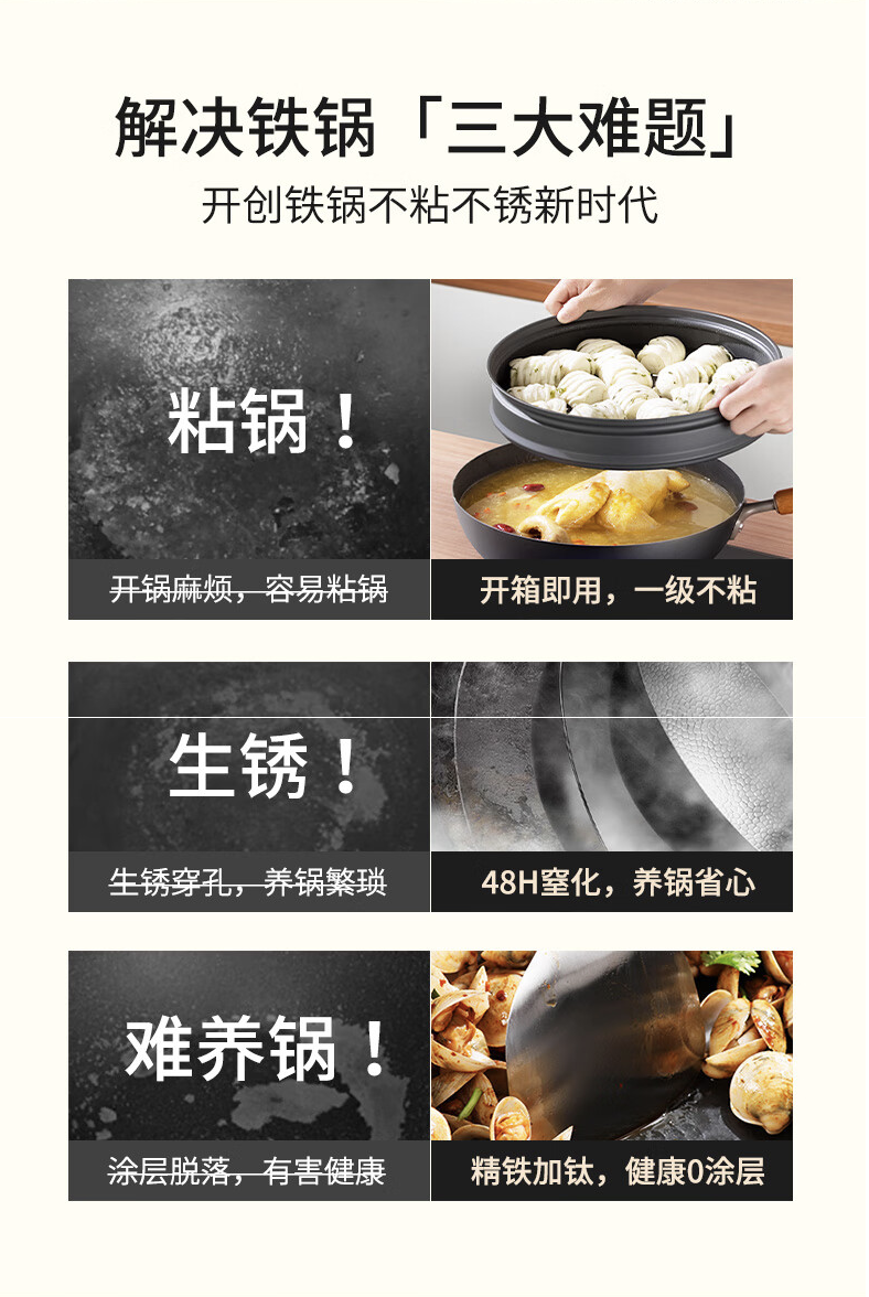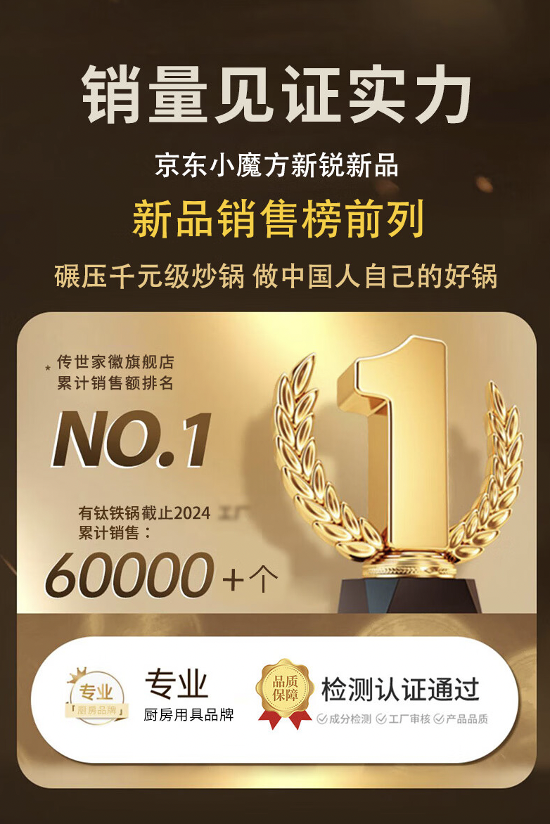 传世家徽炒锅铁锅有钛不粘炒菜锅 无涂层锻打锤纹铁锅 已开锅燃气电磁炉用