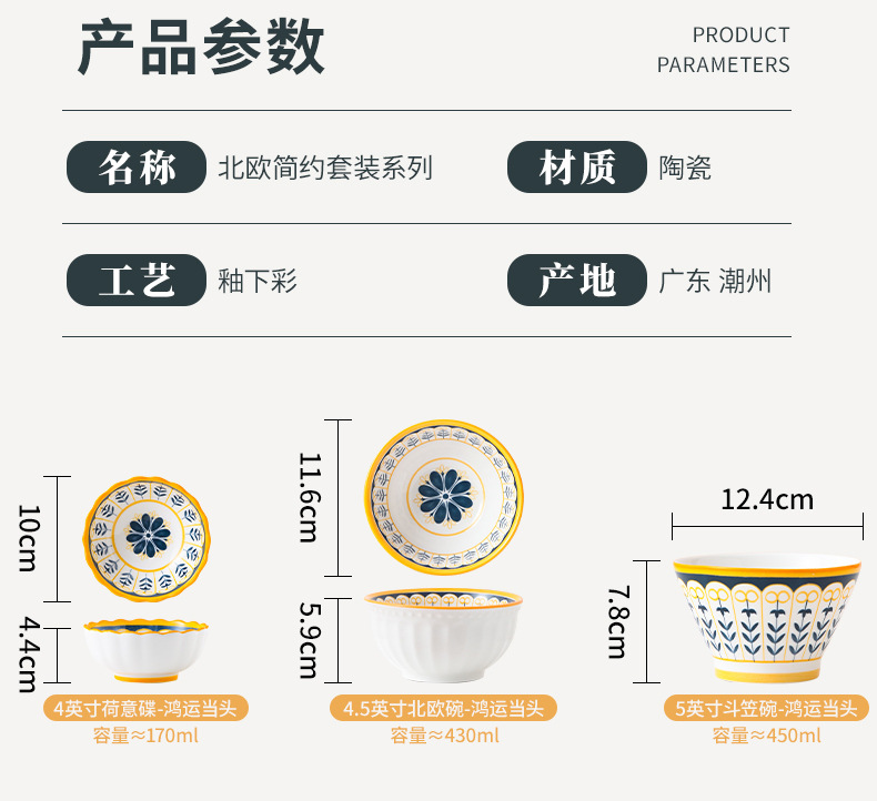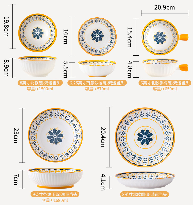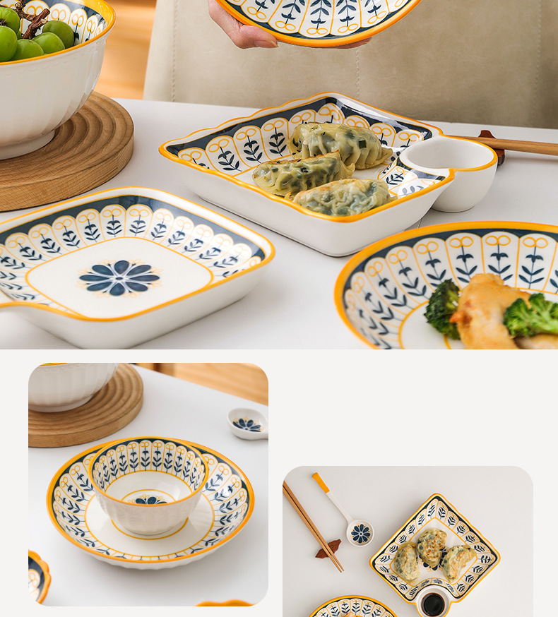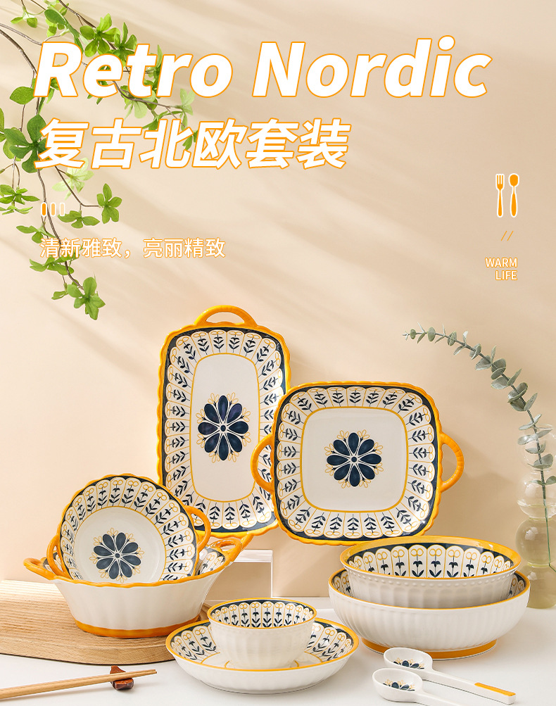 【北欧典雅精致 高颜值碗碟套装】 盘子碟子陶瓷碗汤碗饺子盘米饭碗家用陶瓷餐具