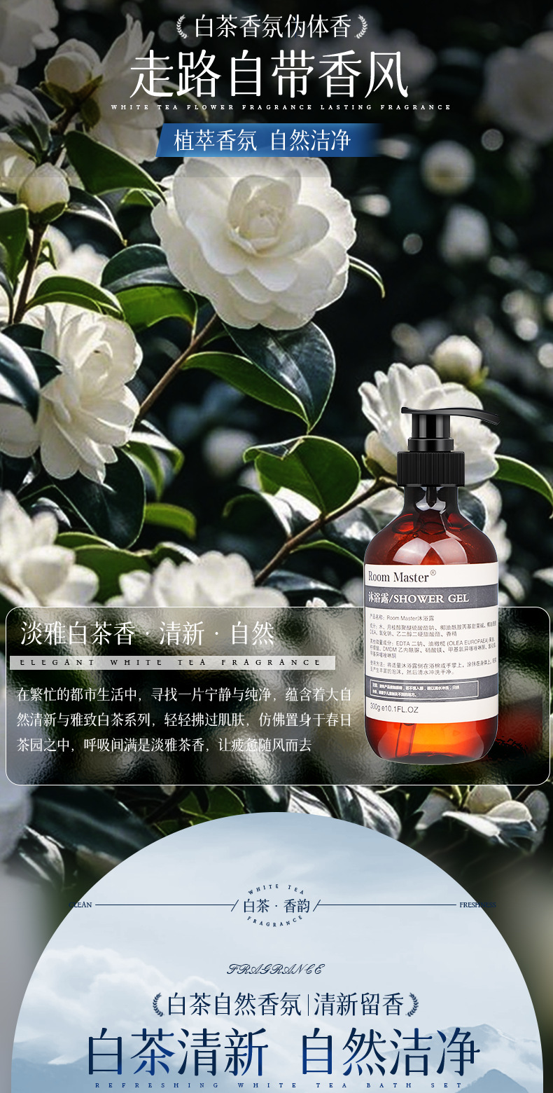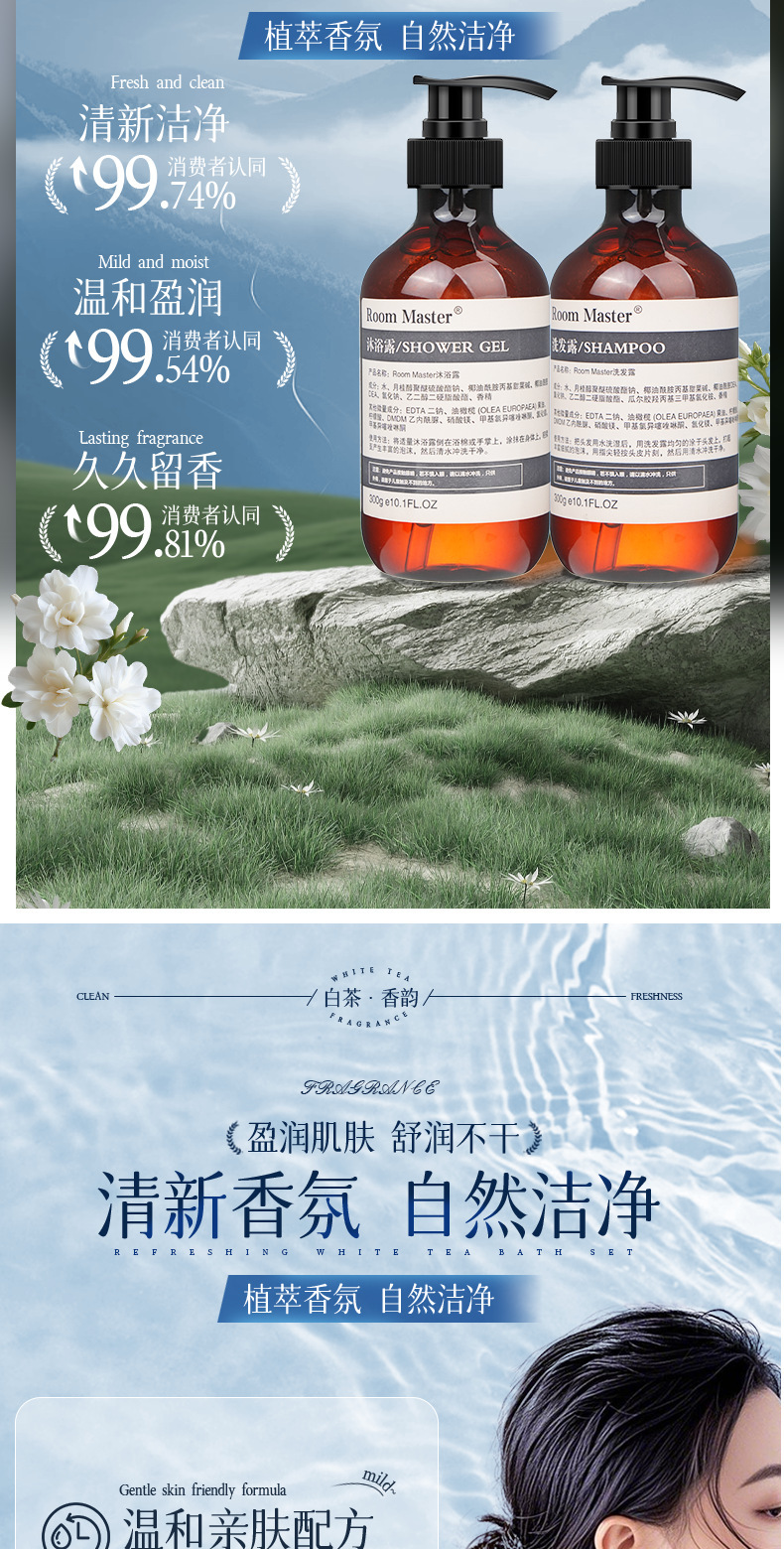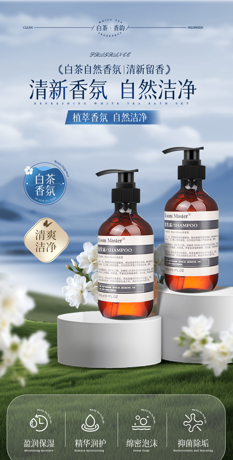酒店白茶香洗发水沐浴露洗手液宾馆民宿专用500ml大瓶装厂家批发