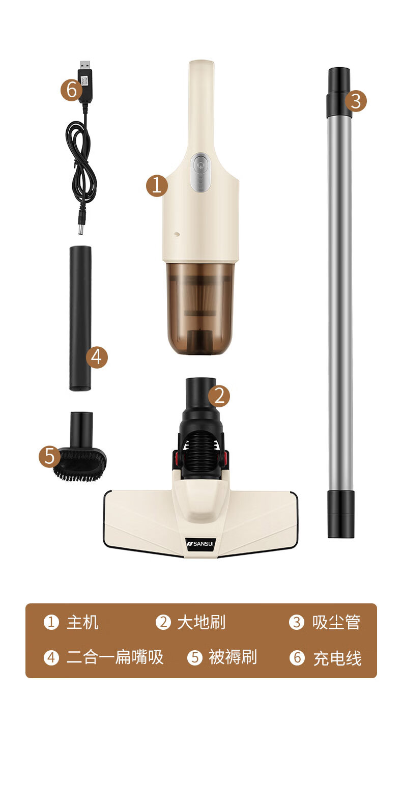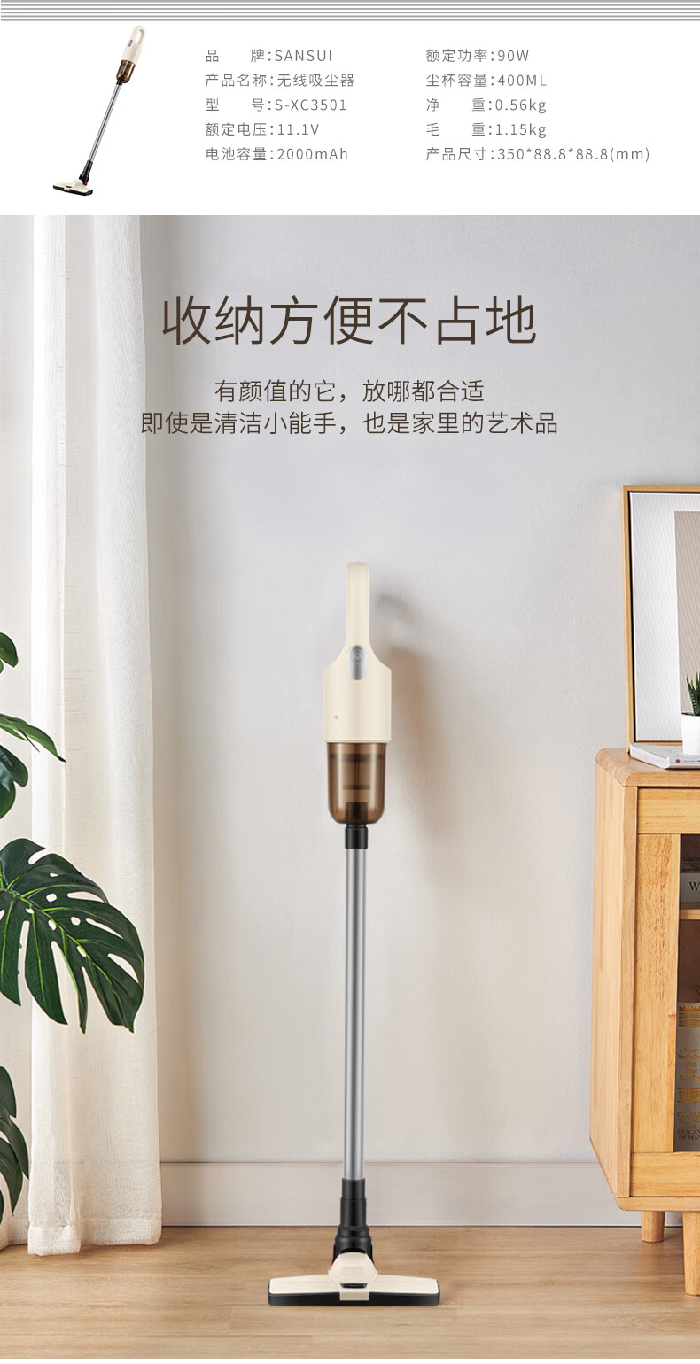 SANSUI可壁挂式手持无线吸尘器 S-XC3501