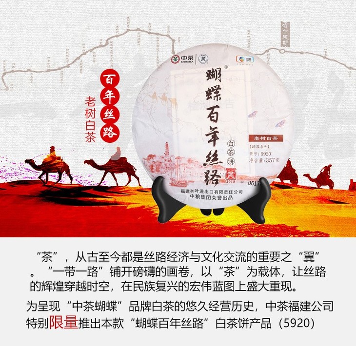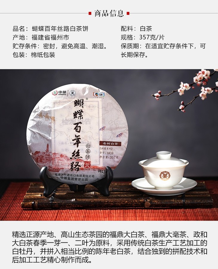 中粮-中茶 2018年(福鼎老树白茶 )百年丝路 357g/饼/干仓直发