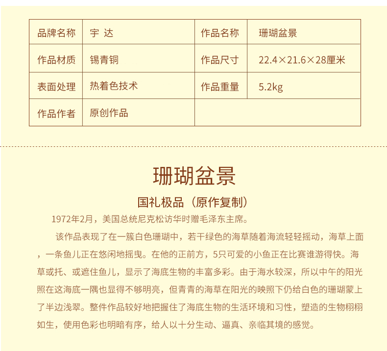 宇达青铜全铜摆件《珊瑚盆景》仿复制国礼 家居 装饰 工艺品摆件