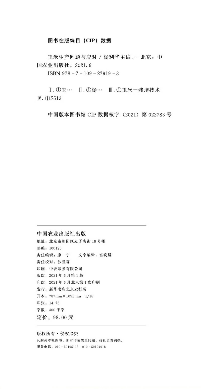 玉米生产问题与应对 大田作物 农作物 苞谷 水肥管理 病虫害防治 杨利华 27919