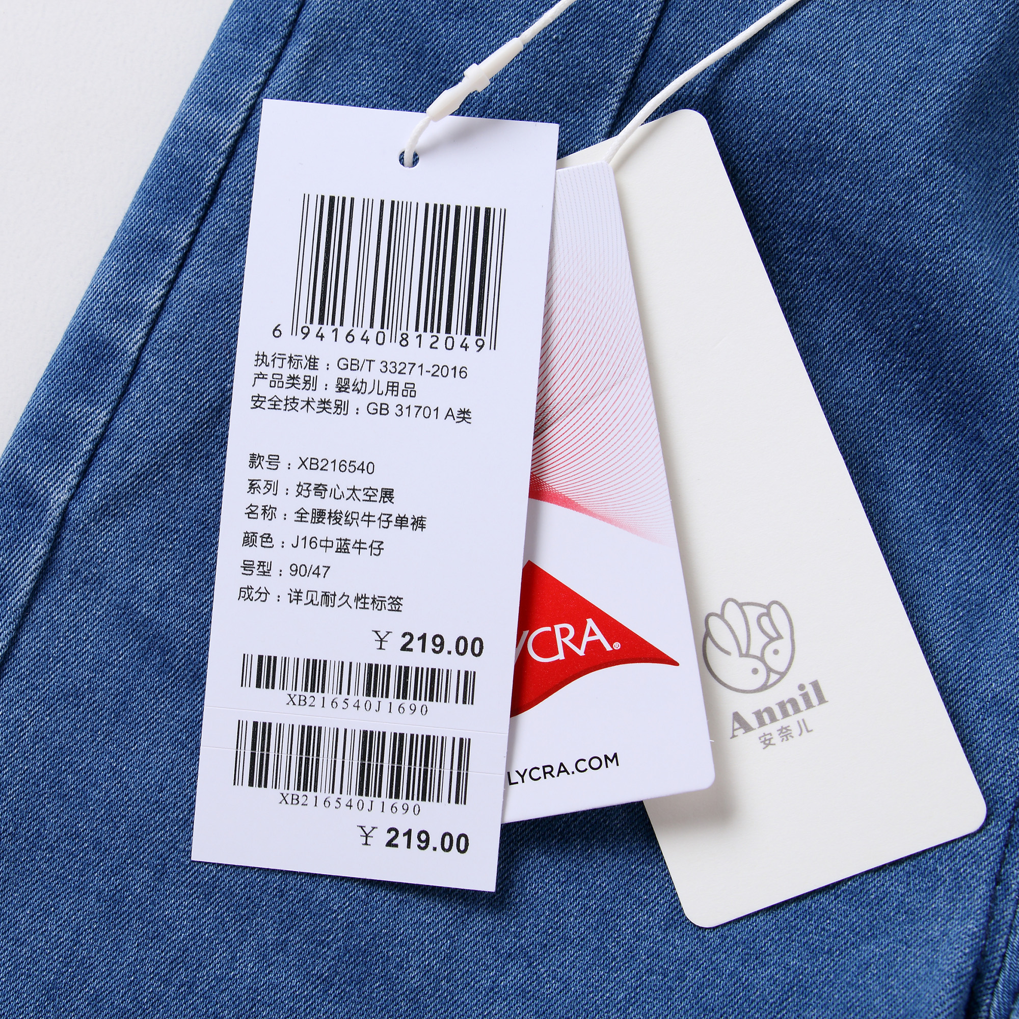 安奈儿男童全腰梭织牛仔单裤xb216540