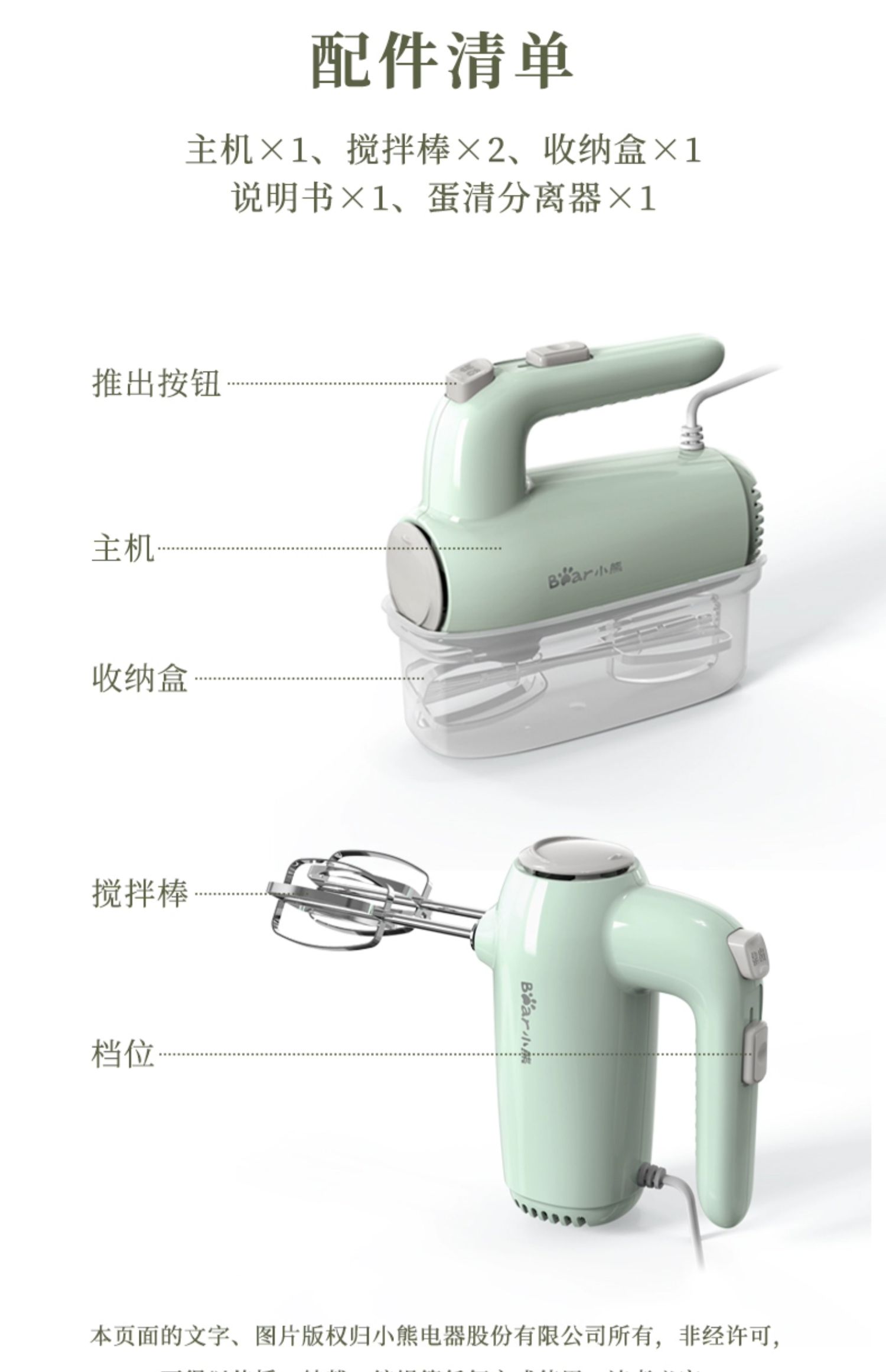 小熊电动打蛋器家用小型打奶油搅拌棒搅蛋器蛋糕