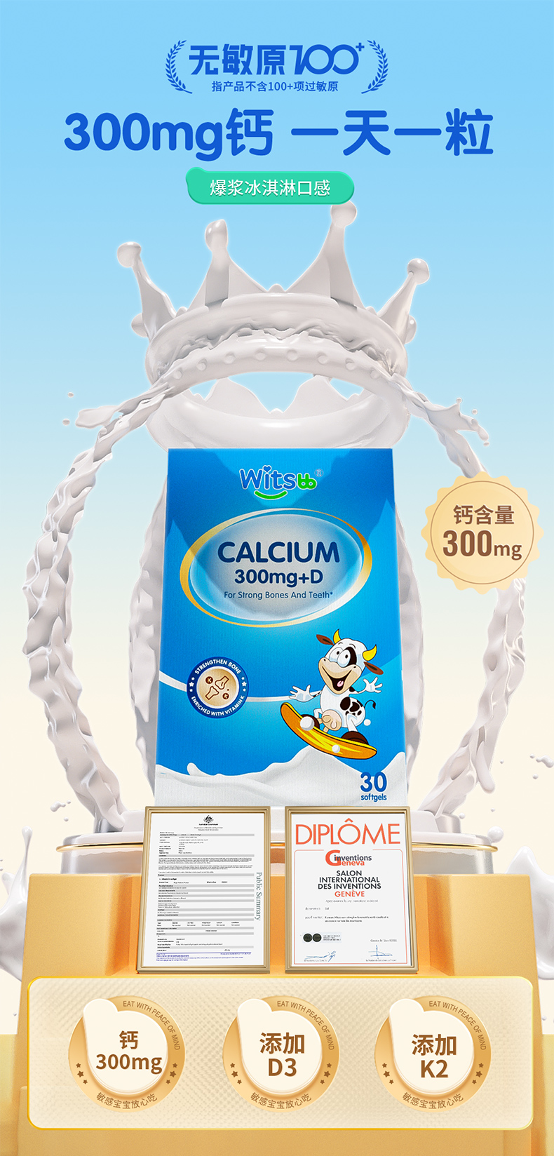 【多sku】witsbb健敏思小蓝盒液体钙 30粒