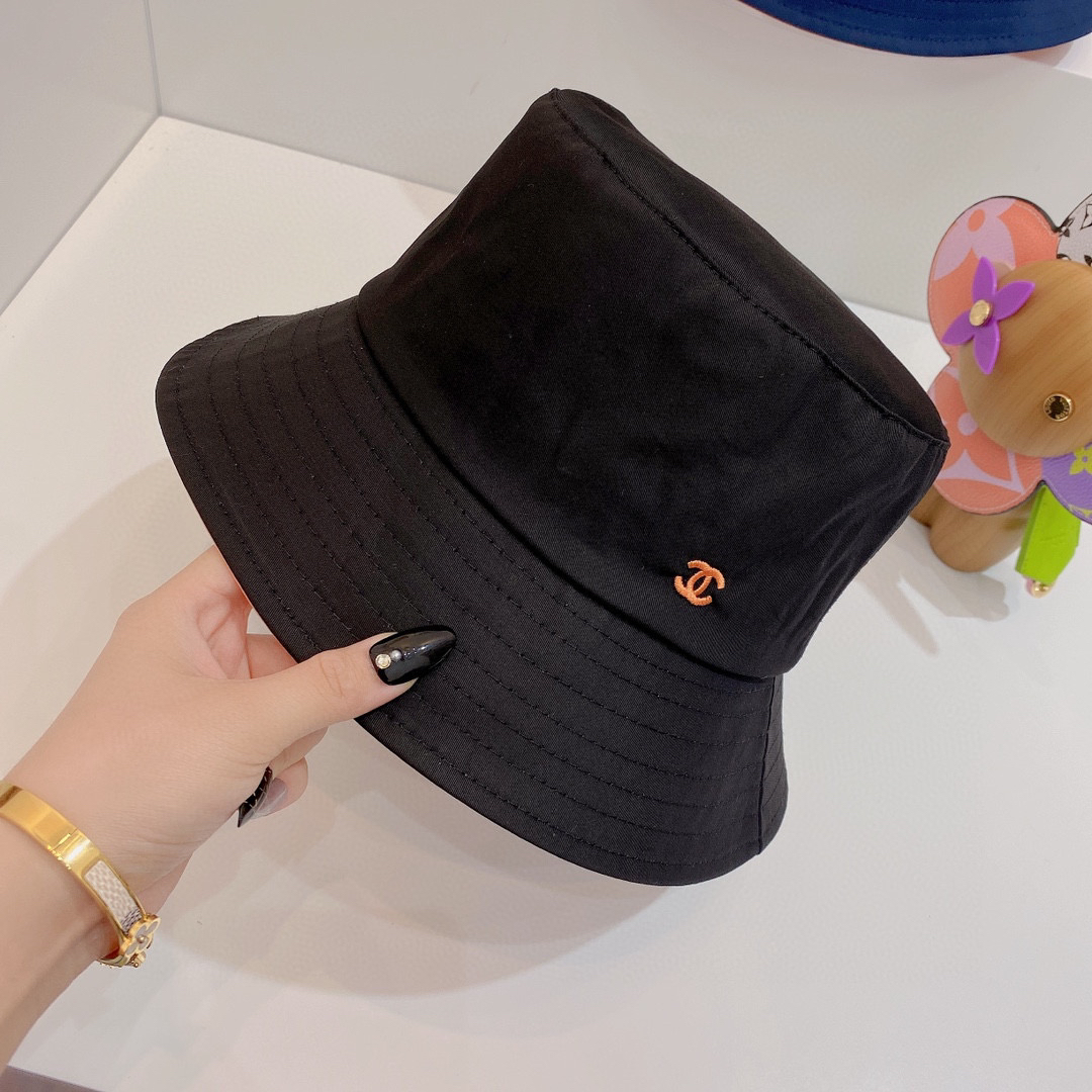 Chan*l小香新款纯棉刺绣小logo-黑色