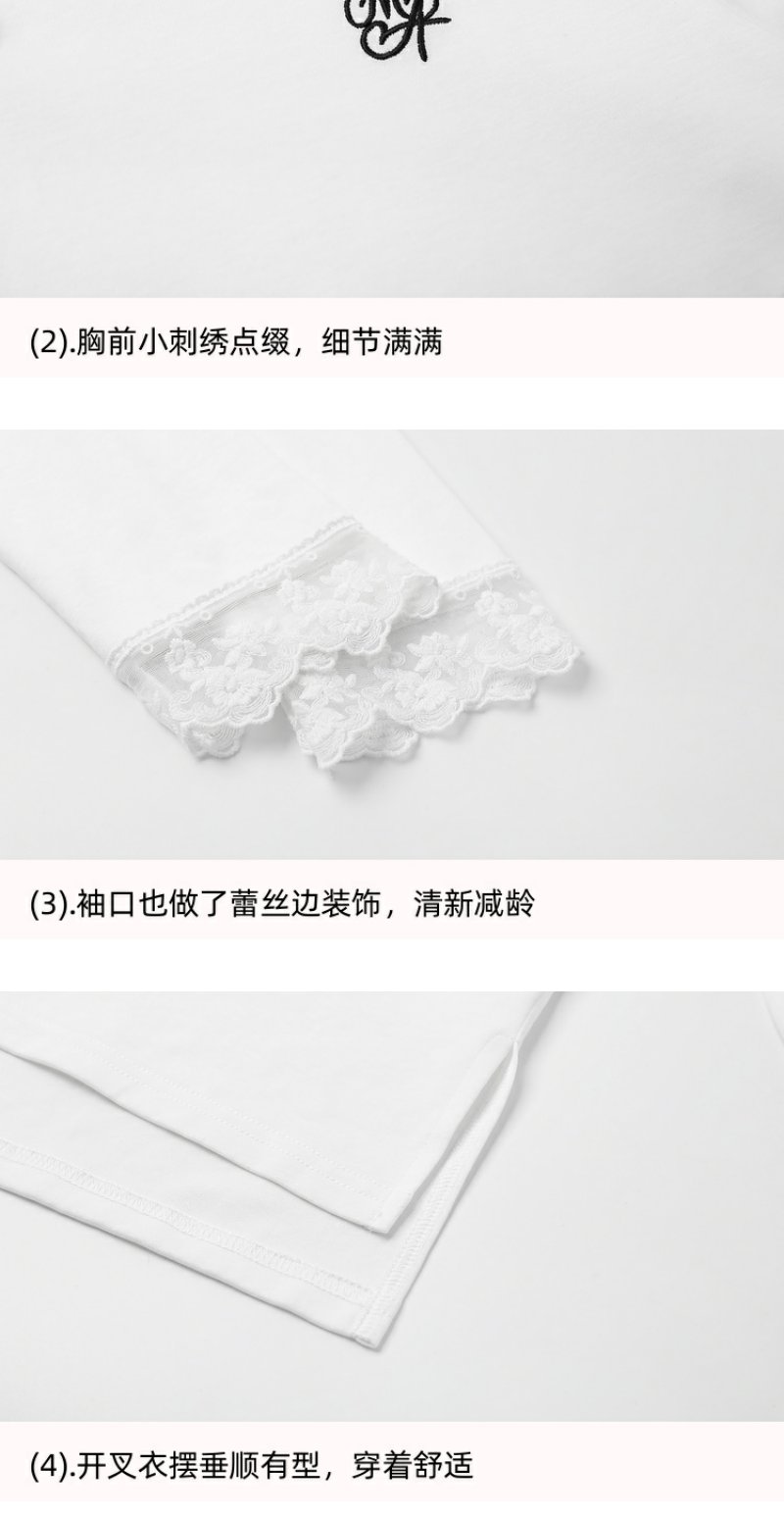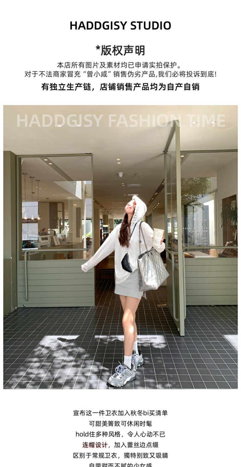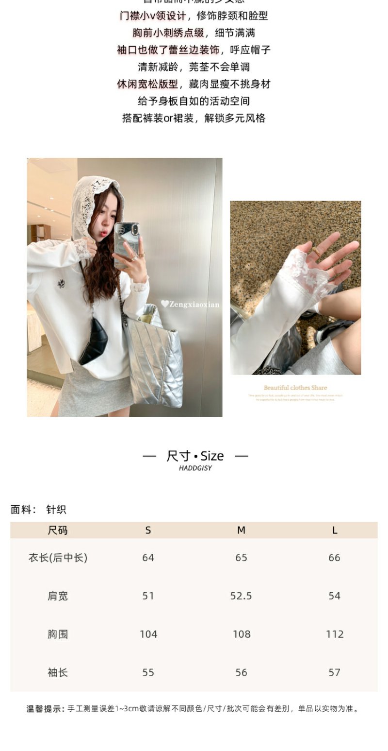<曾小咸推荐>韩版白色蕾丝边长袖连帽T恤